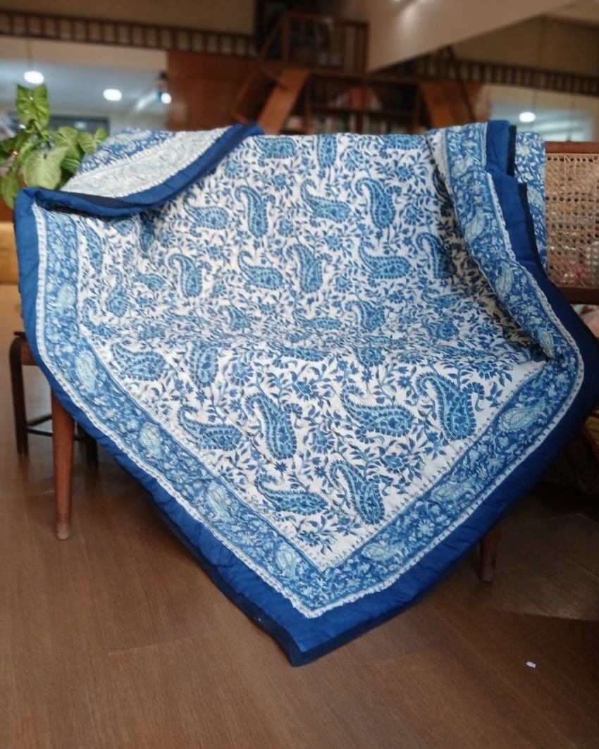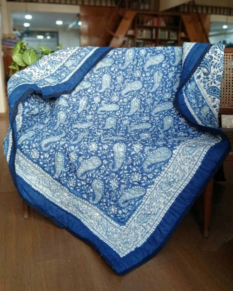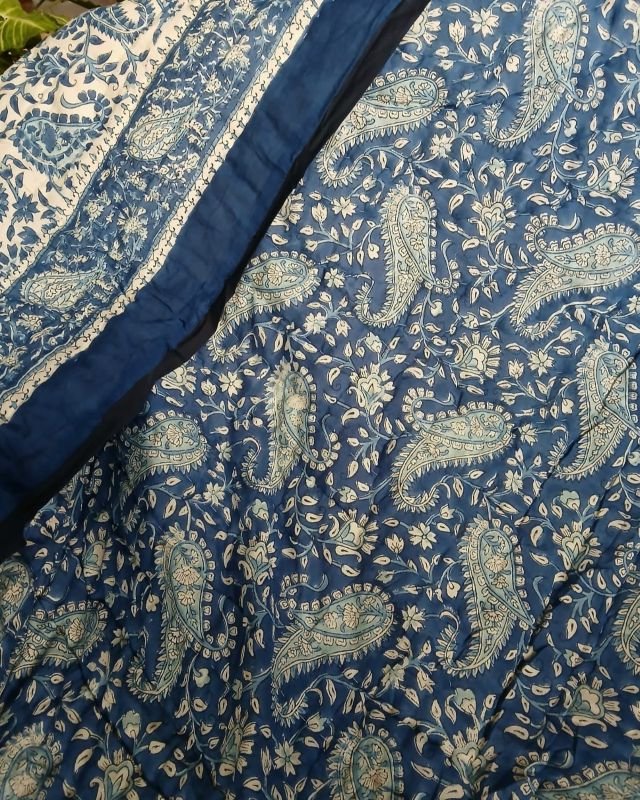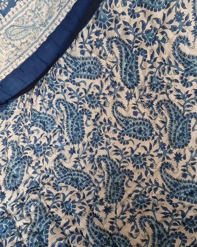 Super-soft reversible double razai from Jaipur. Very soft mul cotton exterior, with cotton filling. Handblock printed in Rajasthan.
