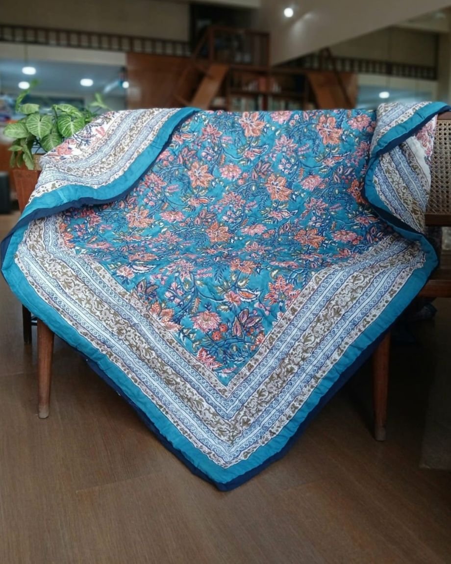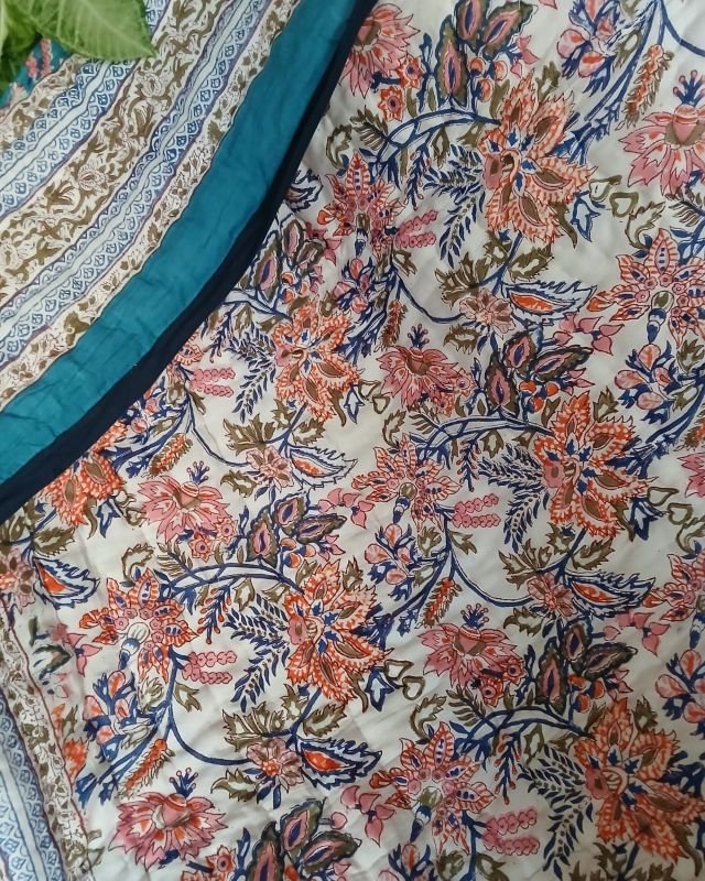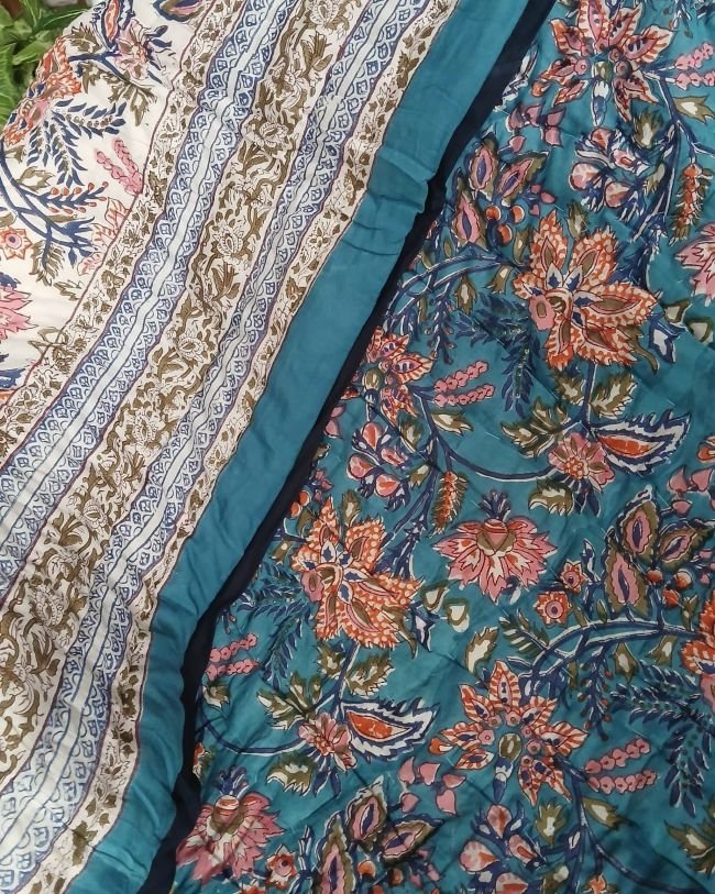 Super-soft reversible double razai from Jaipur. Very soft mul cotton exterior, with cotton filling. Handblock printed in Rajasthan.