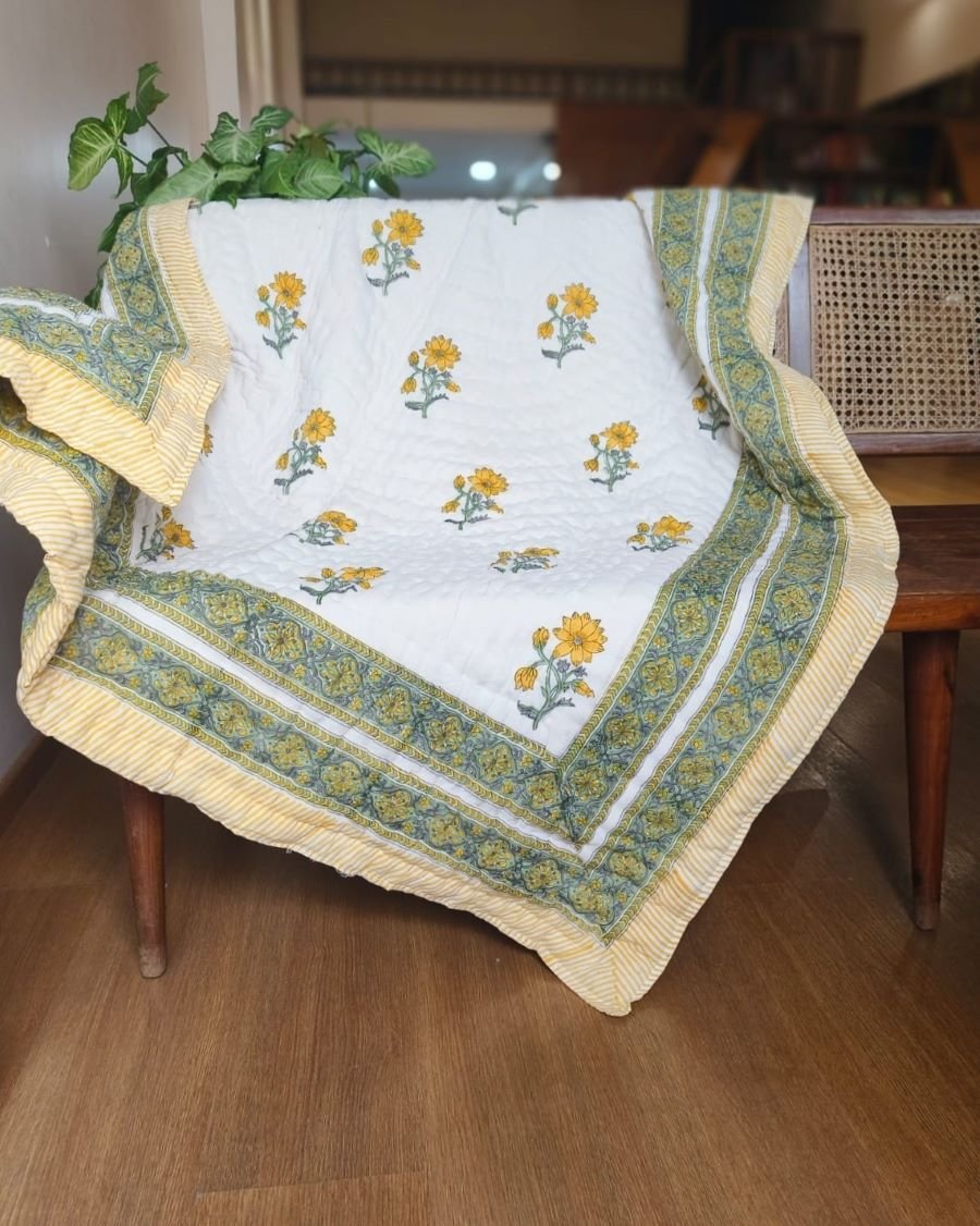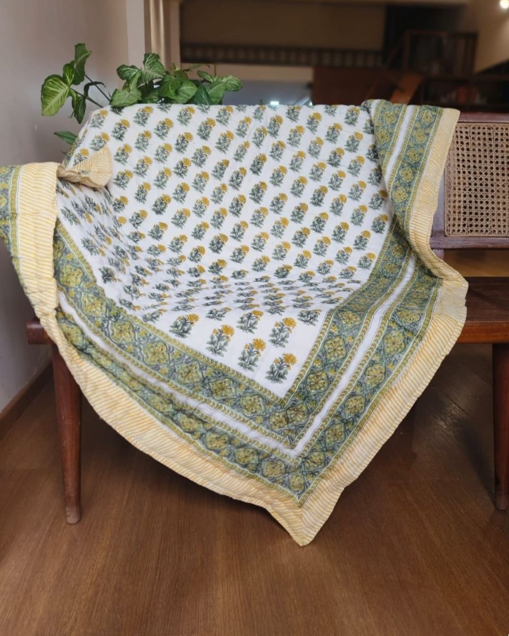Handblock Print Reversible Single Razai from Jaipur. Very soft mul cotton exterior, with cotton filling.