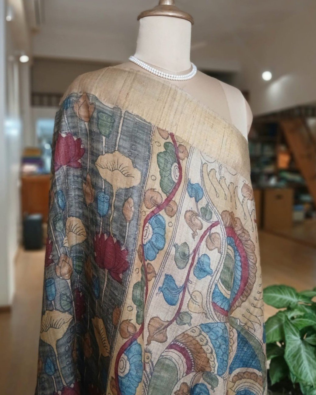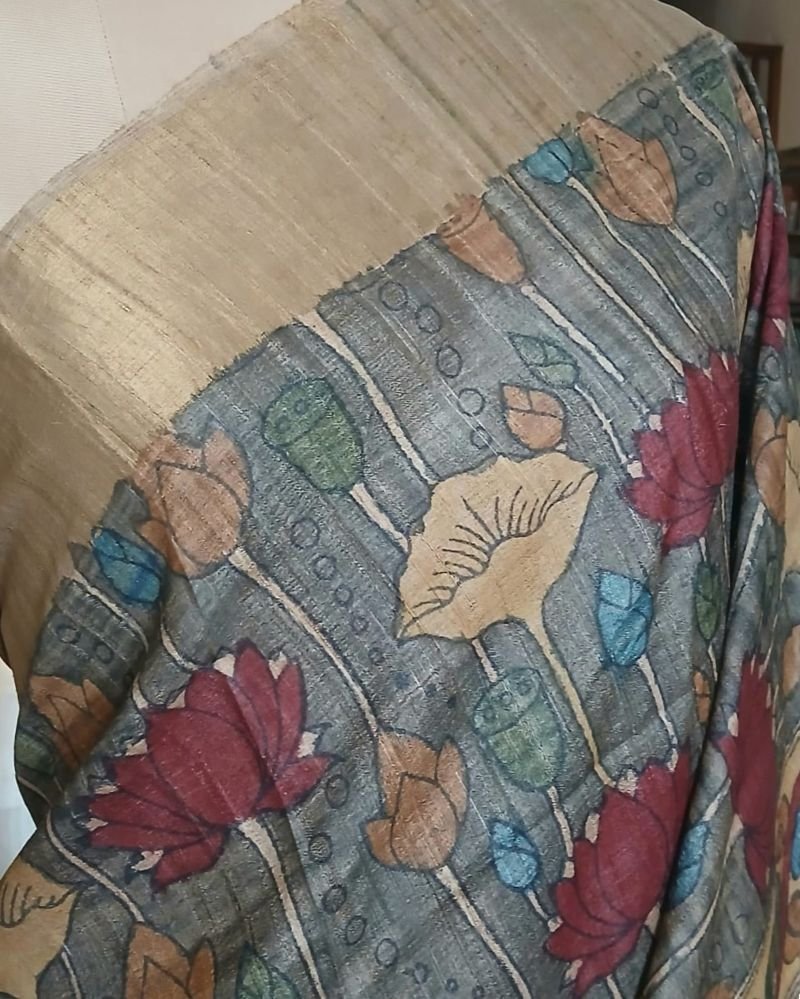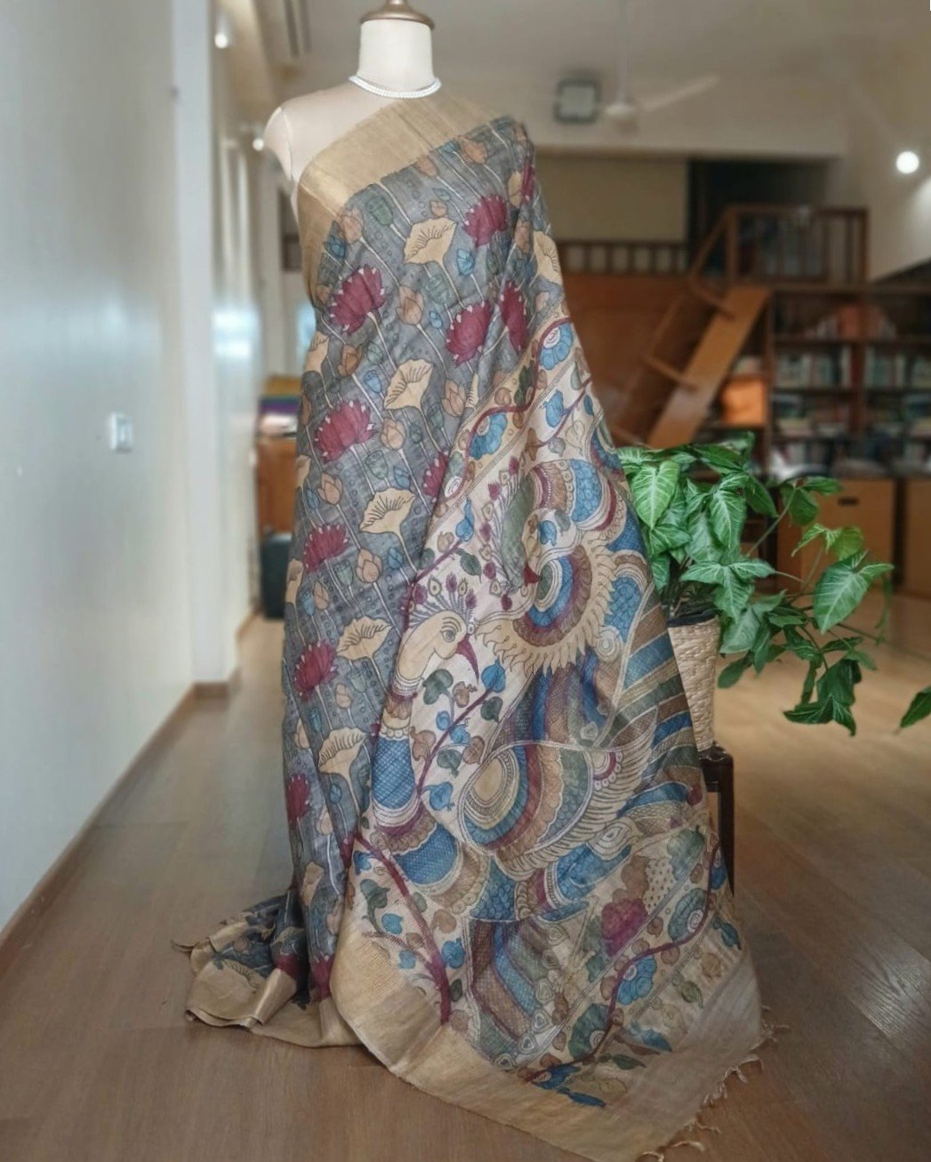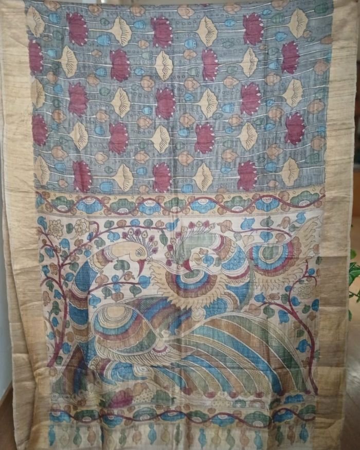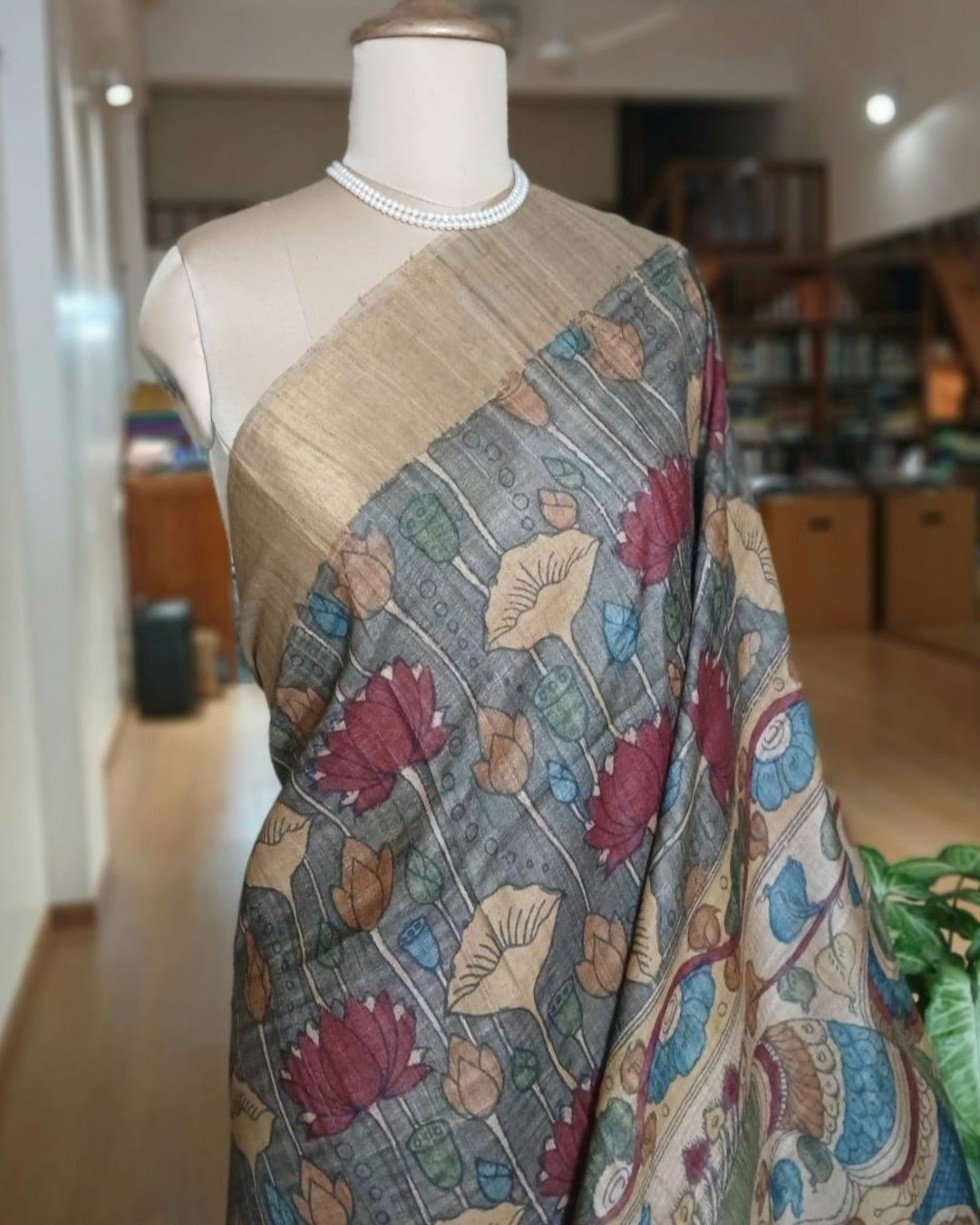 Pen Kalamkari saree on Tussar Silk