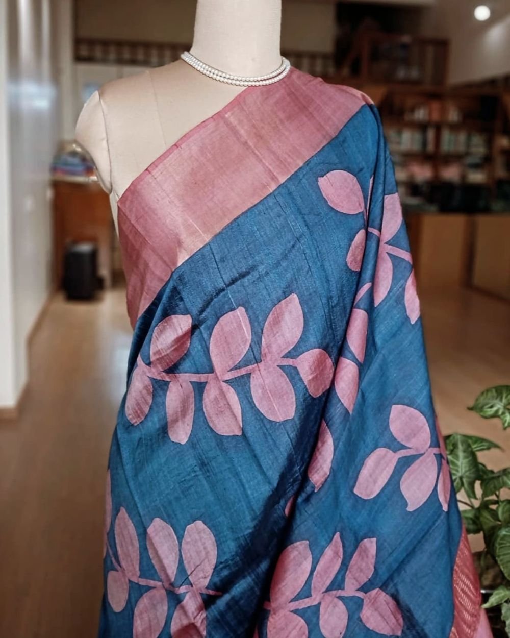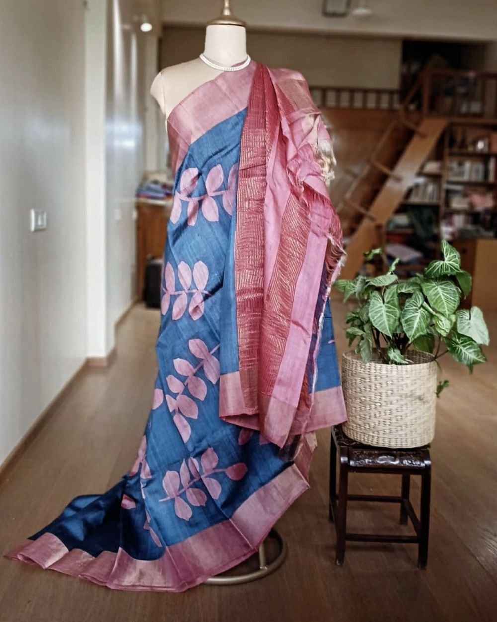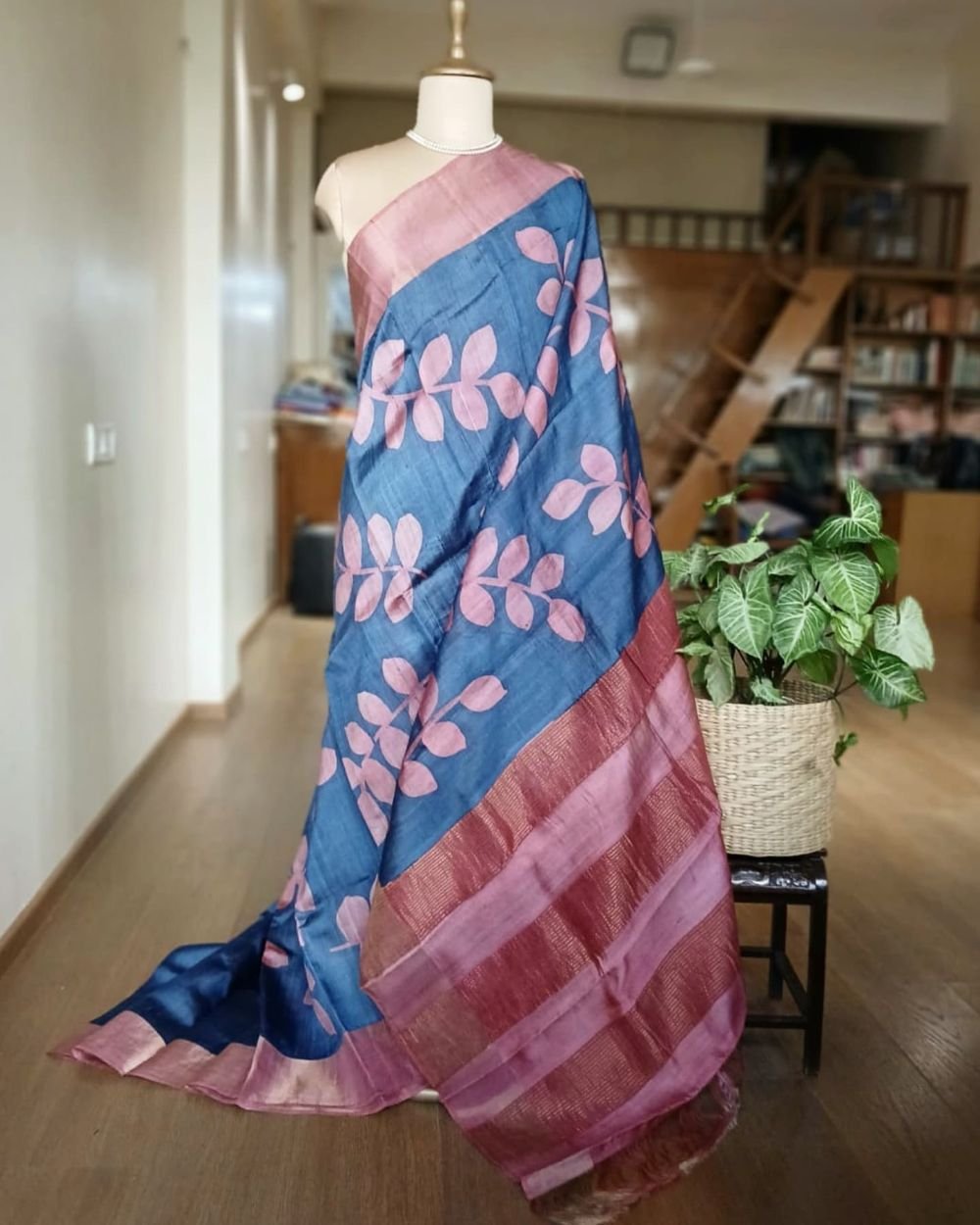 Handpainted Tussar Silk Saree – (TSHS0003)