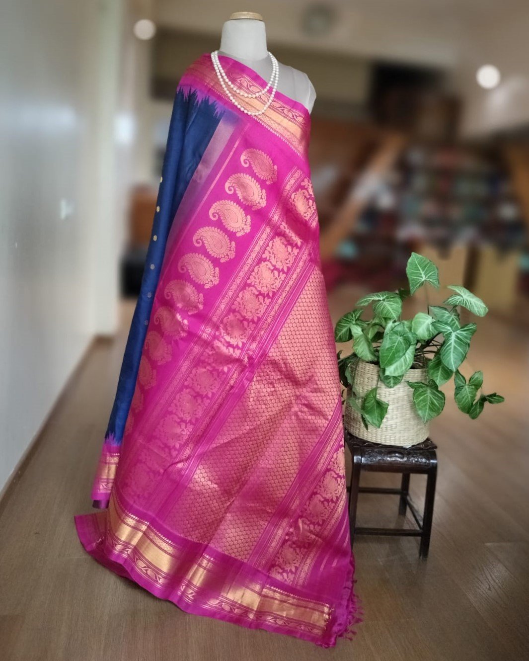 Handweave Gadwal Silk Saree – Blue and Pink