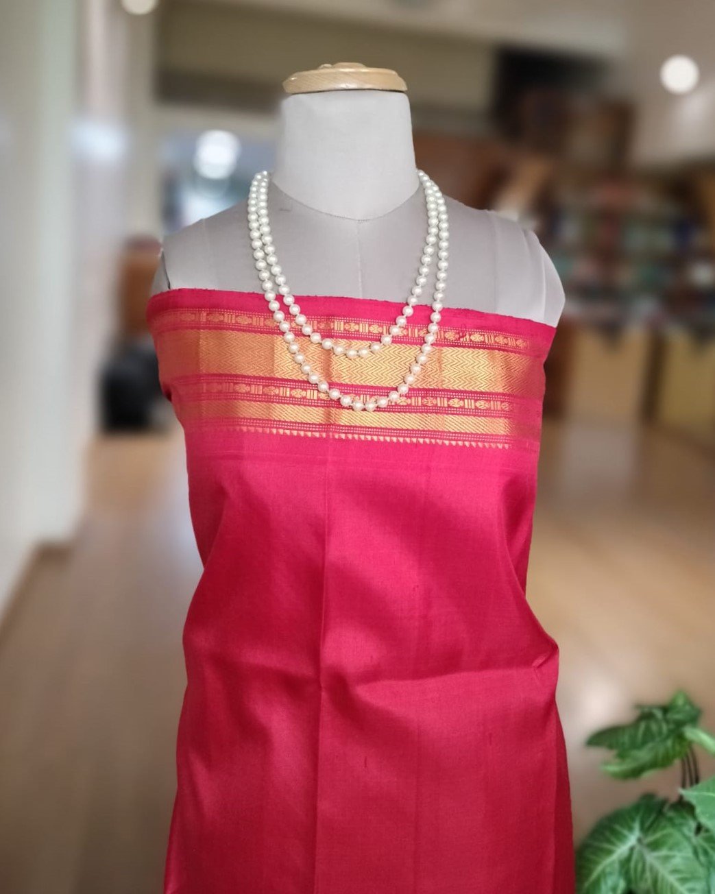 Gadwal handweave silk sarees with kuttu borders, zari buttis and grand palla. There is a contrast blouse in the palla colour