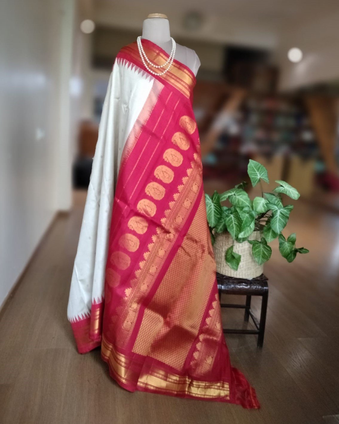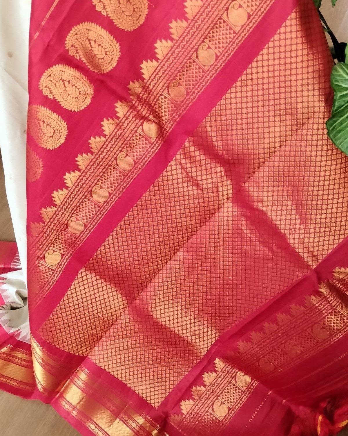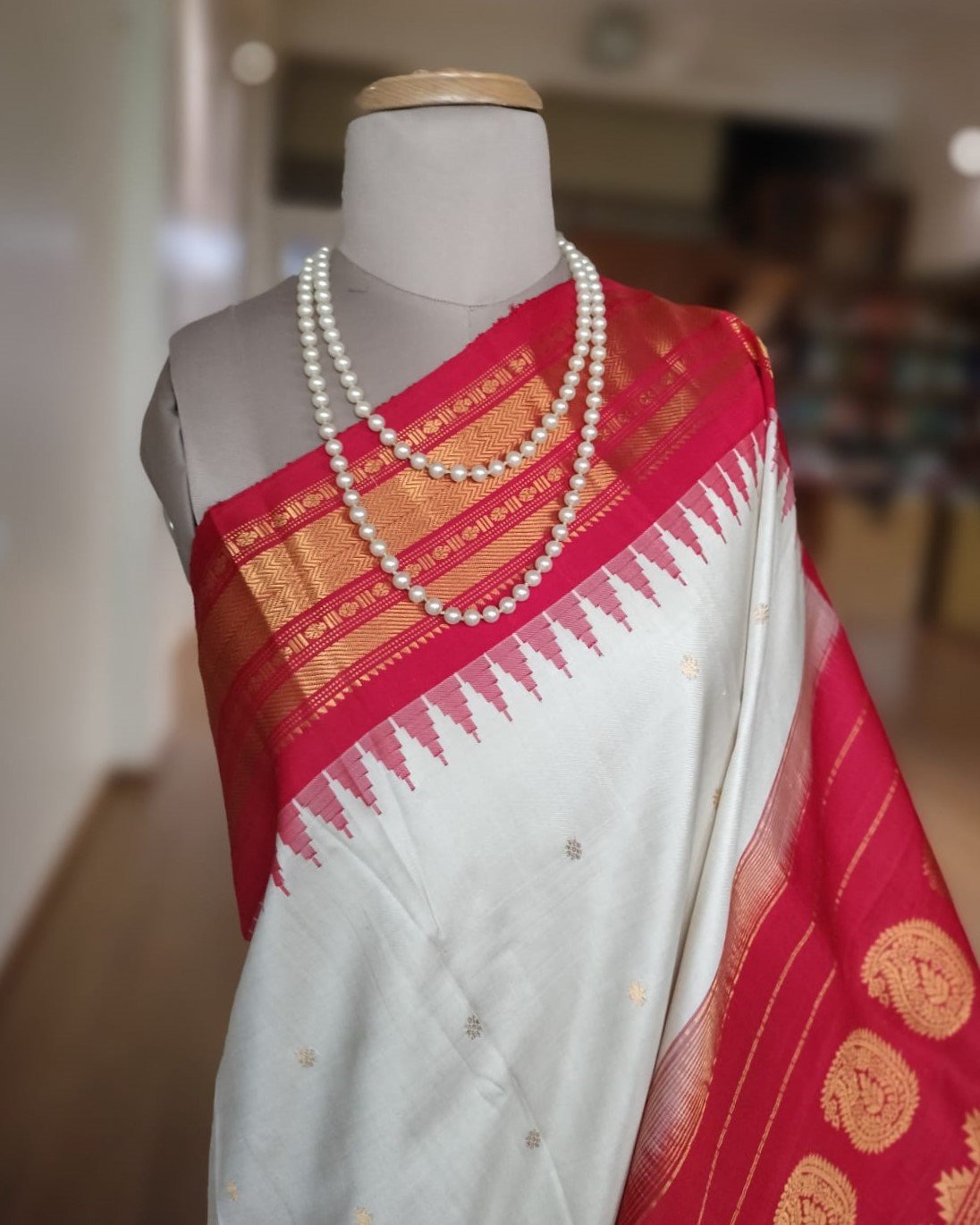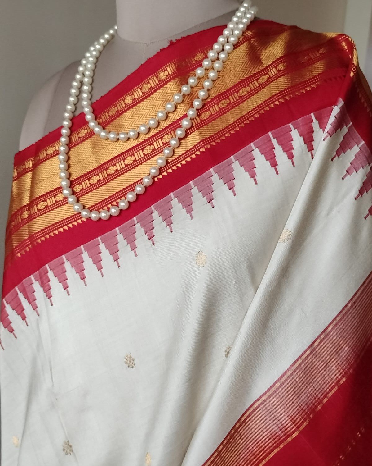 Handweave Gadwal Silk Saree – Offwhite and Red (2)