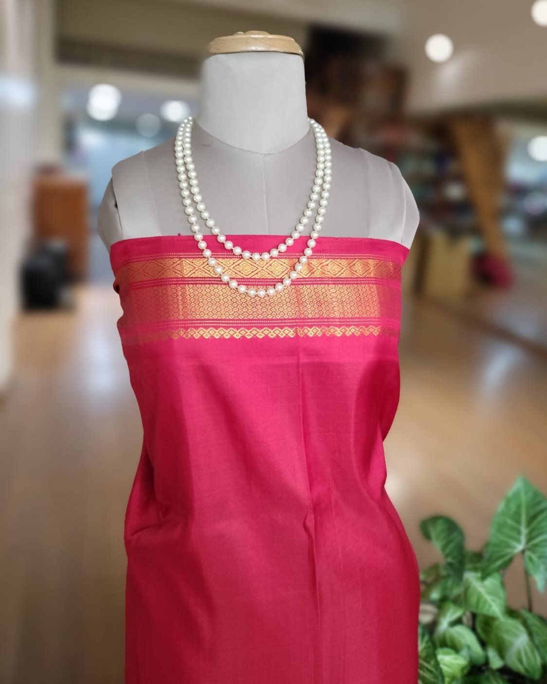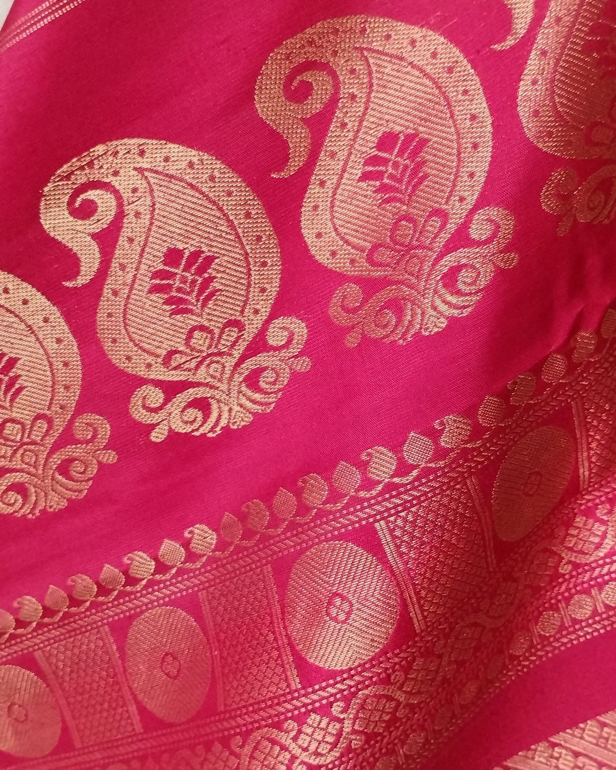 Gadwal handweave silk sarees with kuttu borders, zari buttis and grand palla. There is a contrast blouse in the palla colour
