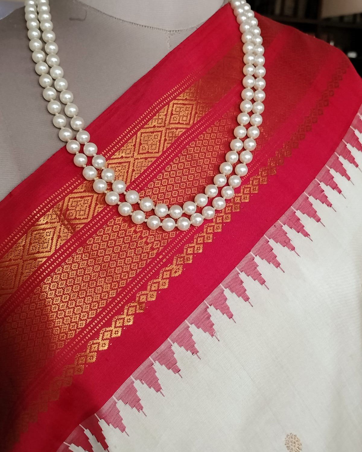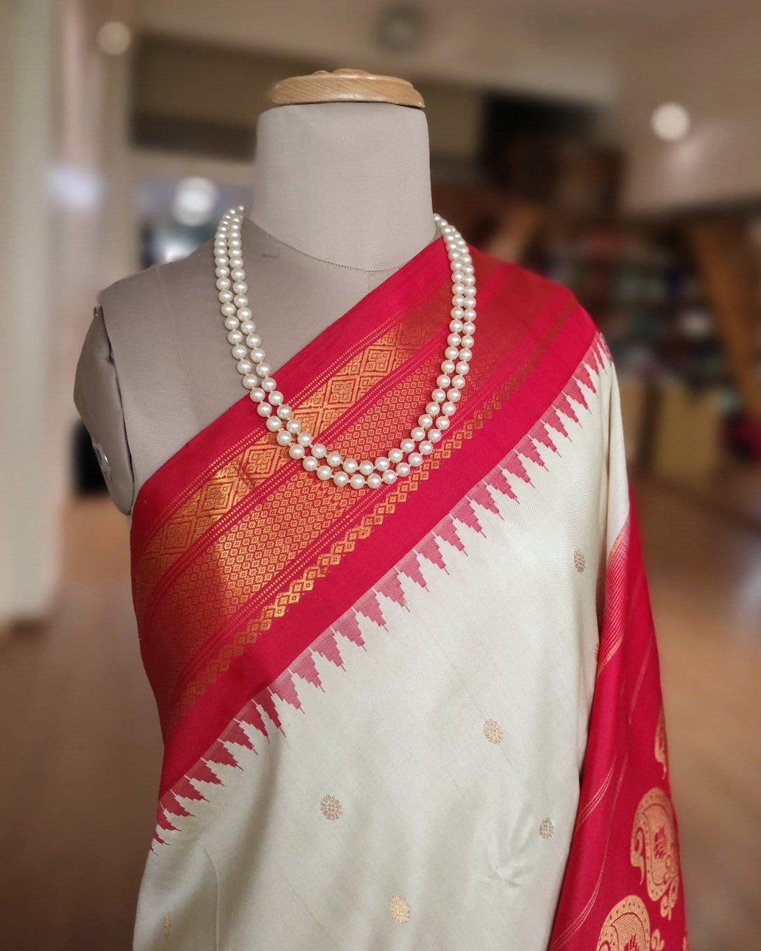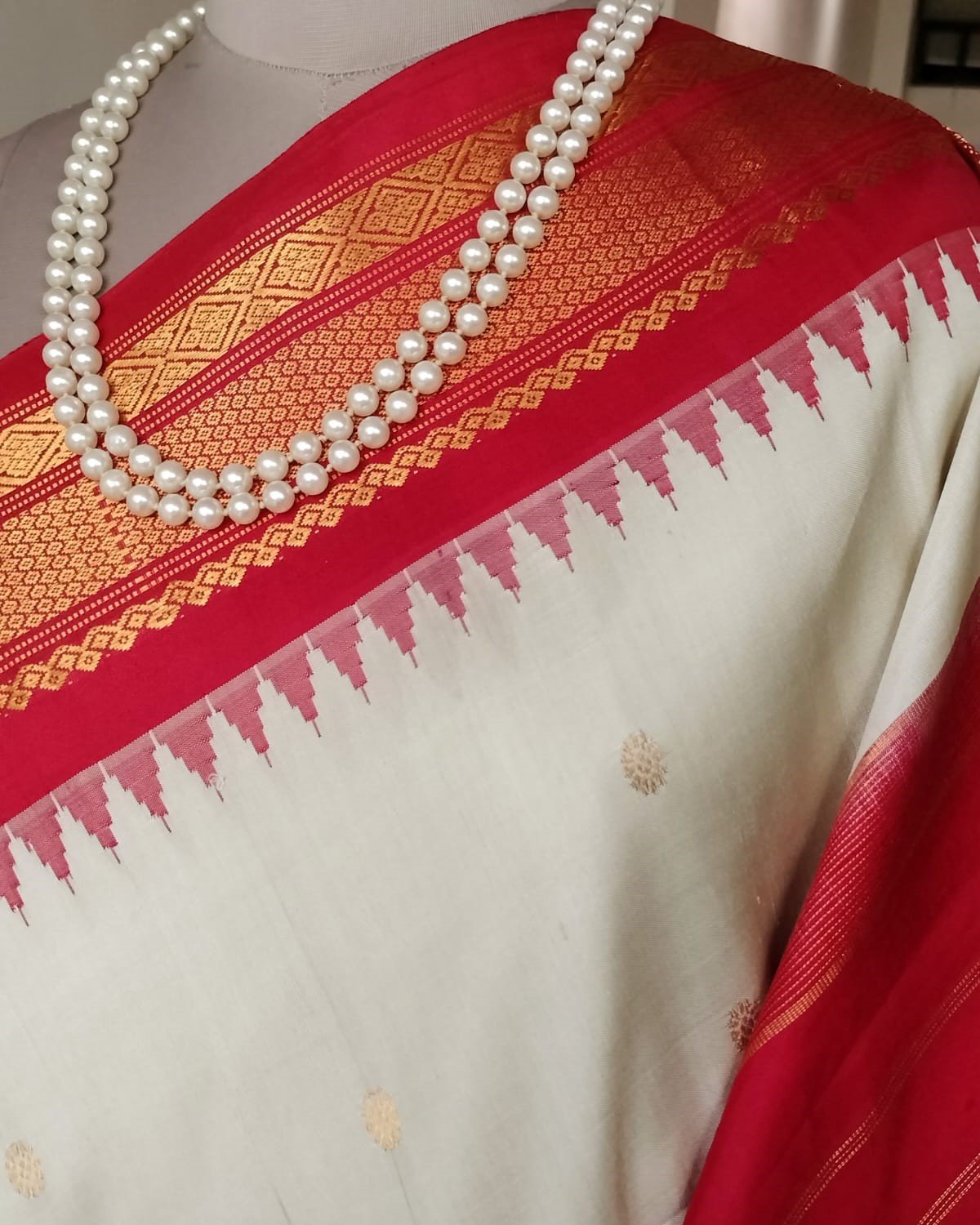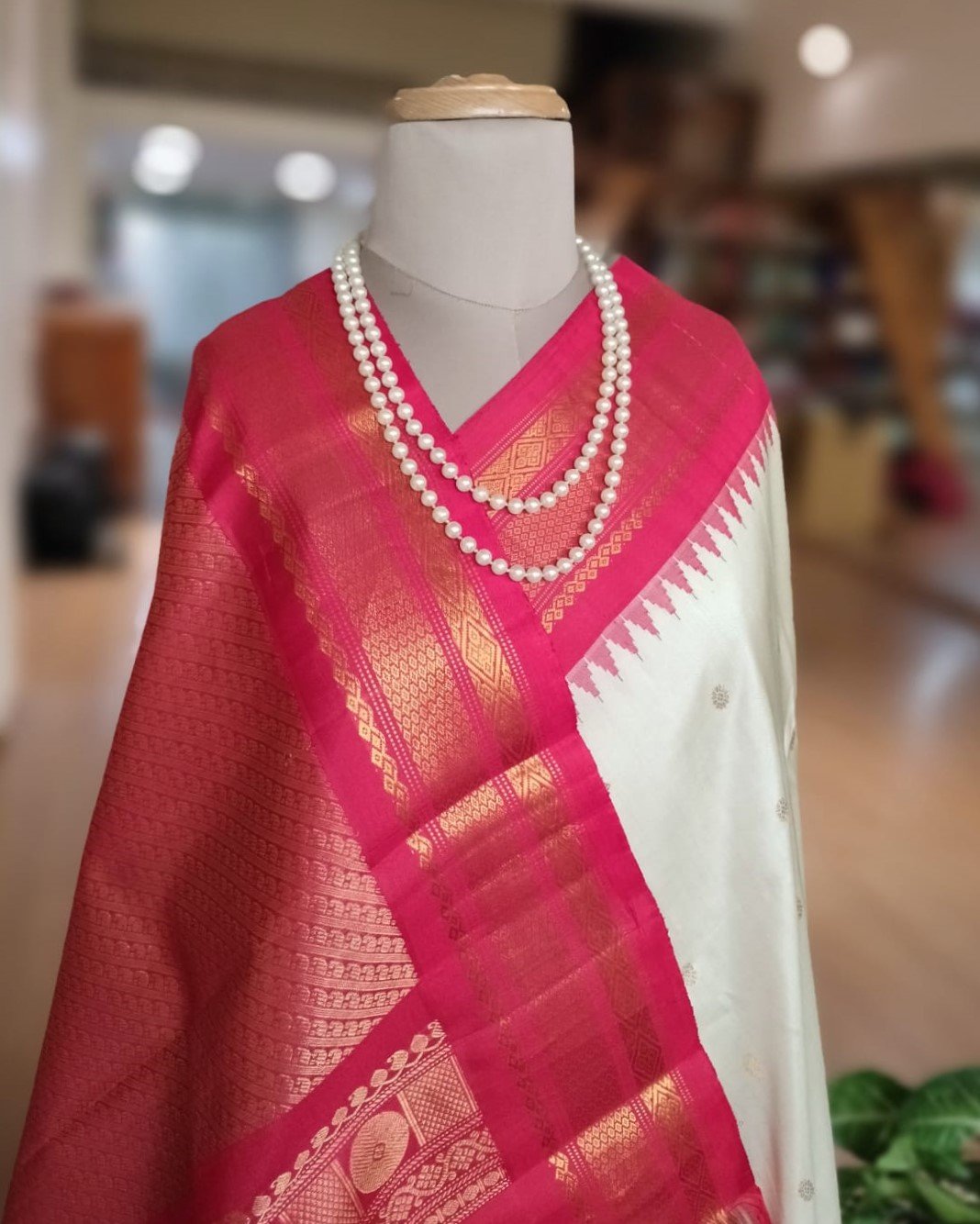 Handweave Gadwal Silk Saree – Offwhite and Red