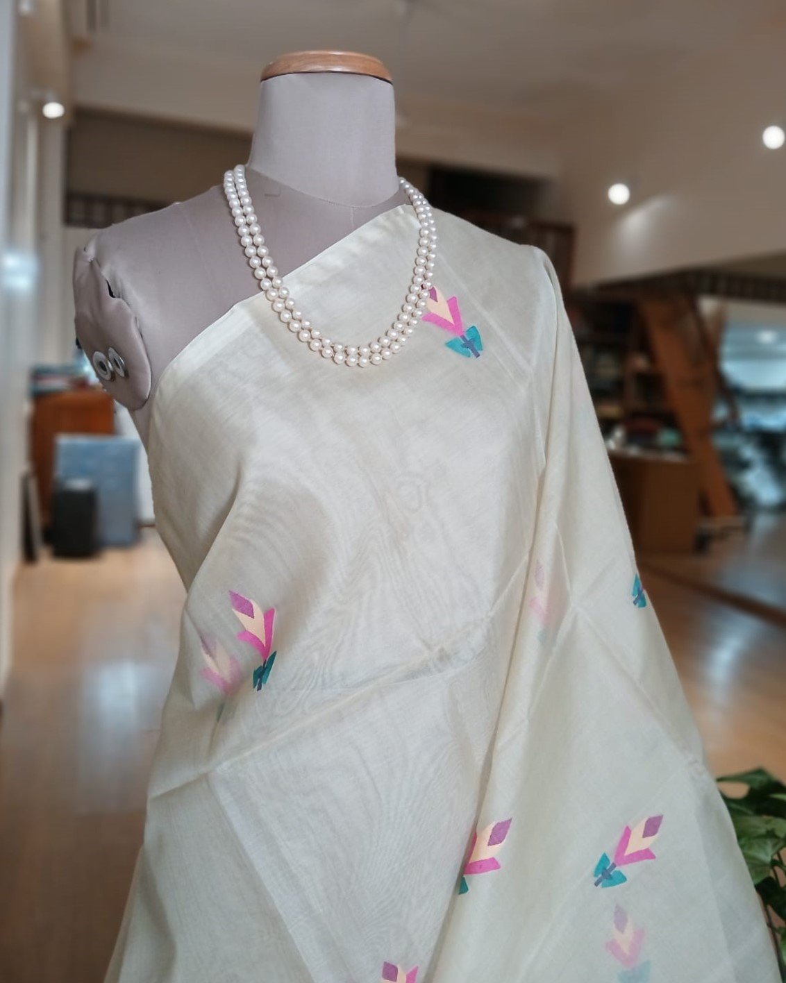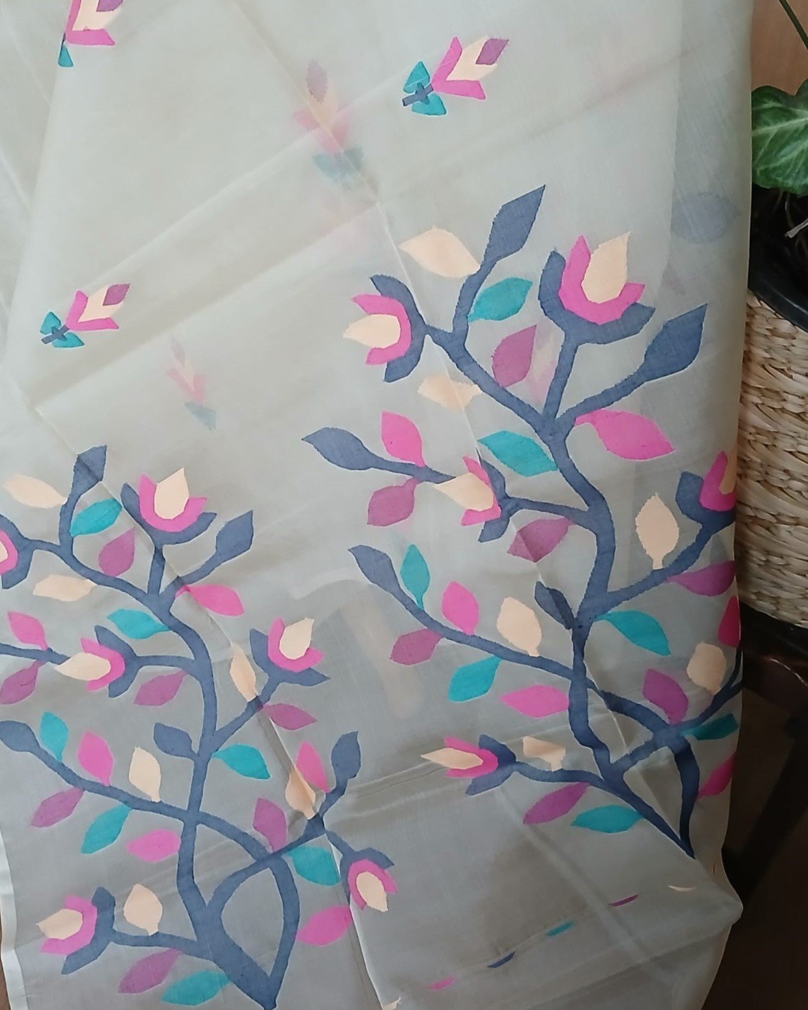 Hand Jamdani Saree from Phulia using the skilled needle jamdani technique