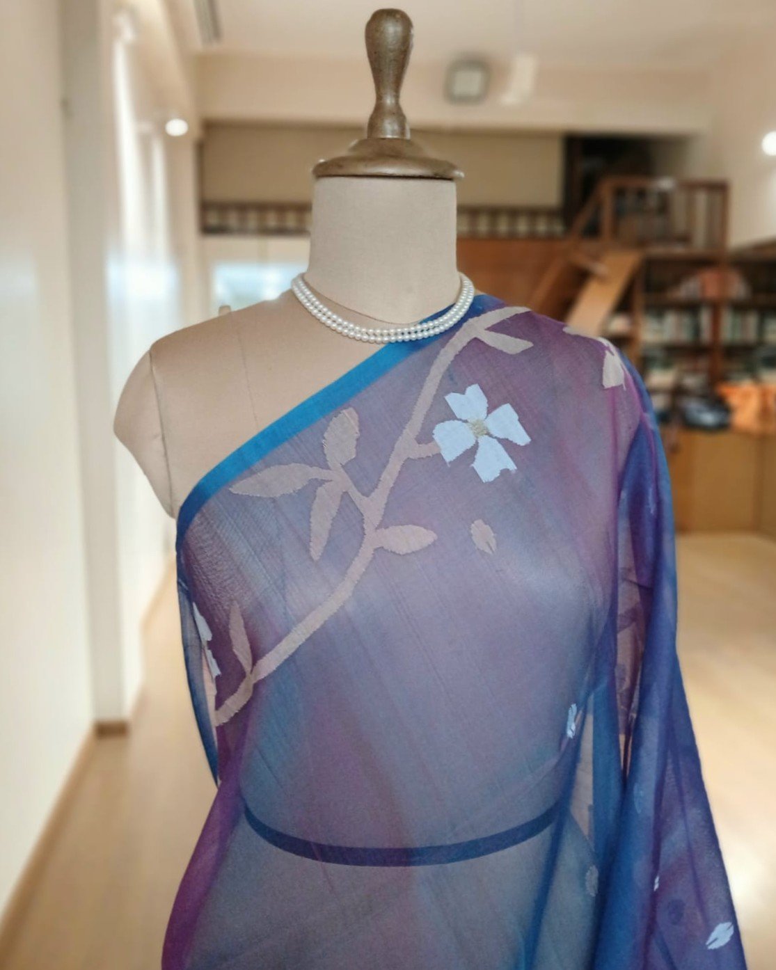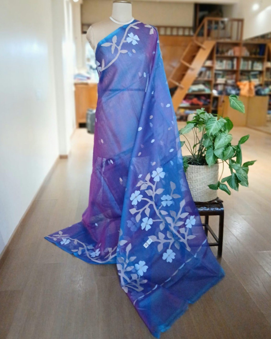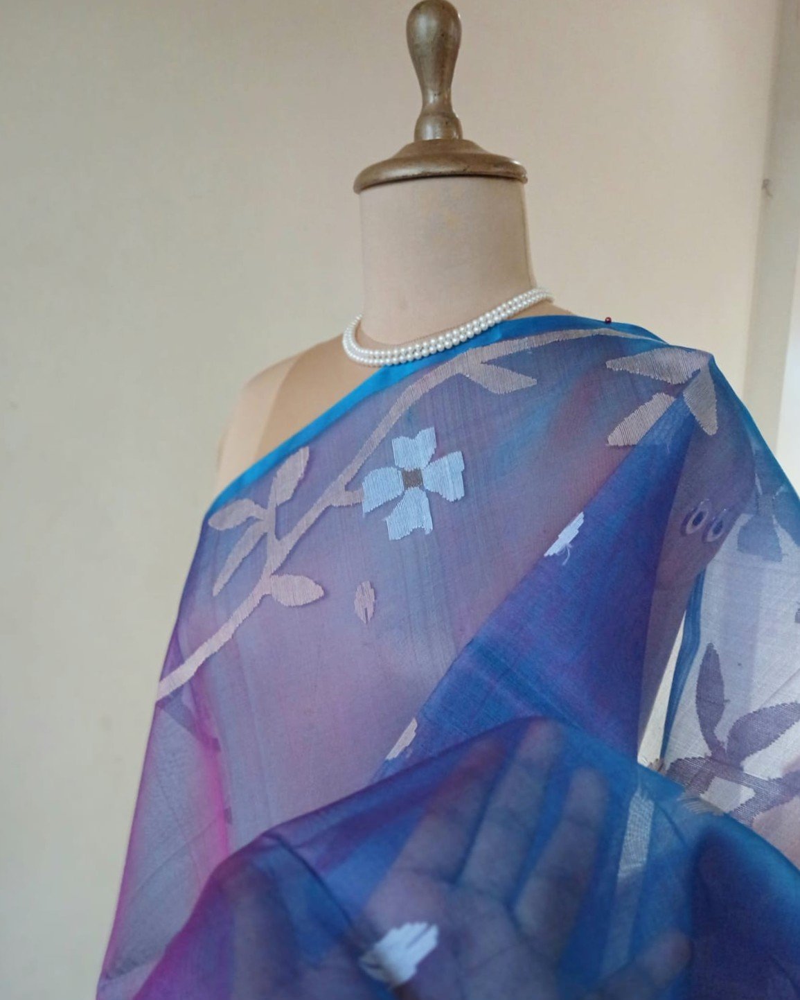 Hand jamdani from Phulia using the skilled needle jamdani technique. The weavers came from Tangail in Bangladesh during partition of India and also during the 1971 war.