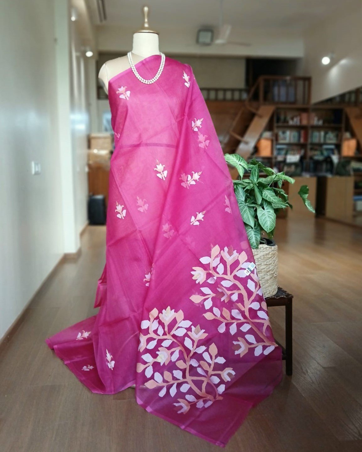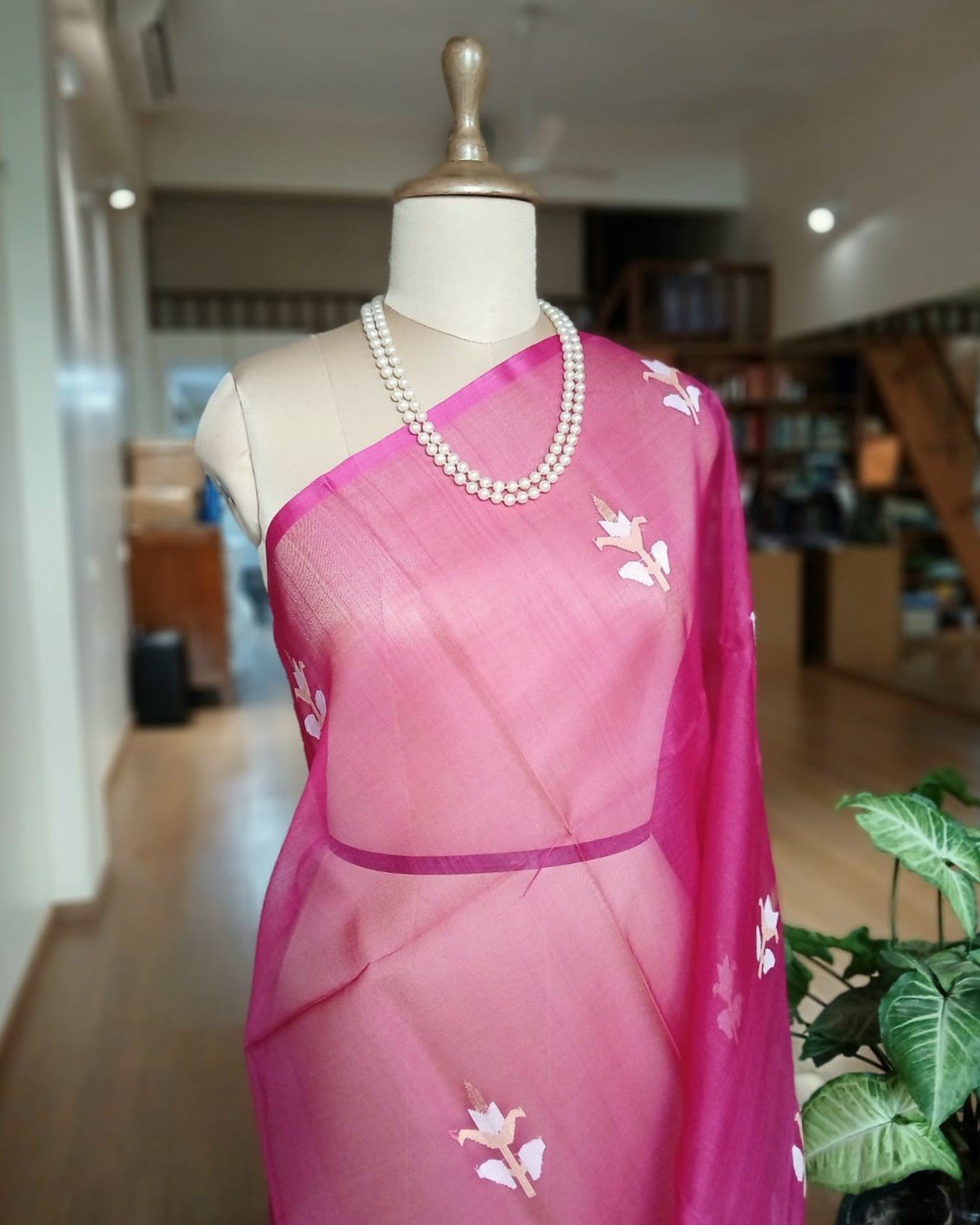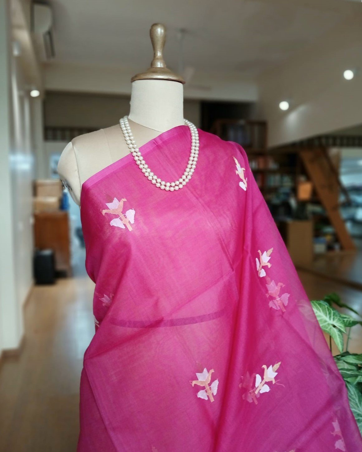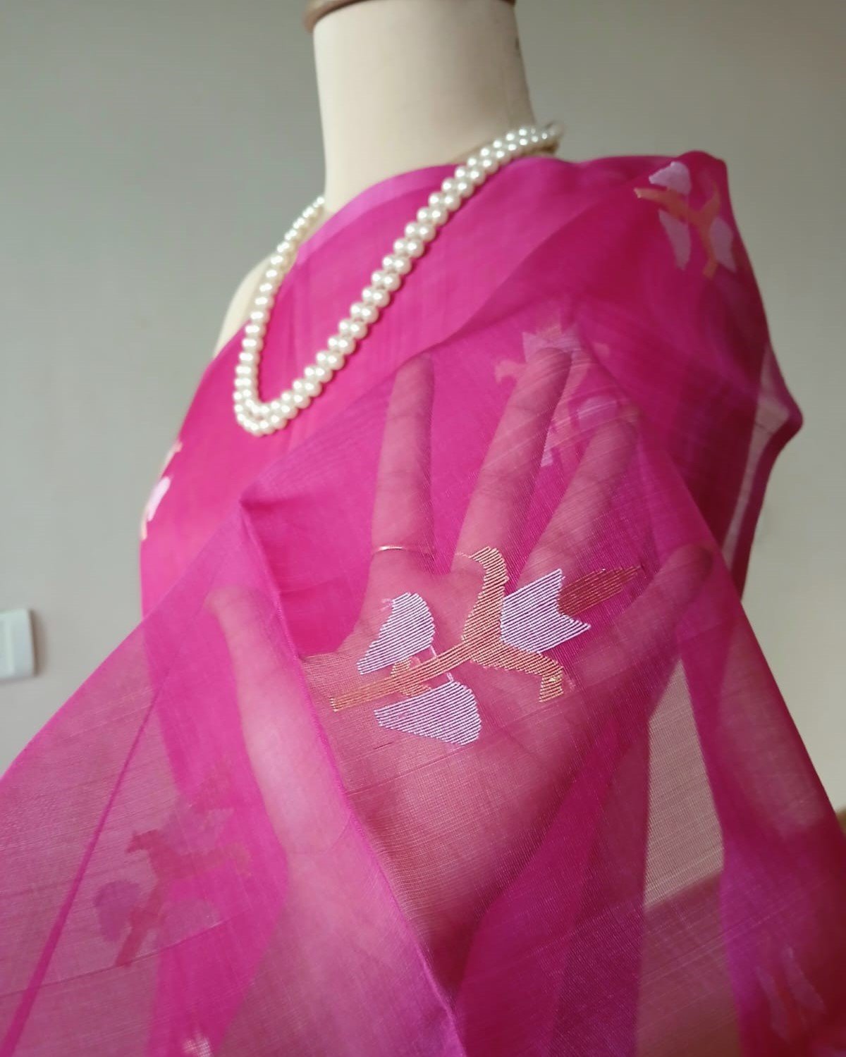 Hand jamdani from Phulia using the skilled needle jamdani technique. The weavers came from Tangail in Bangladesh during partition of India and also during the 1971 war.