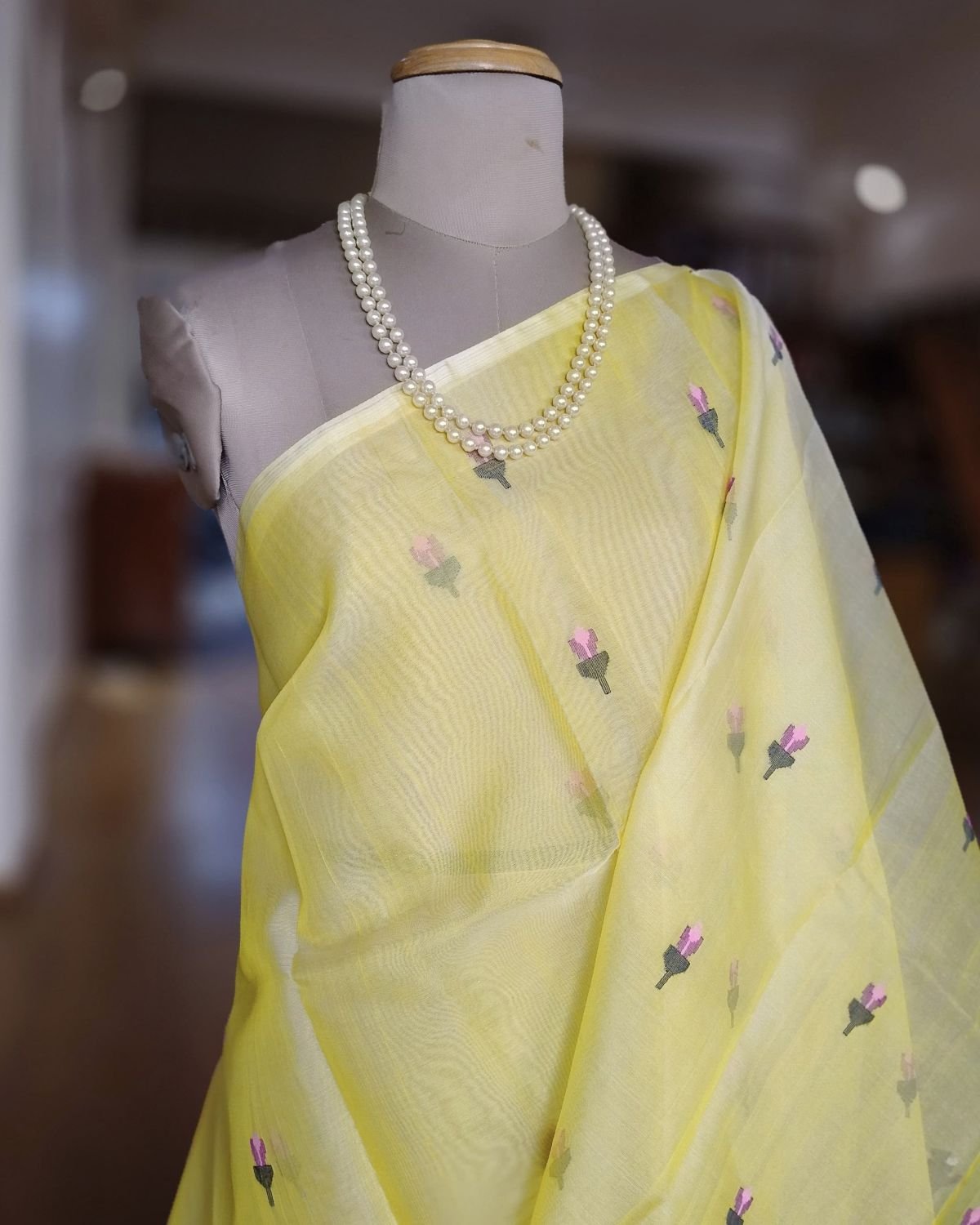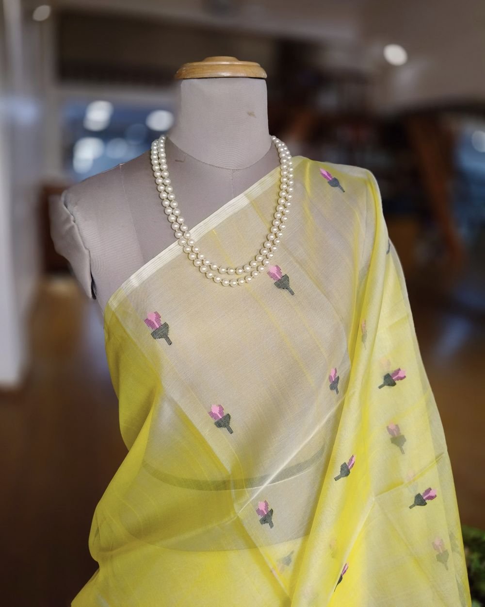 Hand Jamdani Saree from Phulia using the skilled needle jamdani technique