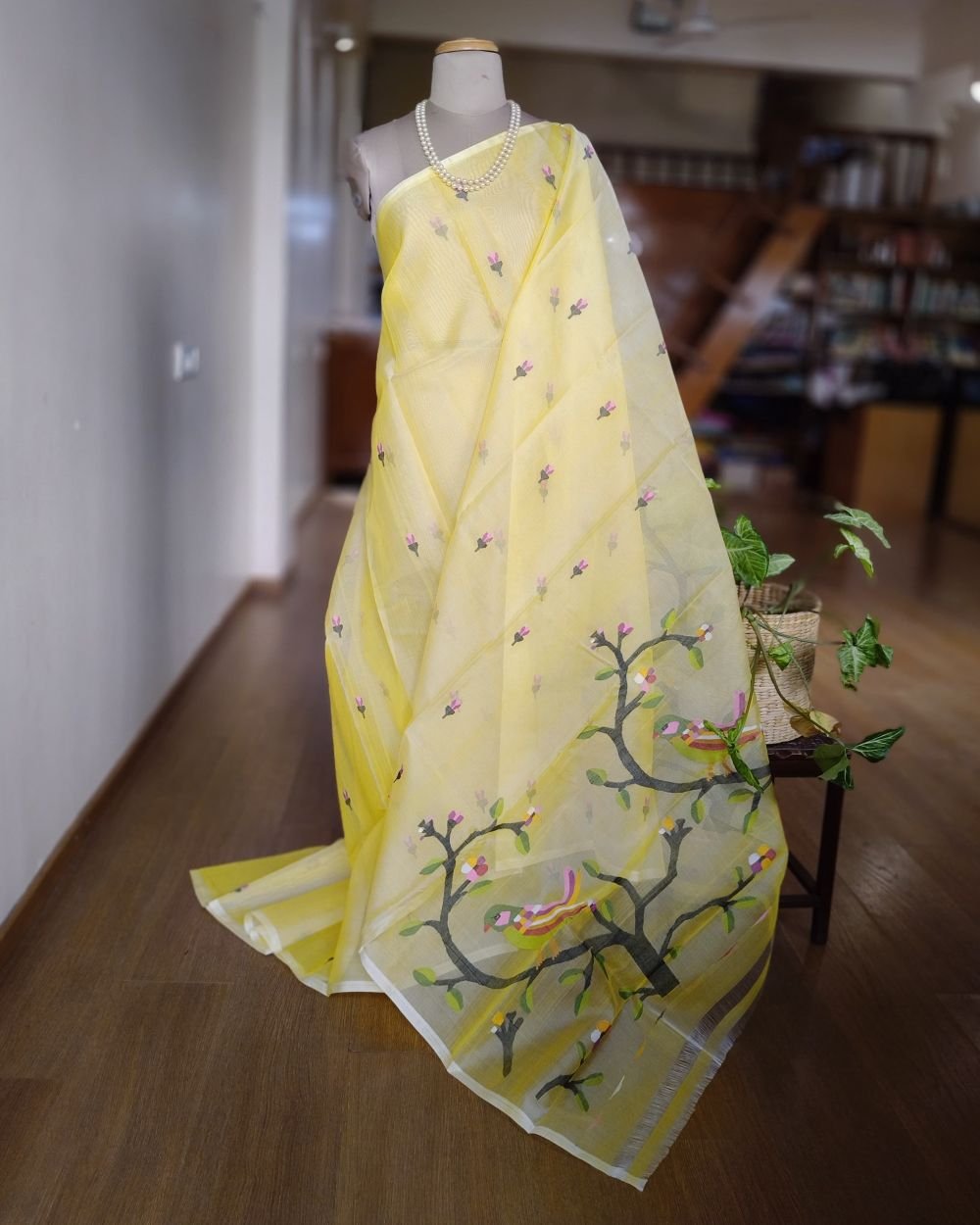 Hand jamdani from Phulia using the skilled needle jamdani technique. The weavers came from Tangail in Bangladesh during partition of India and also during the 1971 war.