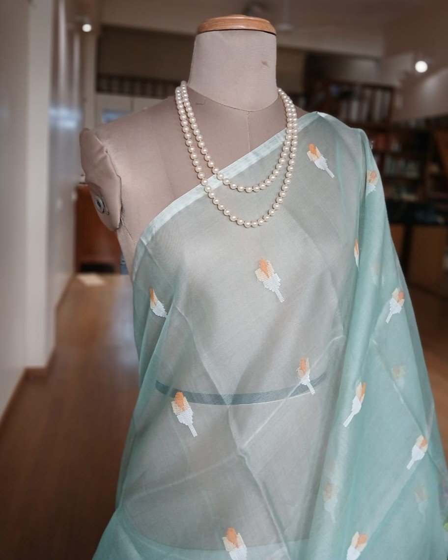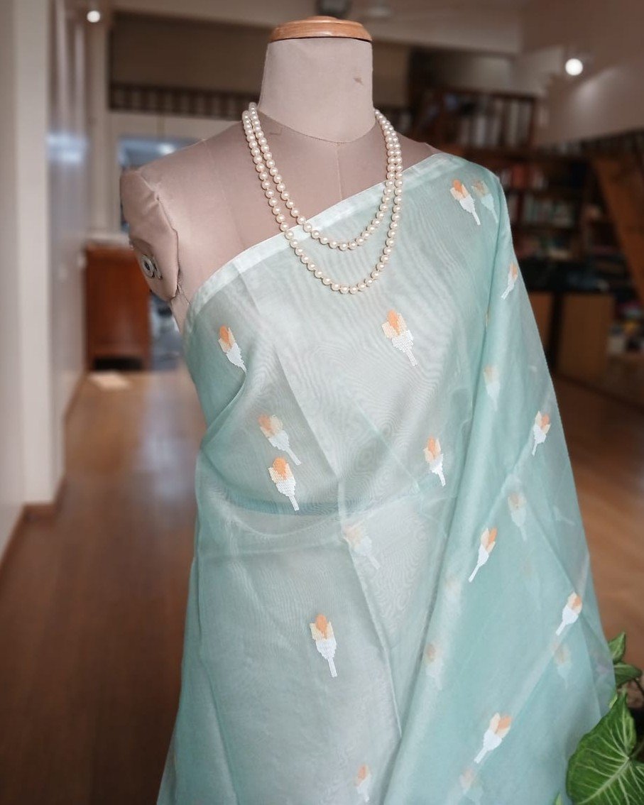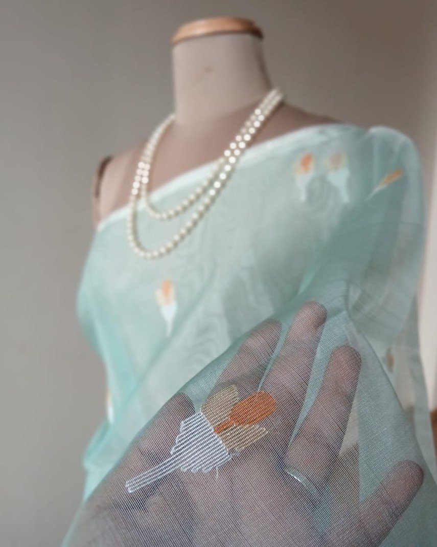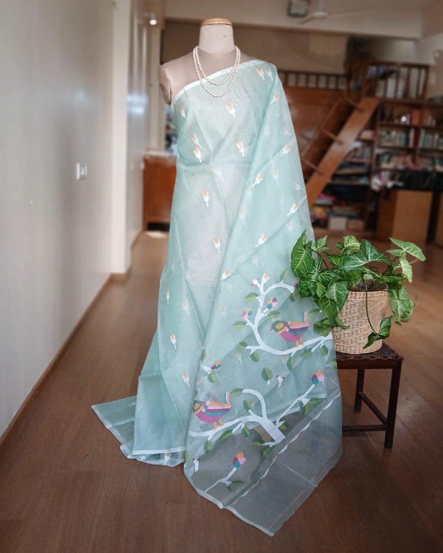 Hand Jamdani Saree from Phulia using the skilled needle jamdani technique
