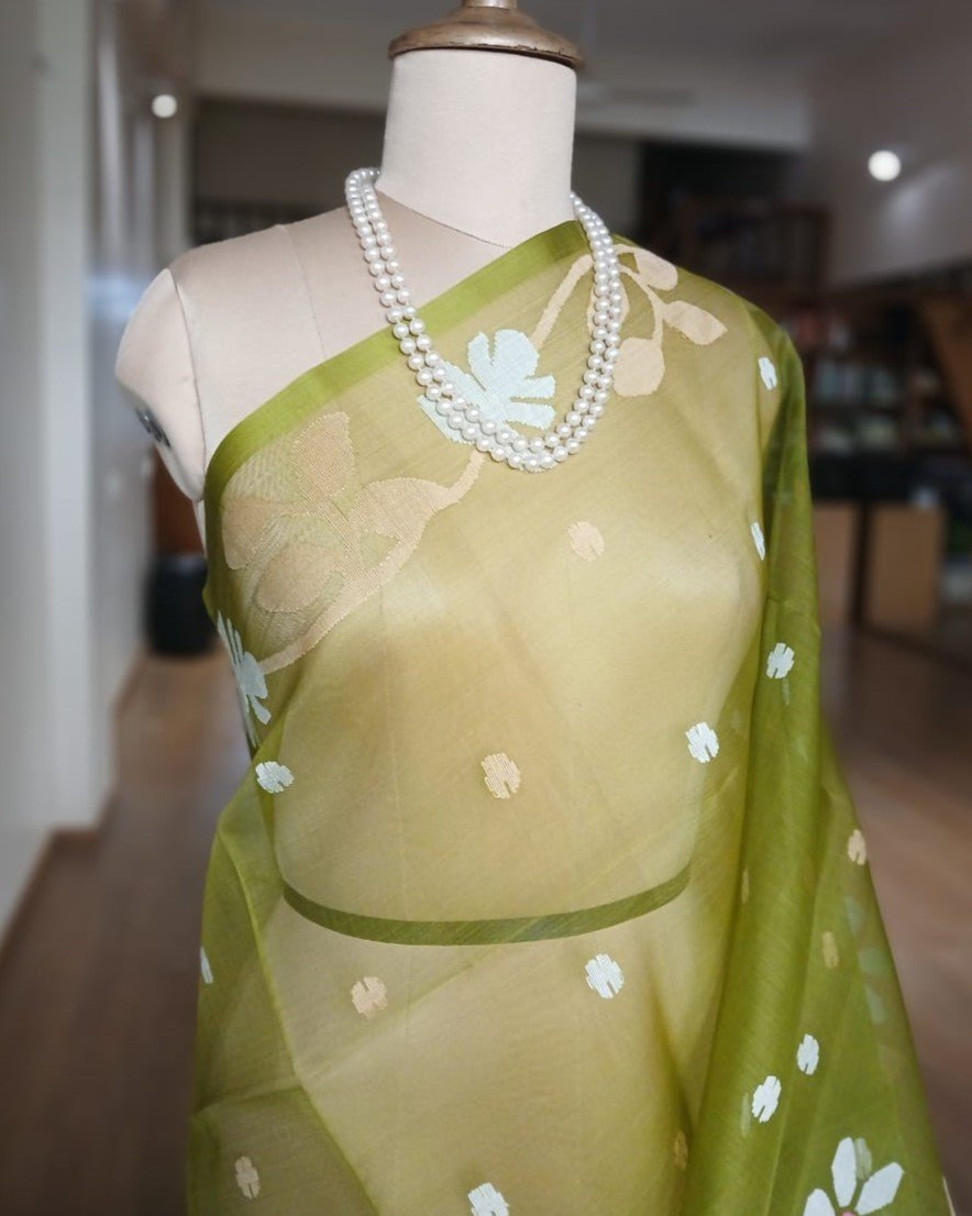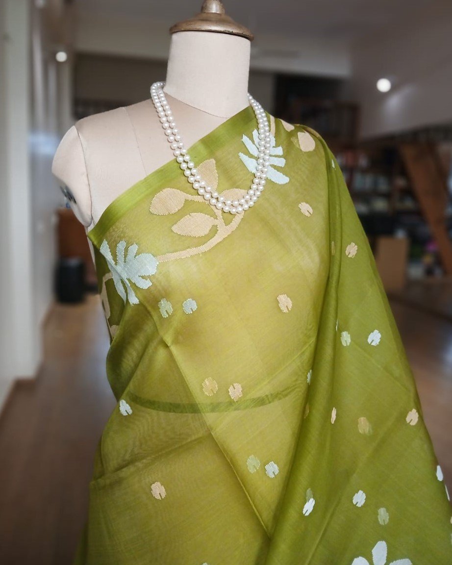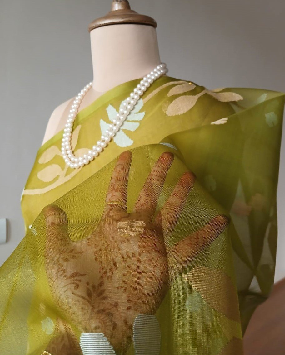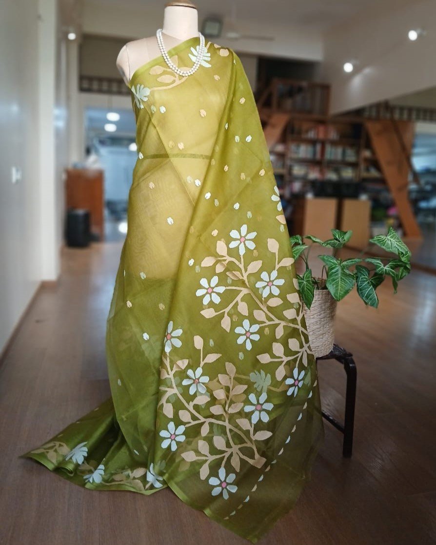 Hand Jamdani Saree from Phulia using the skilled needle jamdani technique