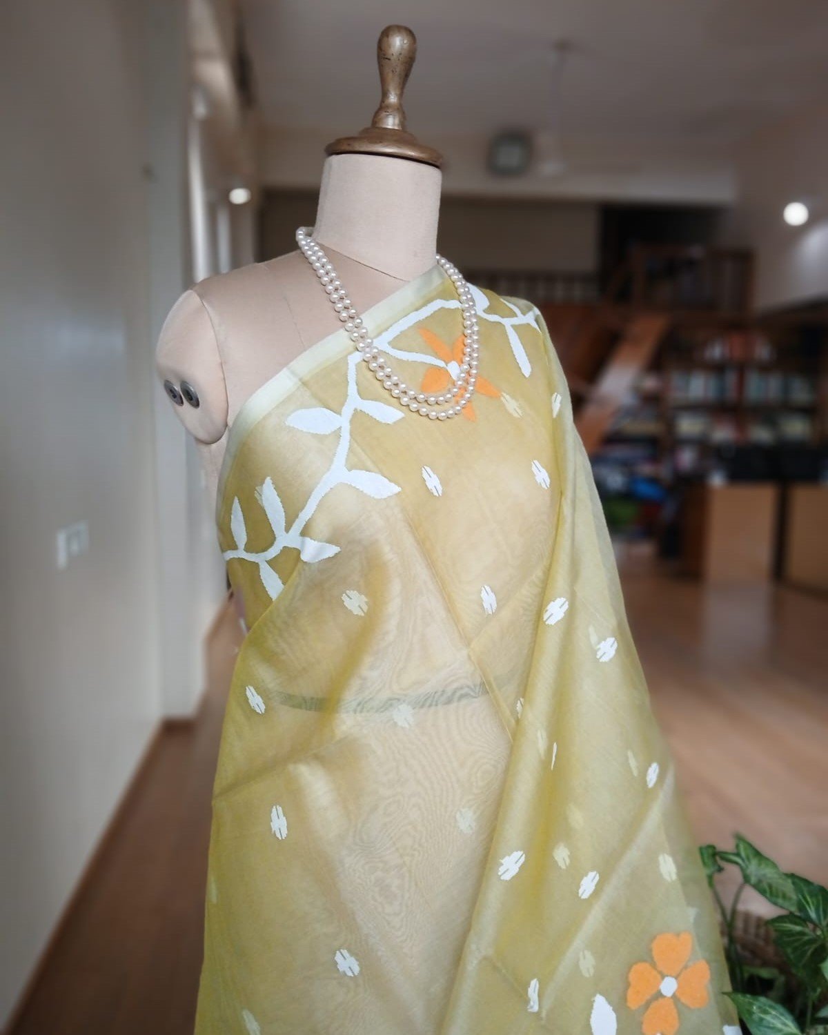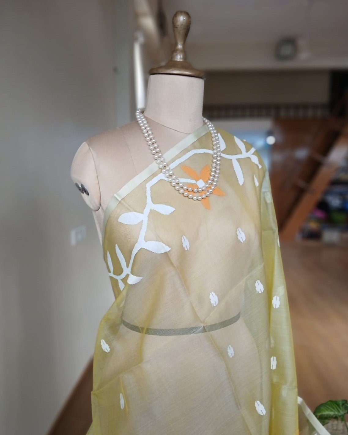 Hand jamdani from Phulia using the skilled needle jamdani technique. The weavers came from Tangail in Bangladesh during partition of India and also during the 1971 war.