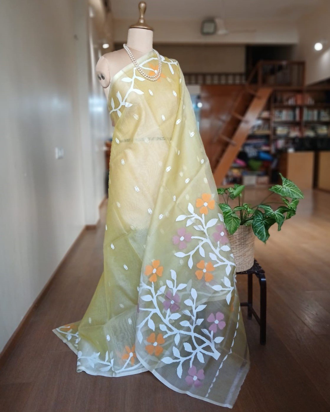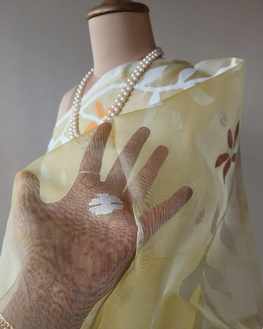 Hand Jamdani Saree from Phulia using the skilled needle jamdani technique