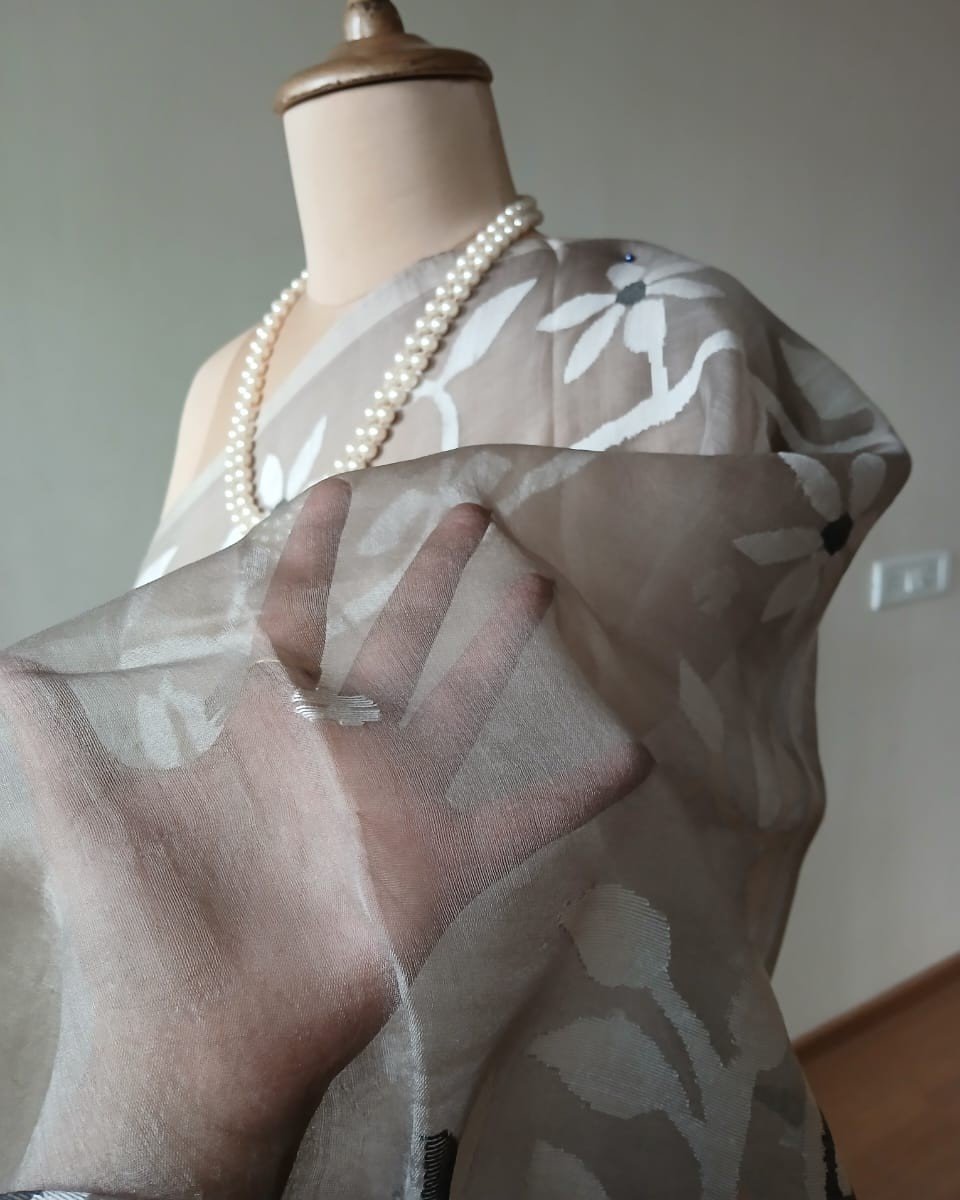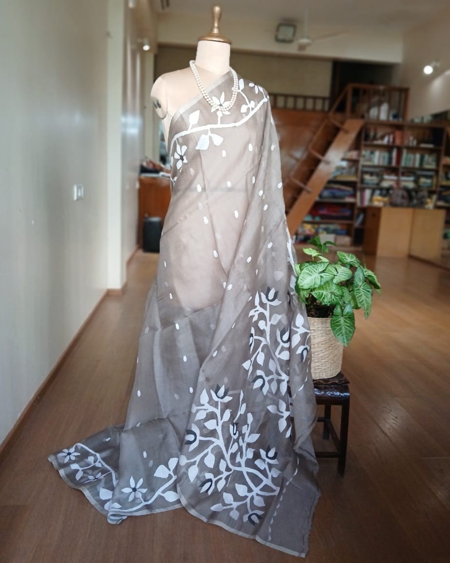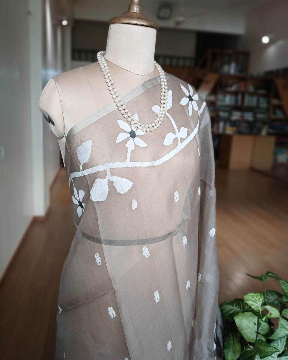 Hand Jamdani Saree from Phulia using the skilled needle jamdani technique