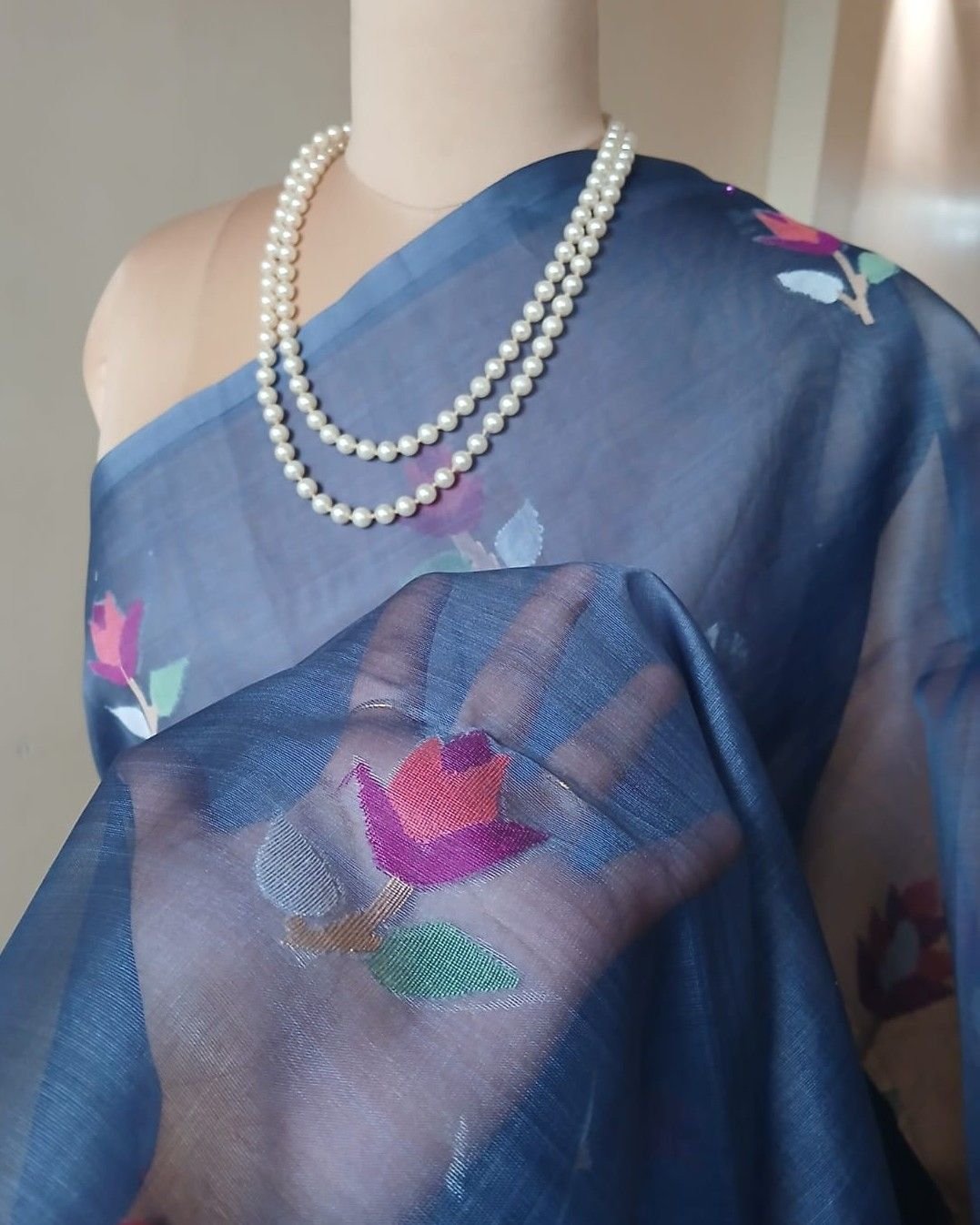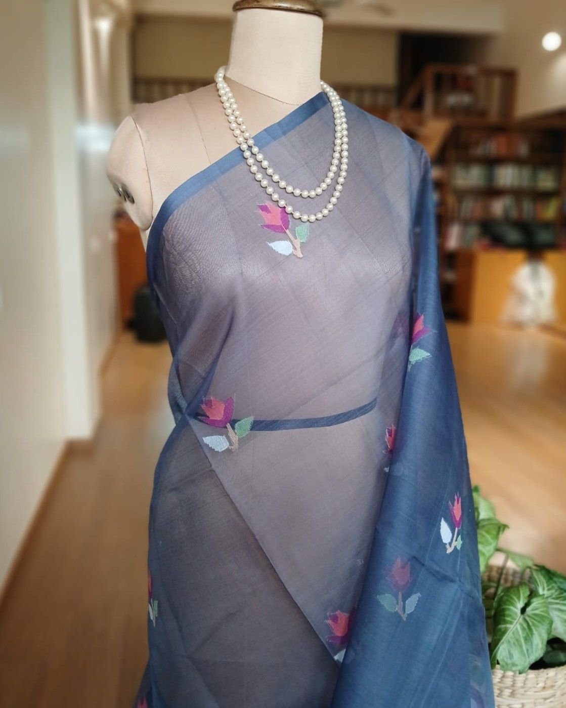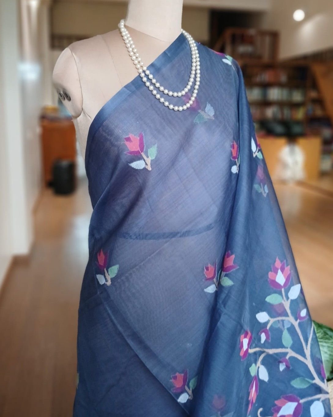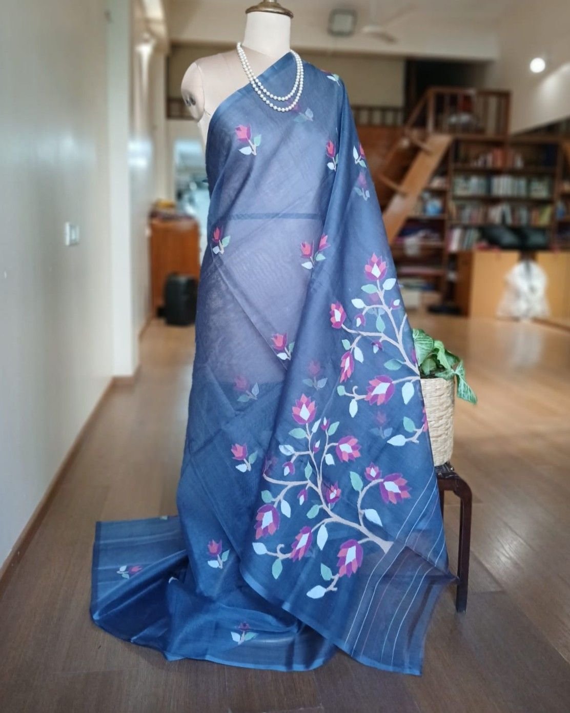 Hand Jamdani Saree from Phulia using the skilled needle jamdani technique