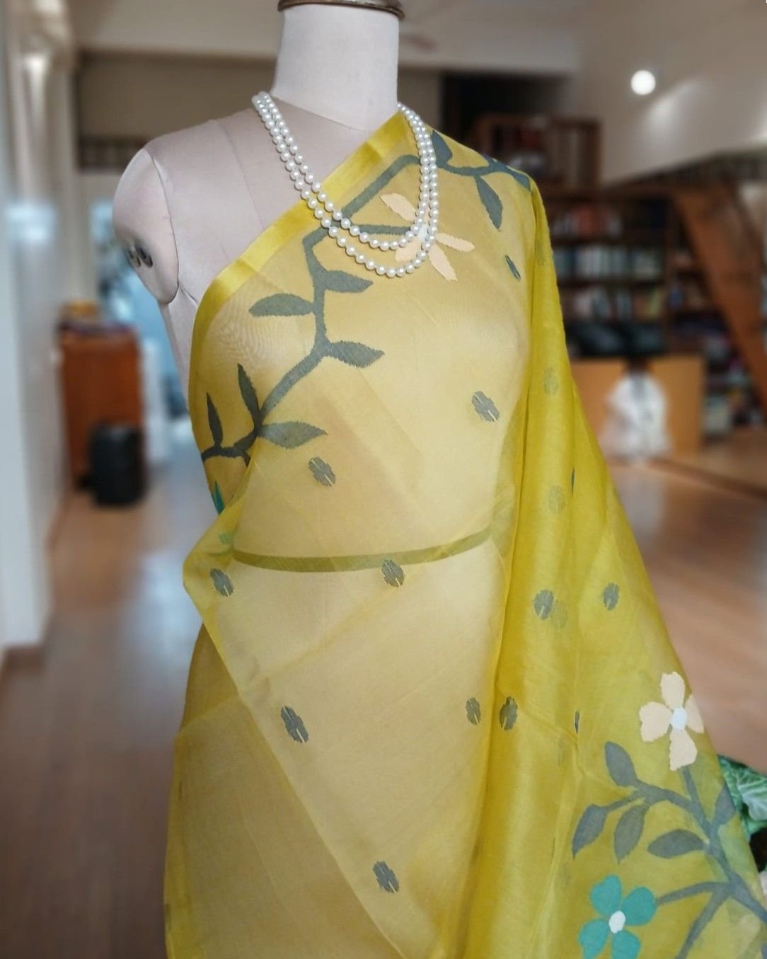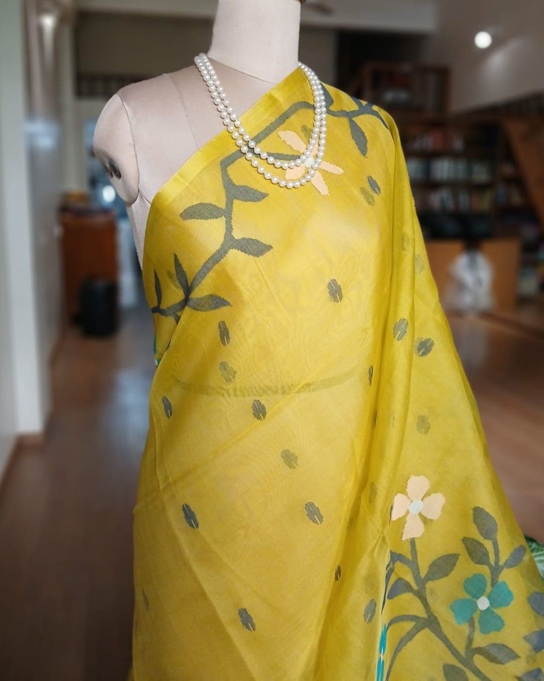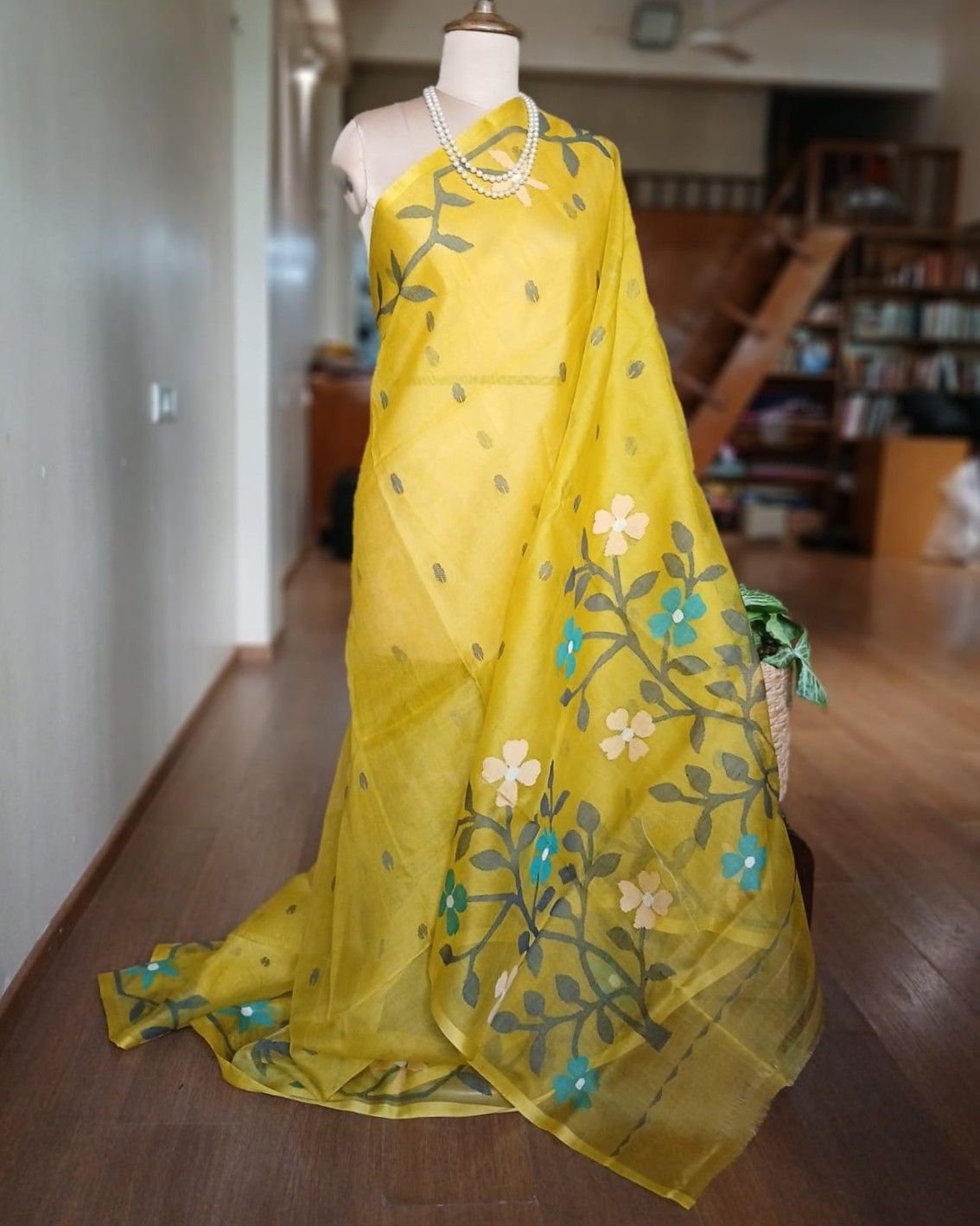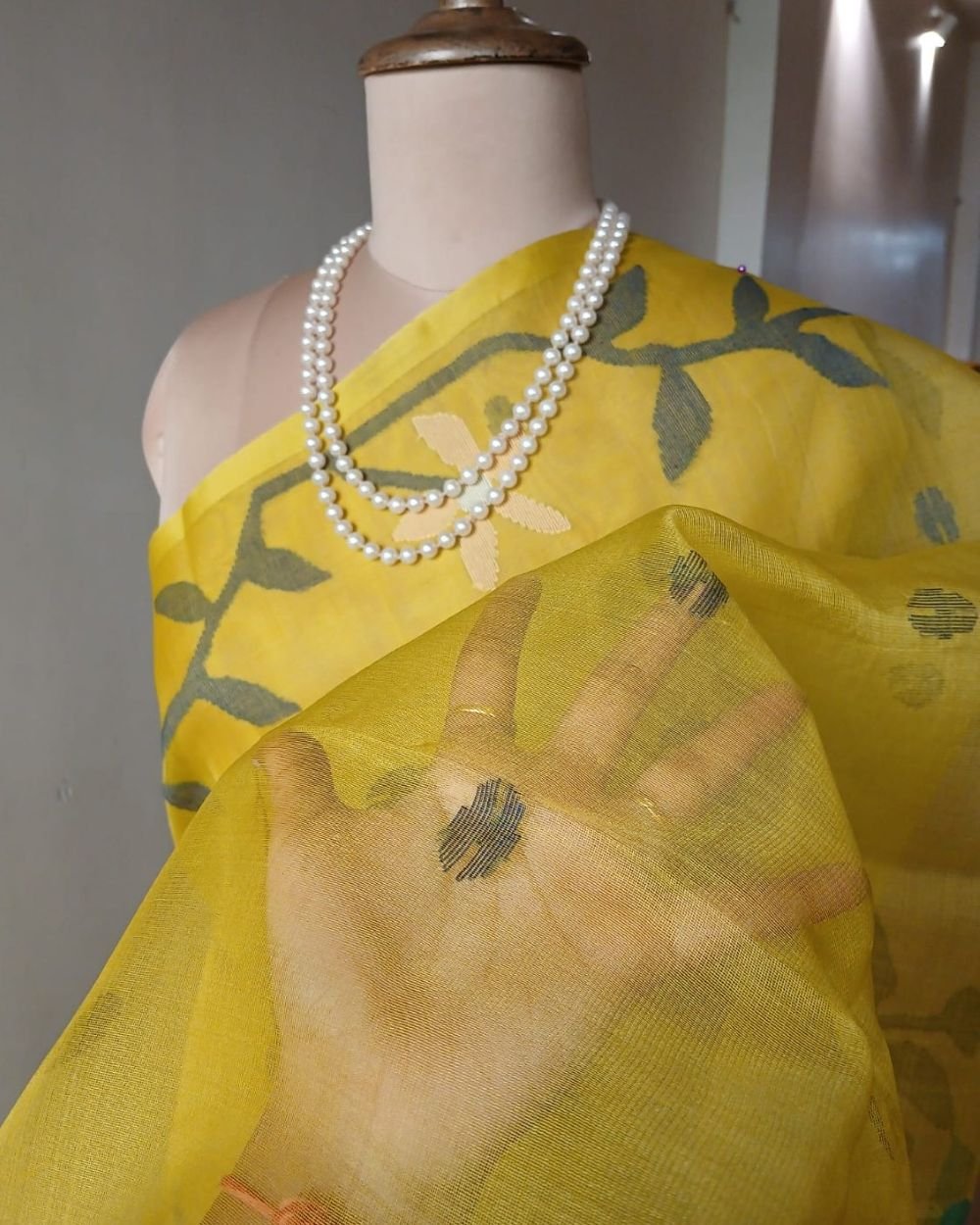 Hand Jamdani Saree from Phulia using the skilled needle jamdani technique