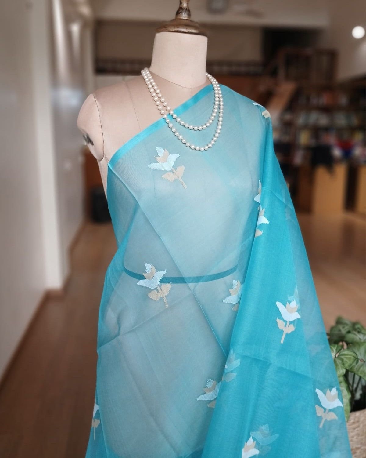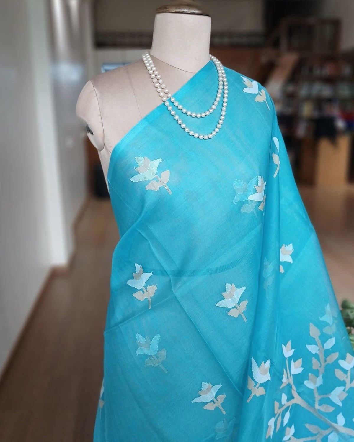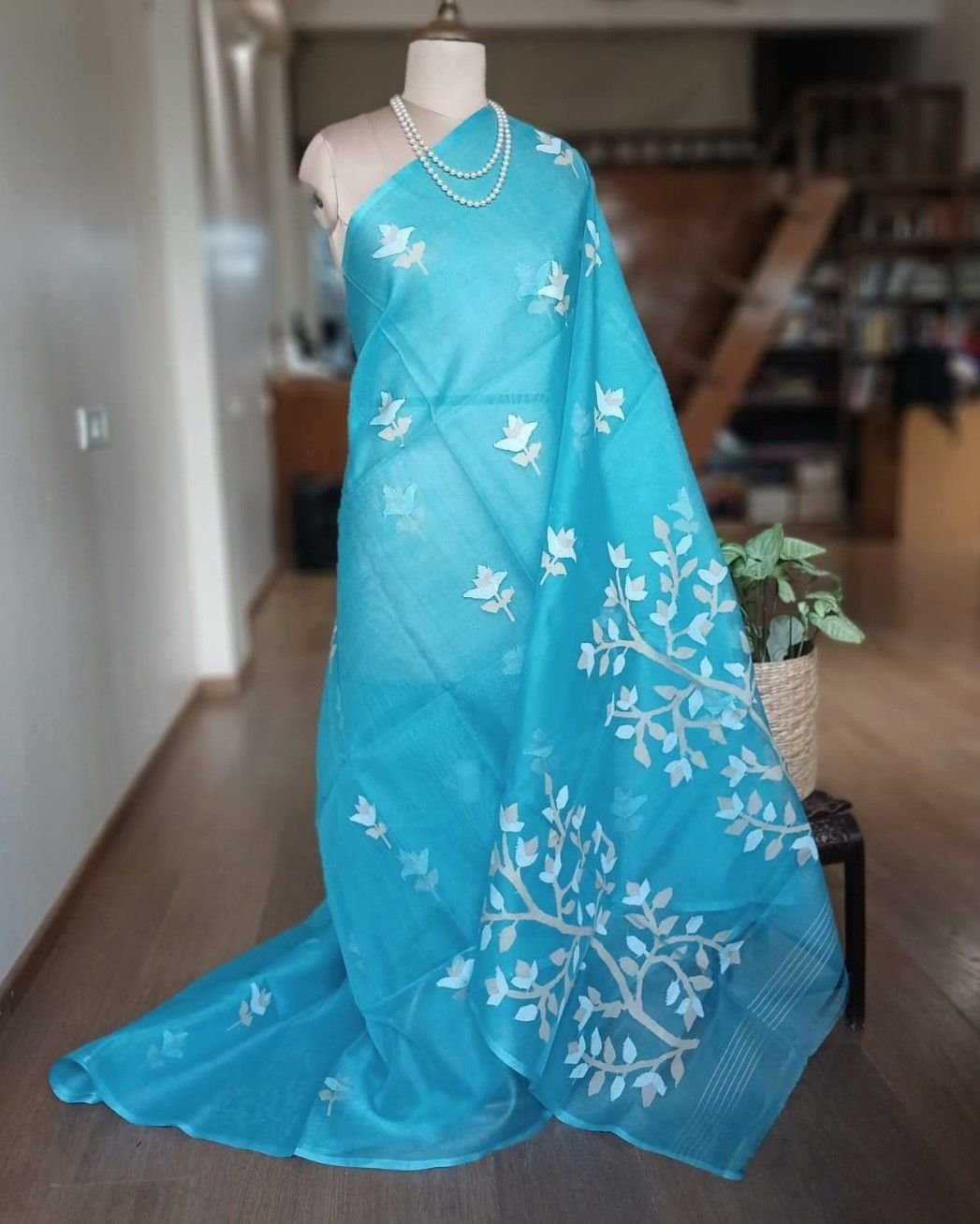 Hand Jamdani Saree from Phulia using the skilled needle jamdani technique