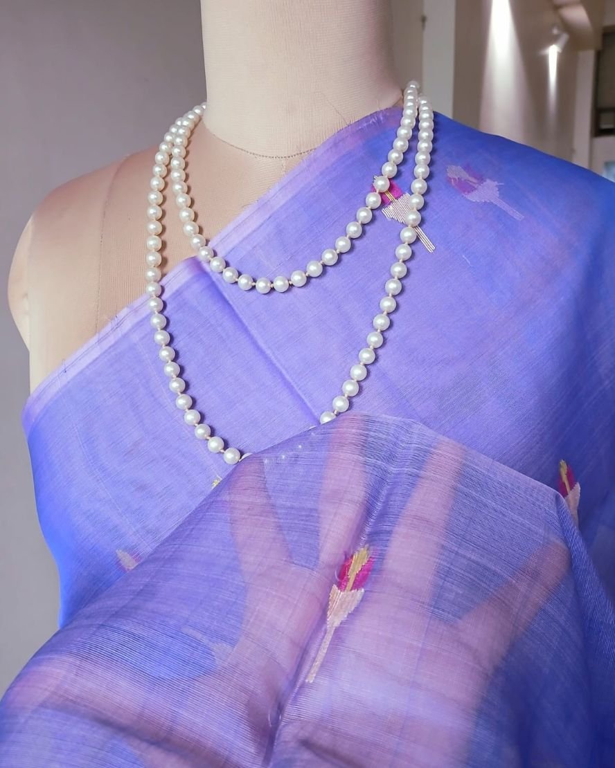 Hand Jamdani Saree from Phulia using the skilled needle jamdani technique