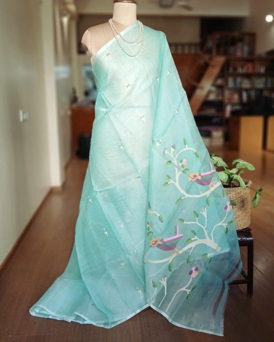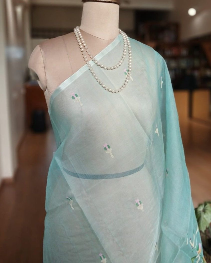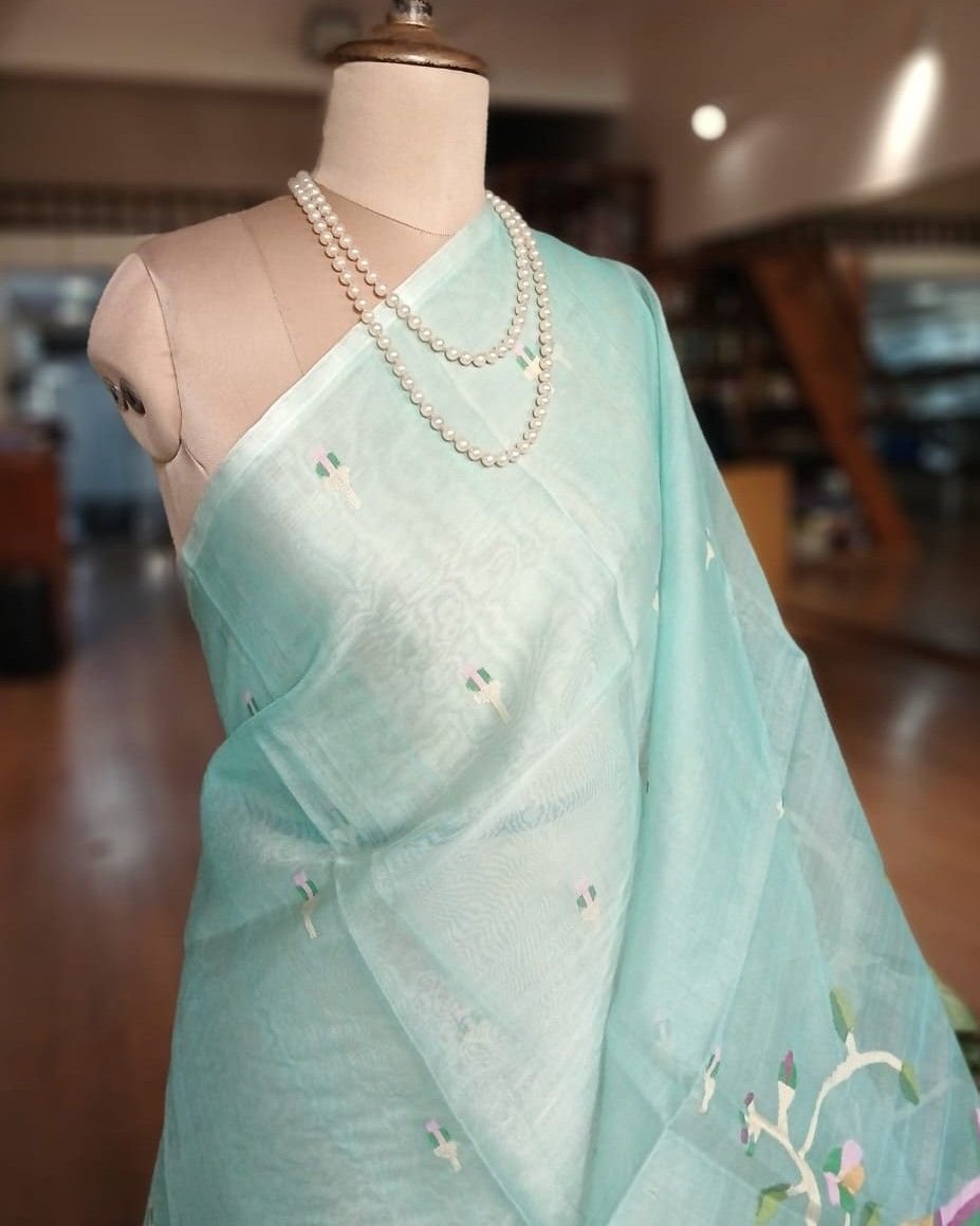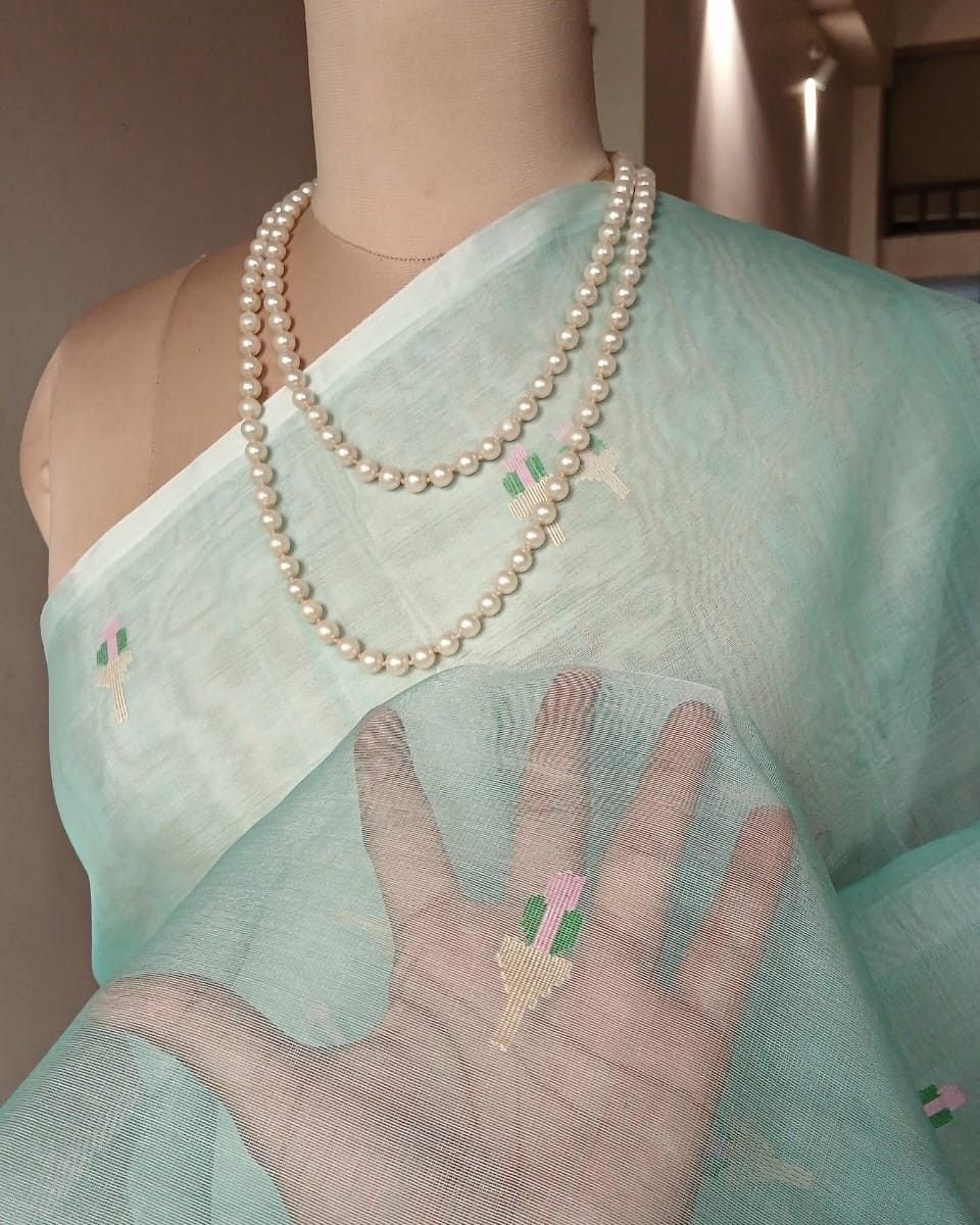 Hand Jamdani Saree from Phulia using the skilled needle jamdani technique