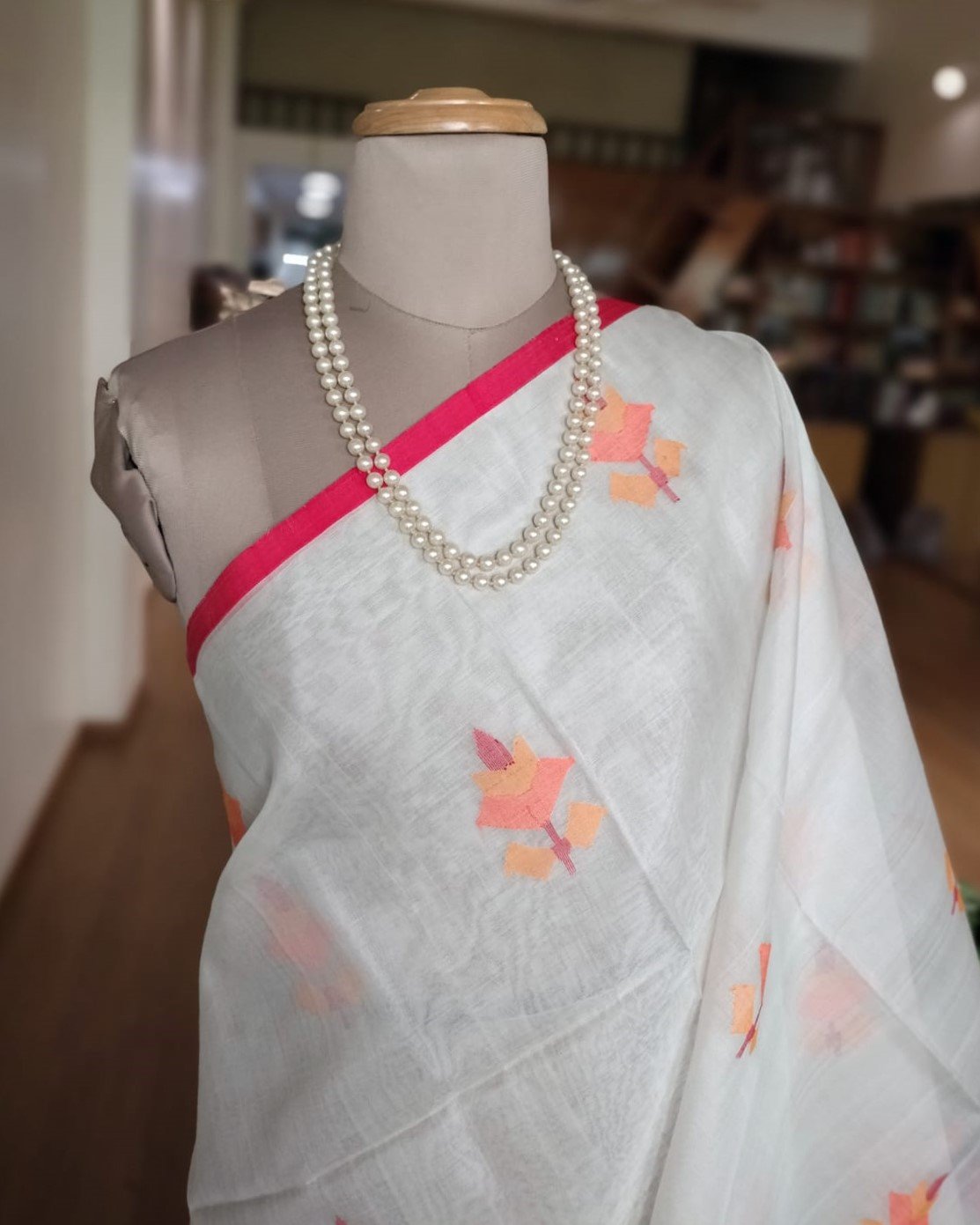 Hand Jamdani Saree from Phulia using the skilled needle jamdani technique
