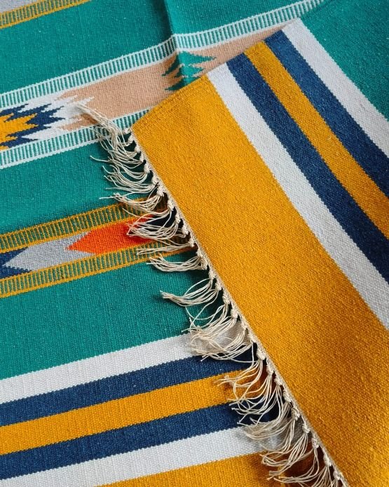 Warangal Flatweave Dhurrie, handwoven in pit loom in interlock technique, with striking geometric designs and colour combinations.