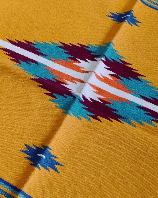 Warangal Flatweave Dhurrie, handwoven in pit loom in interlock technique, with striking geometric designs and colour combinations.