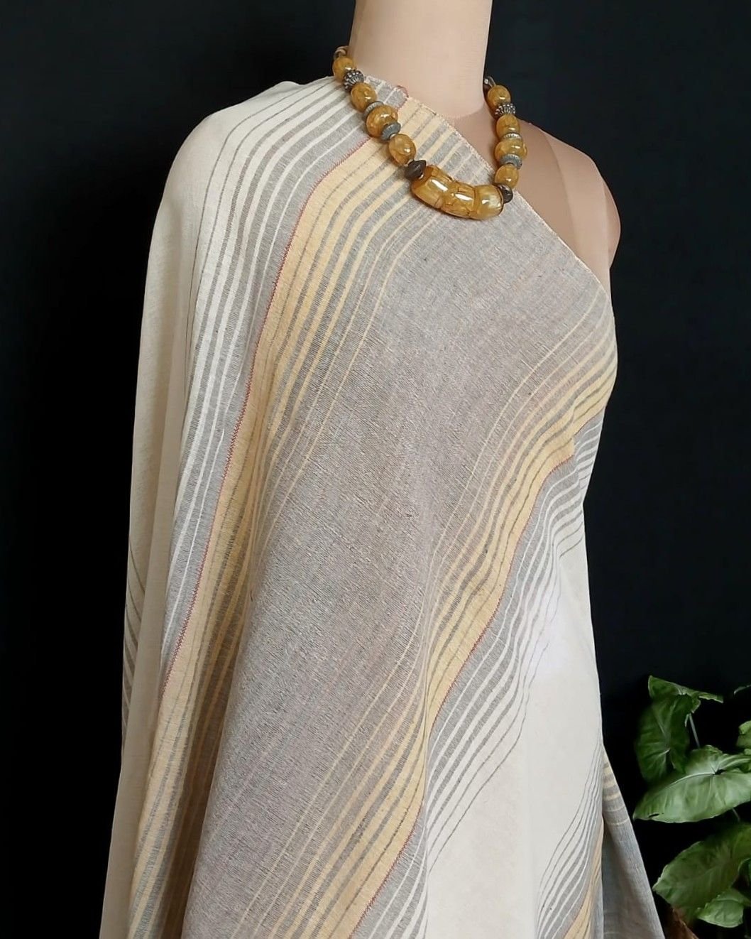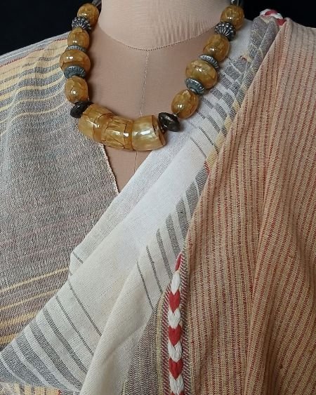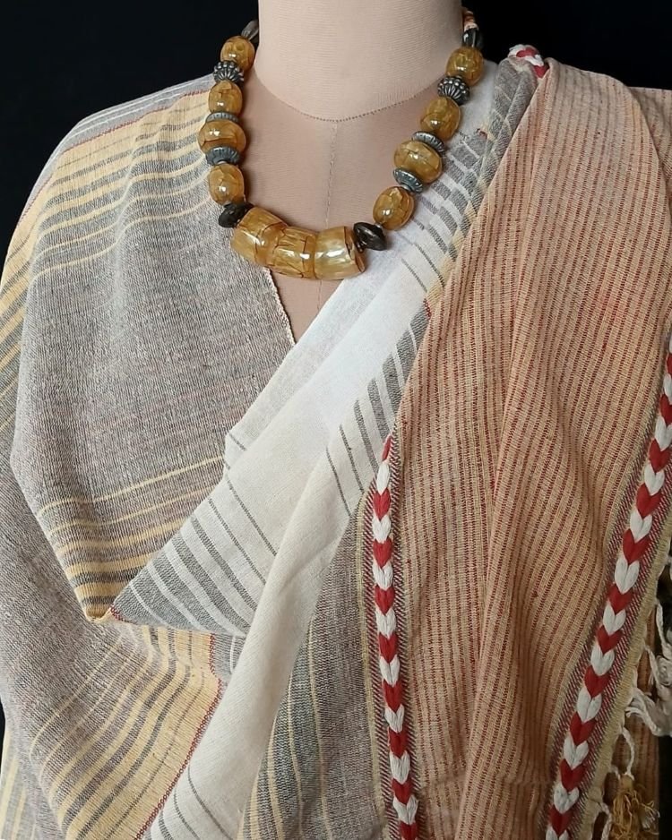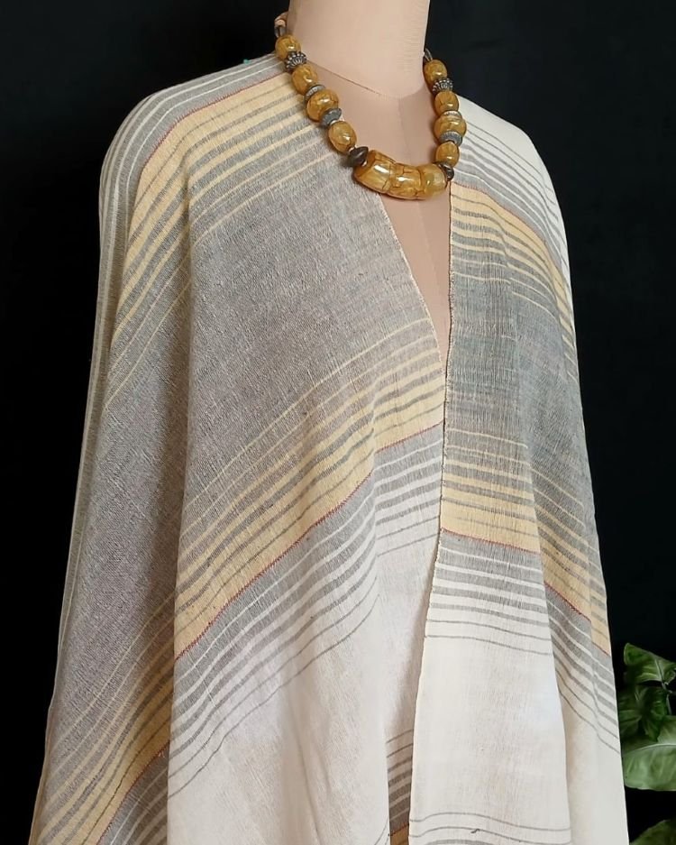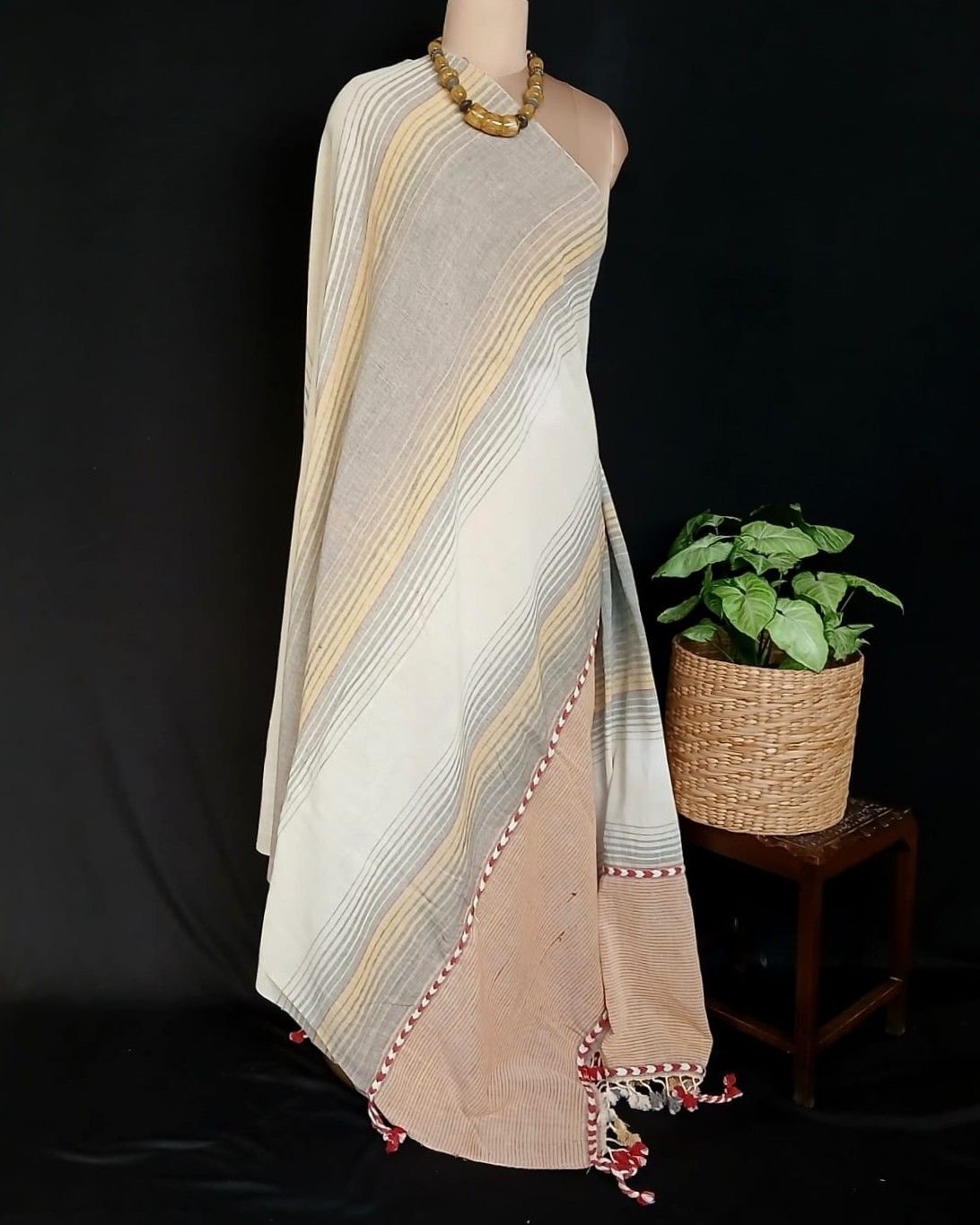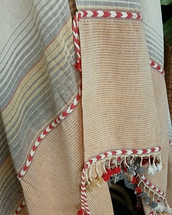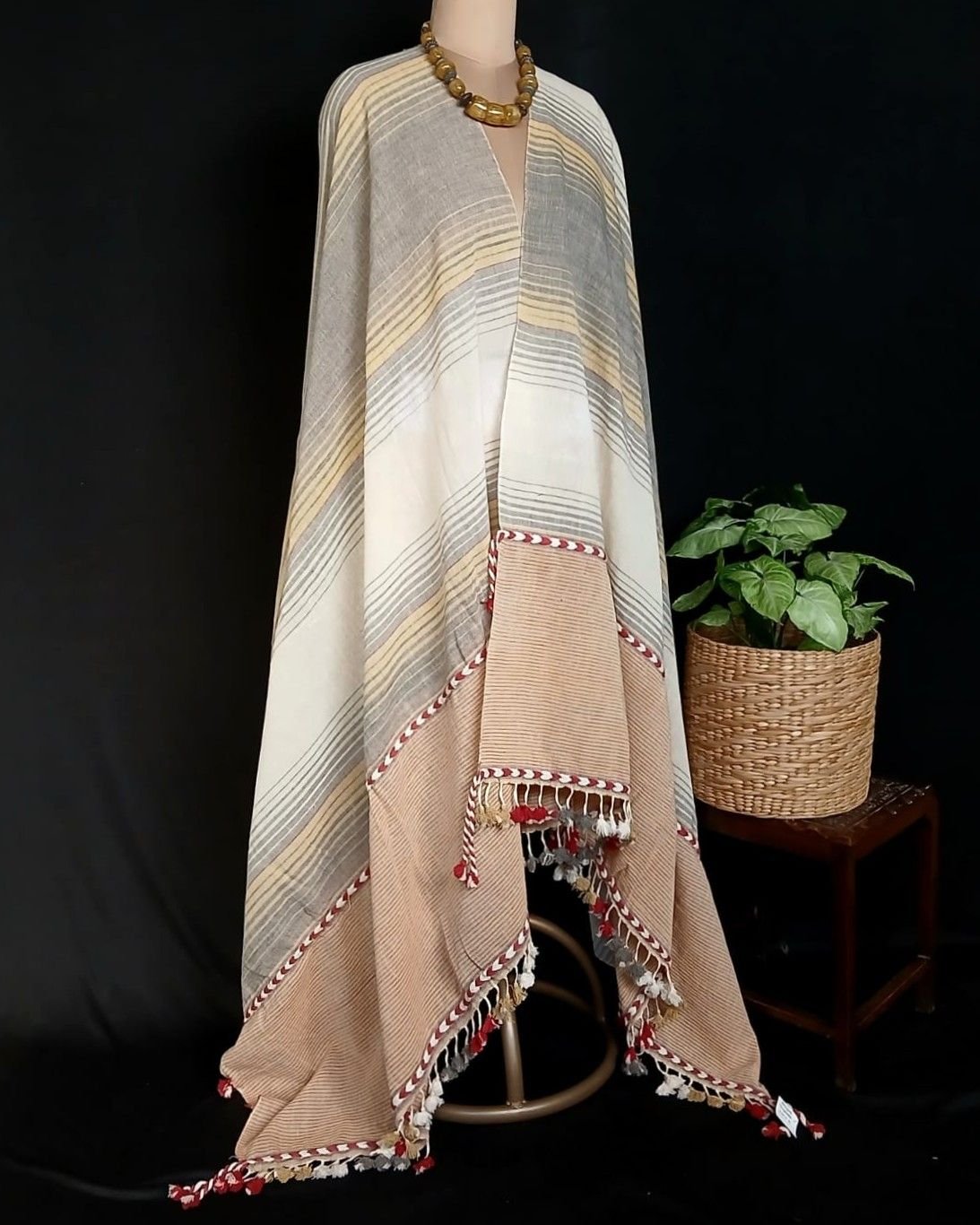 Handwoven Dupatta in Kala Cotton from Bhujodi, finished with tassels. See more details below