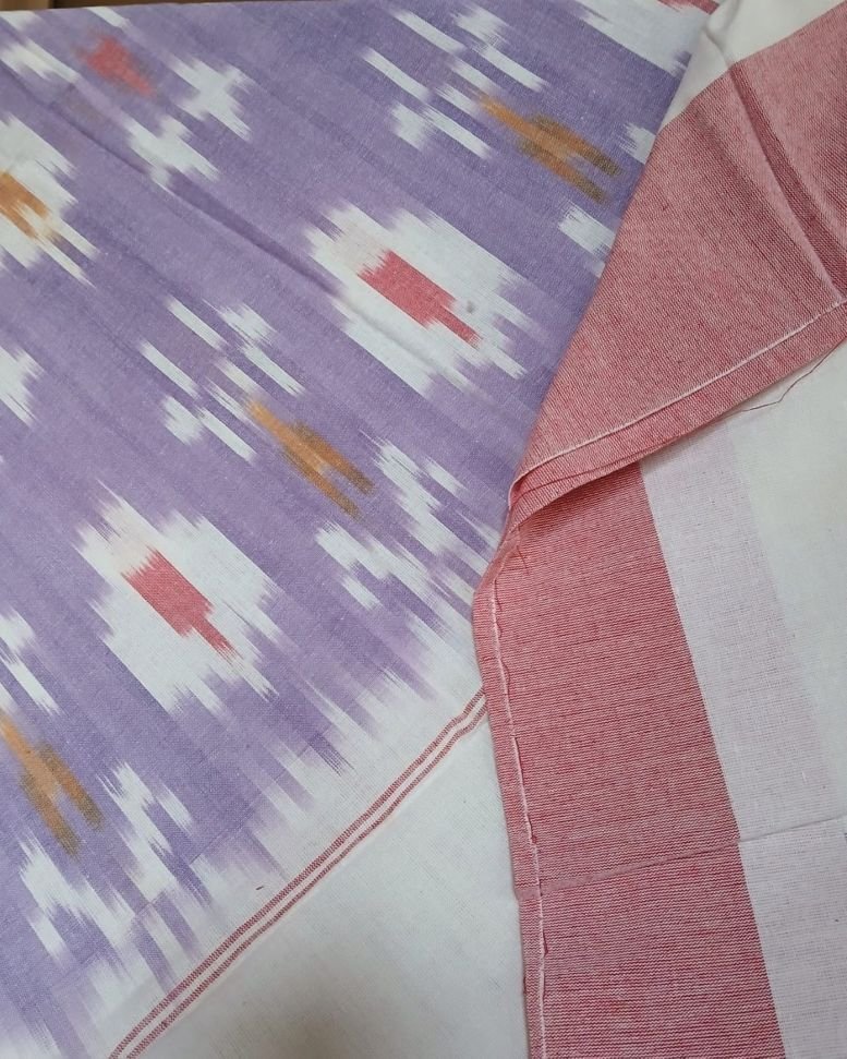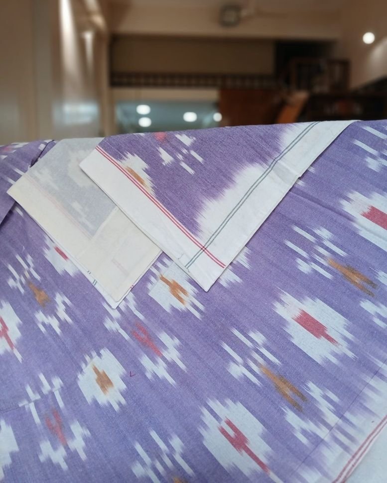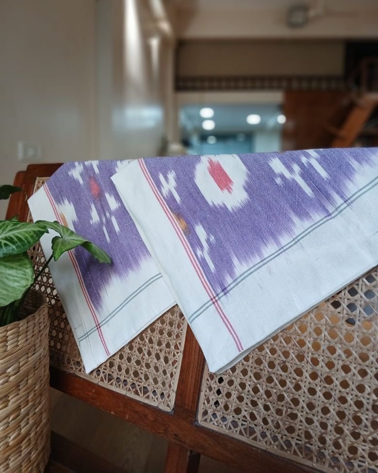 Hand tied and dyed Ikat cotton yarns woven on handloom. It’s a sturdy comfortable sheet. Can be machine washed.