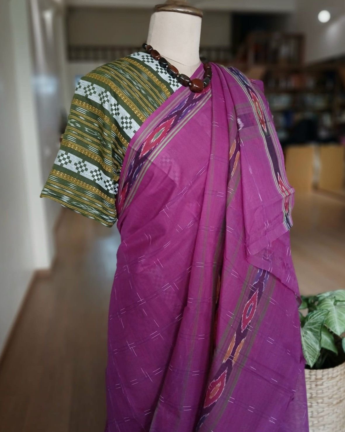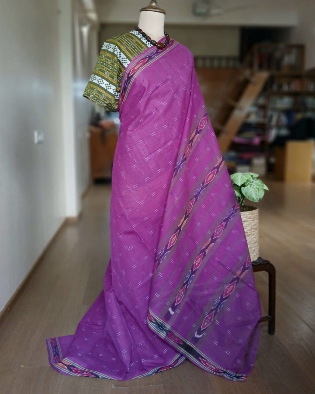 We have provided a contrast Odisha ikat cotton blousepiece to go with it.