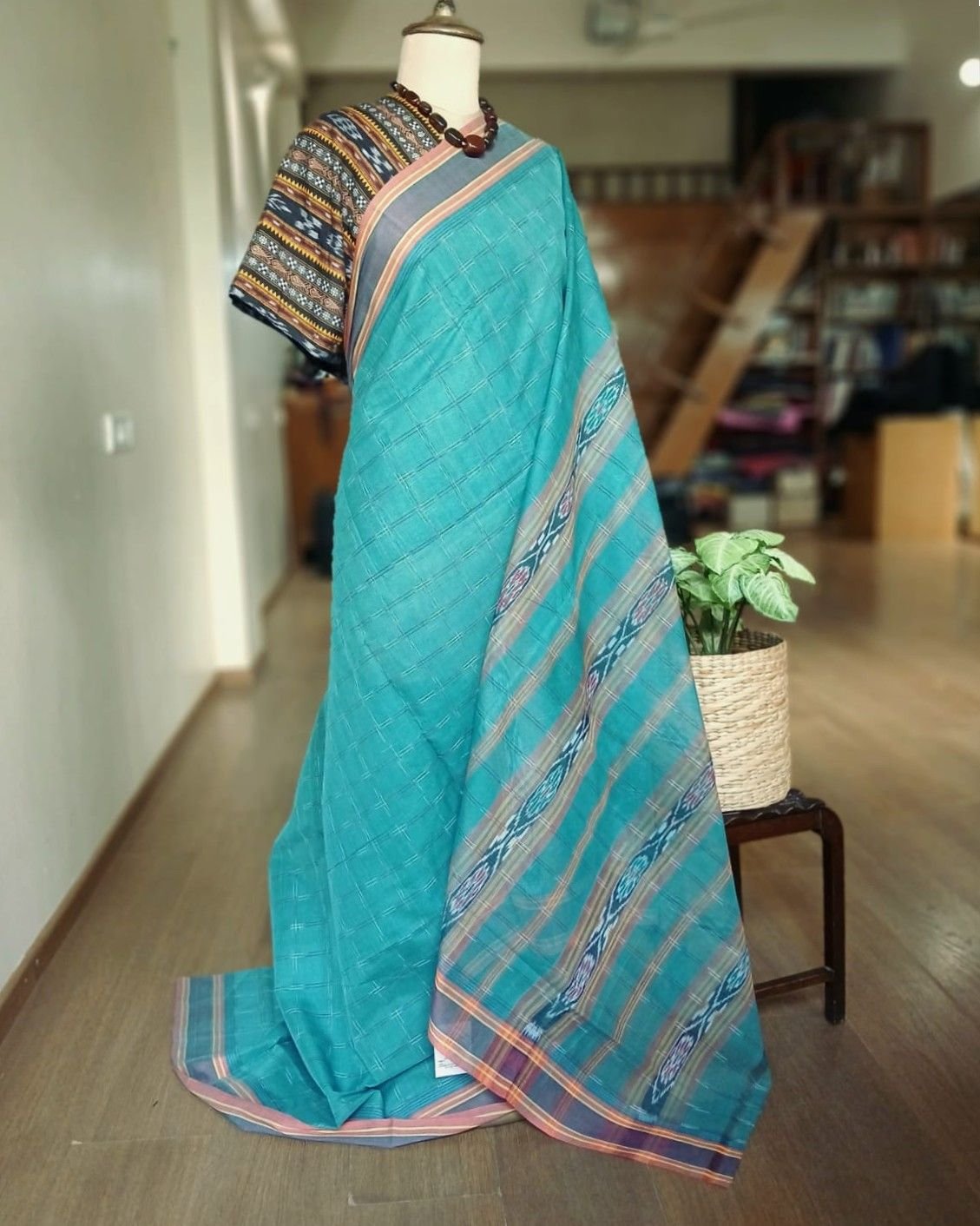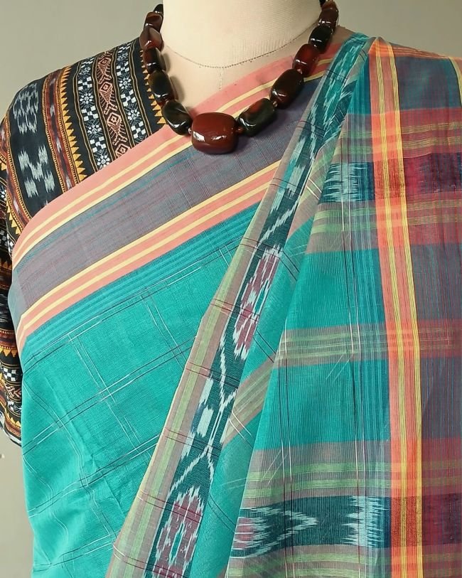 Manamedu Cotton Saree with Odisha Ikat Blousepiece – (ICMS0008)