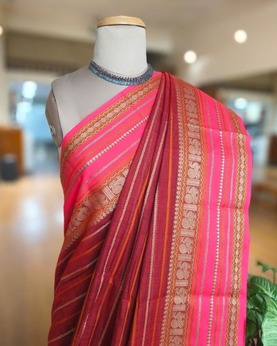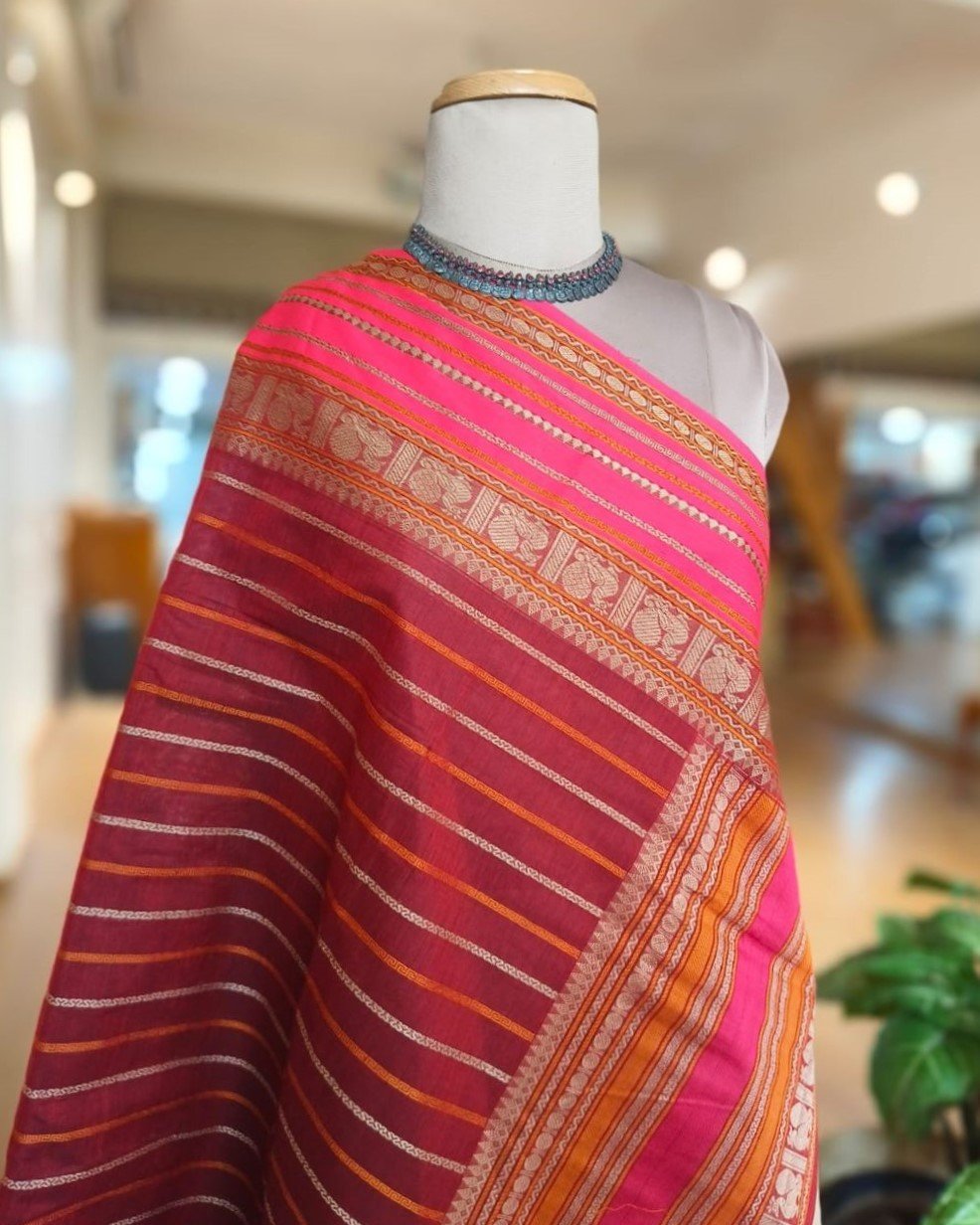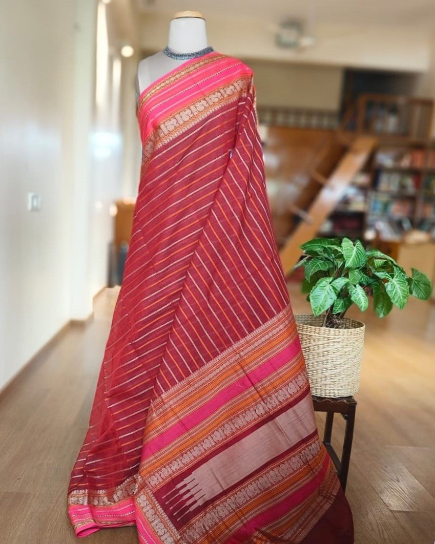 Kanchi Cotton Stripe Design – Maroon