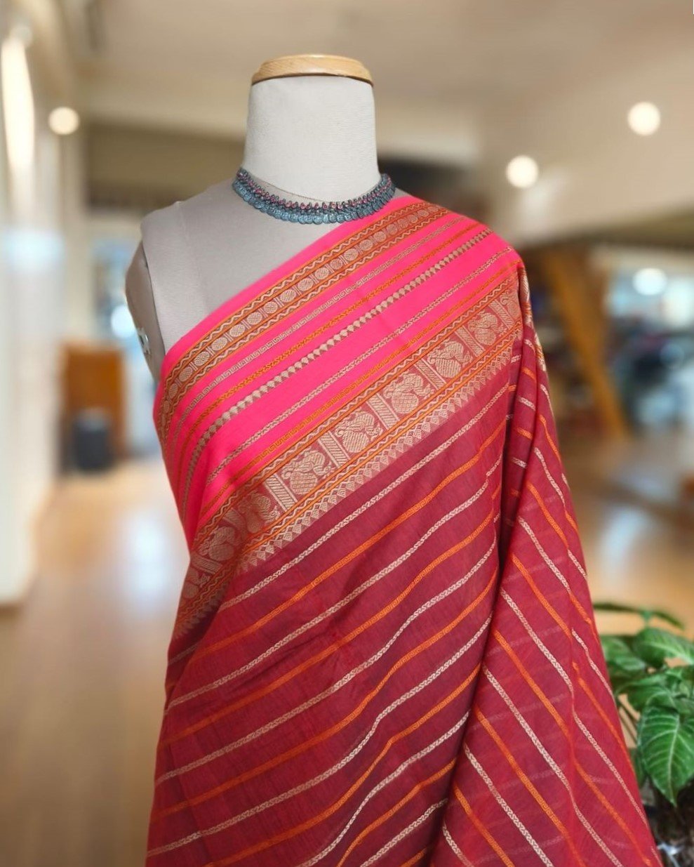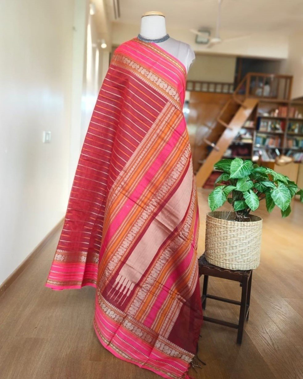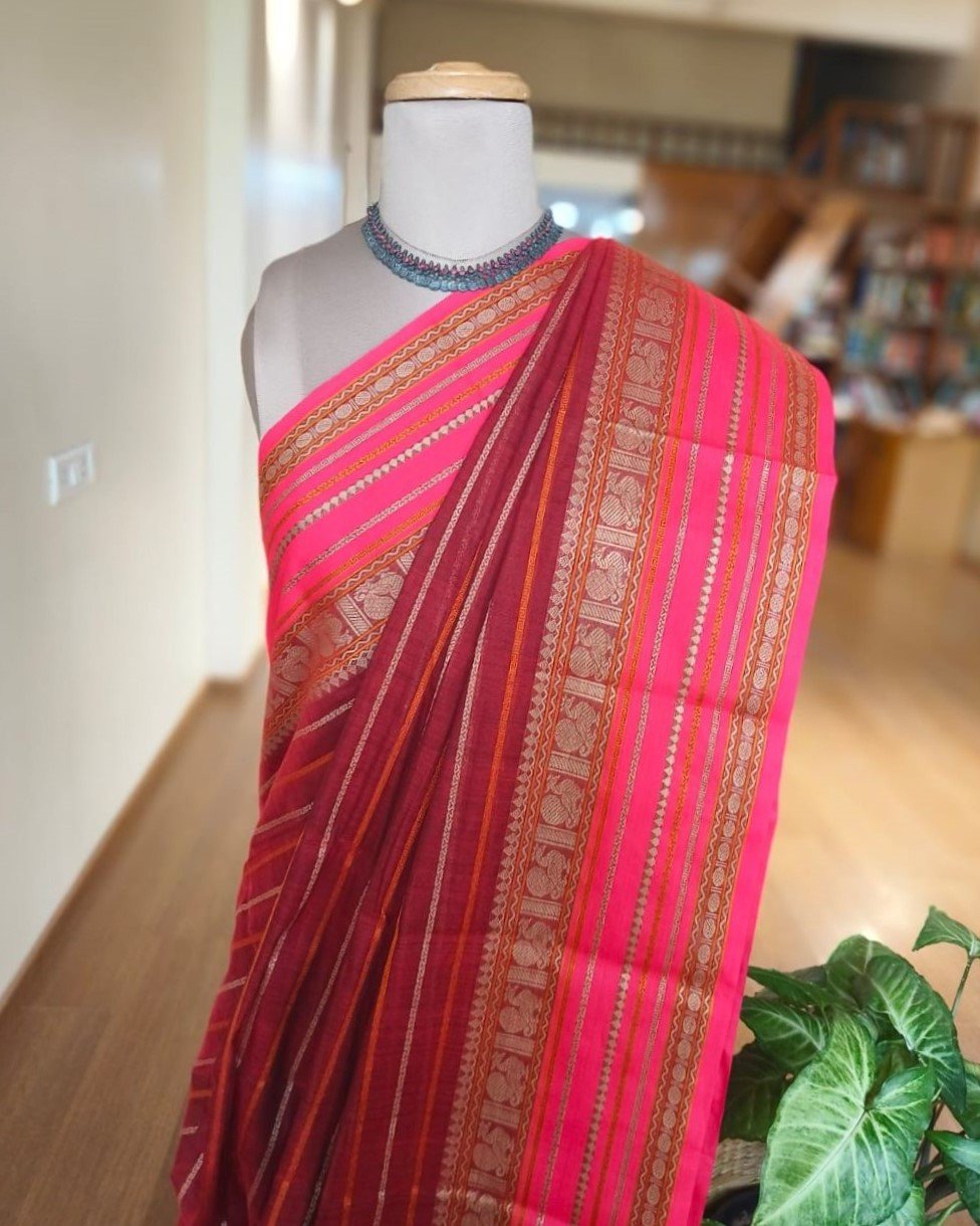 Kanchi Cotton Stripe Design – Maroon