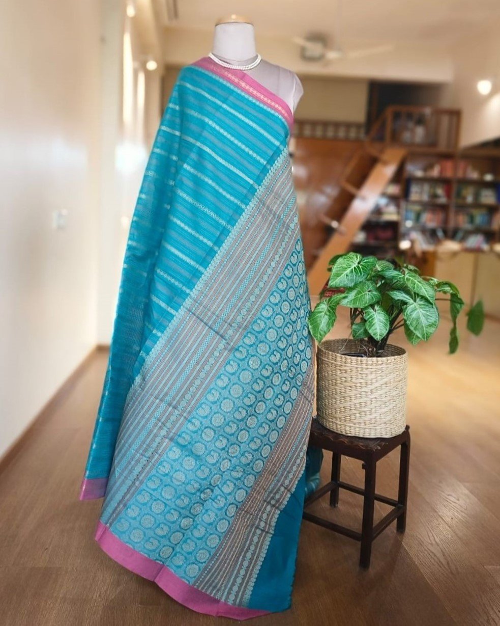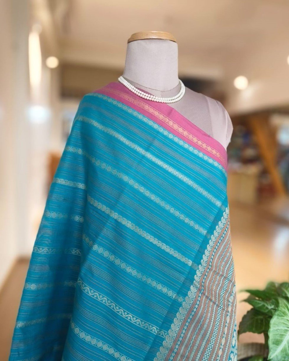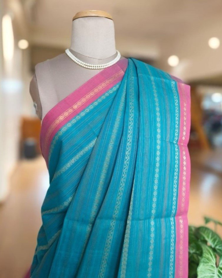 Kanchi Cotton Stripe Design – Sky Blue