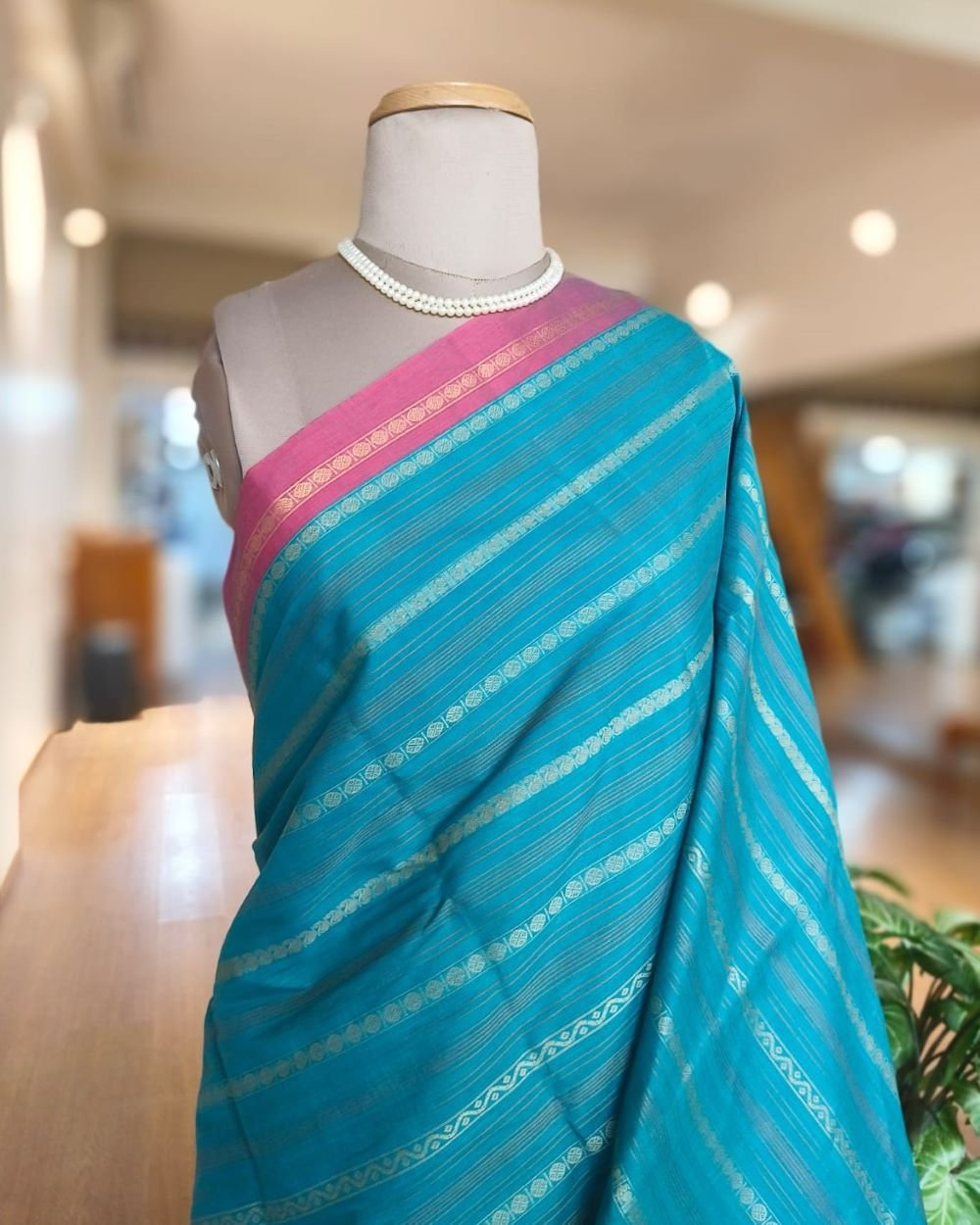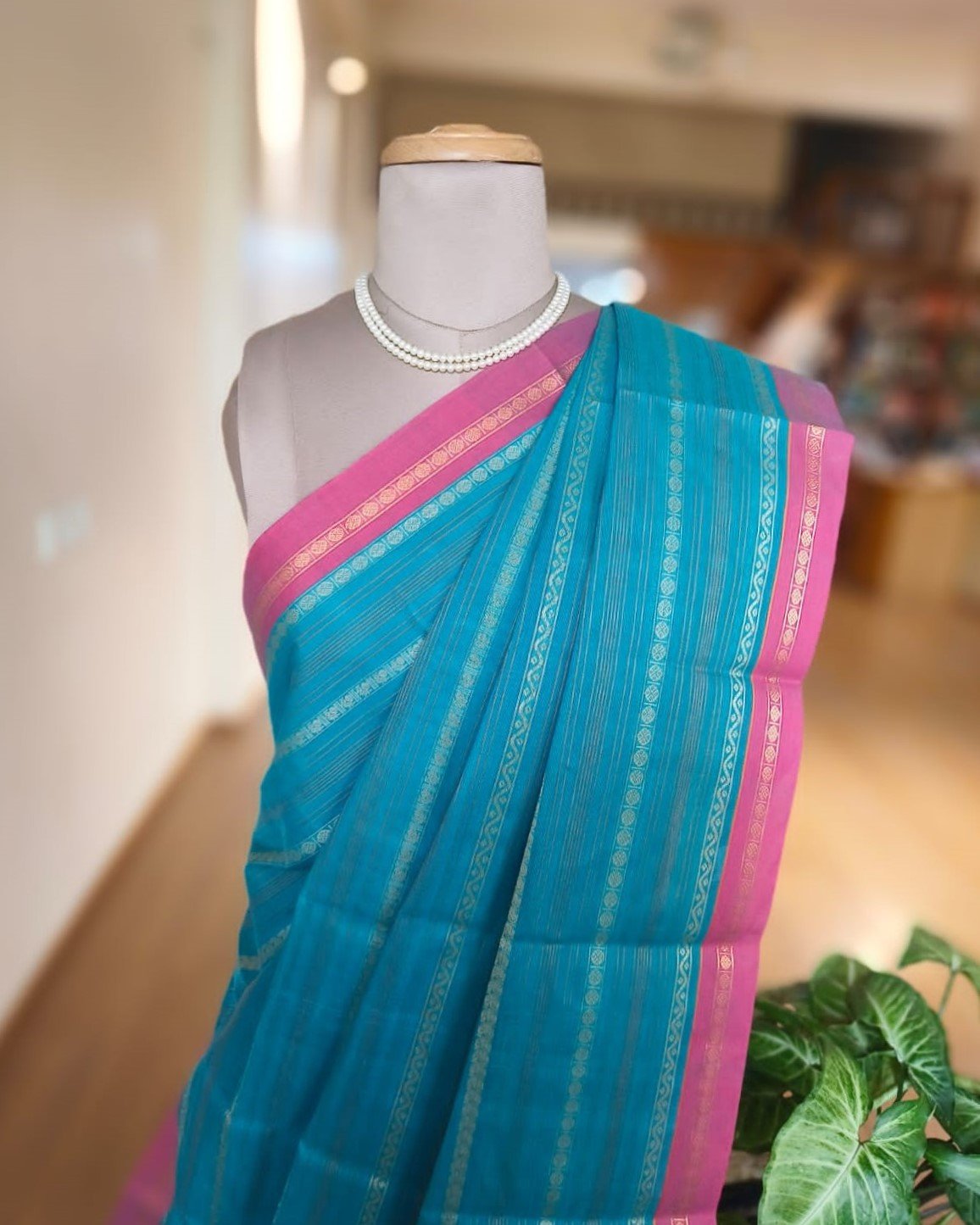 Kanchipuram handweave in cotton with striped body and beautiful palla. More details below.