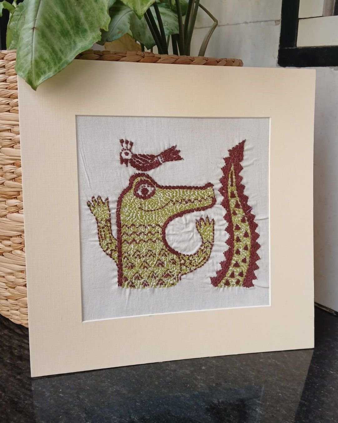 Kantha Embroidered Artwork Crocodile – (ARTW1028)
