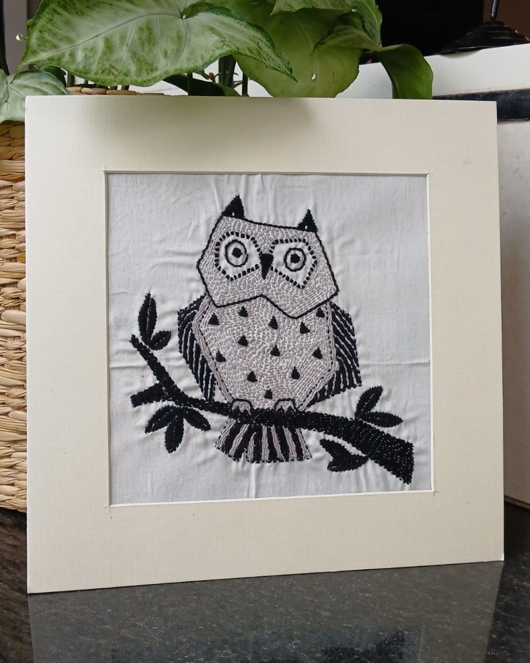 Kantha Embroidered Artwork Owl – (ARTW1025)