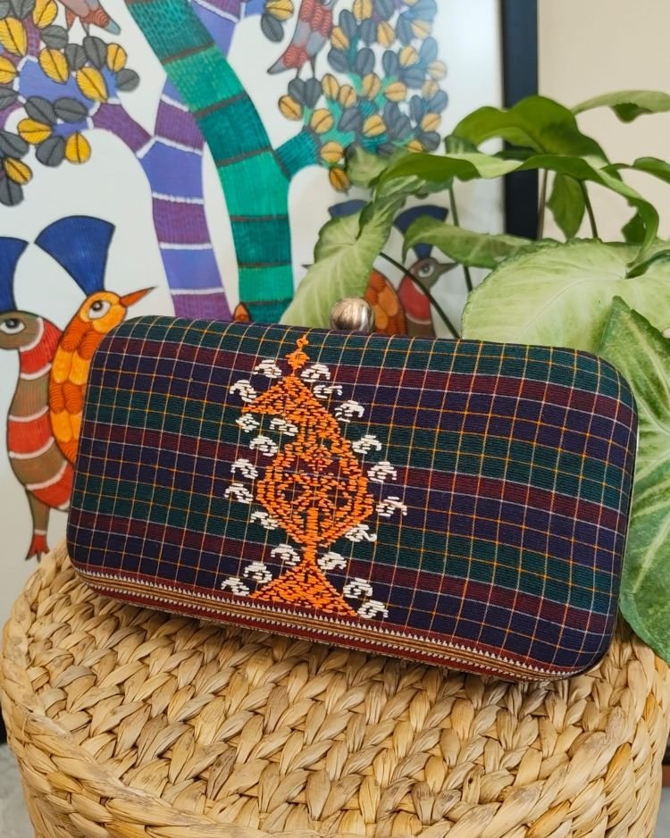 Kasuti Embroidered clutch purse for weddings and other occasions. Chain handle and clasp are metal with antique finish.