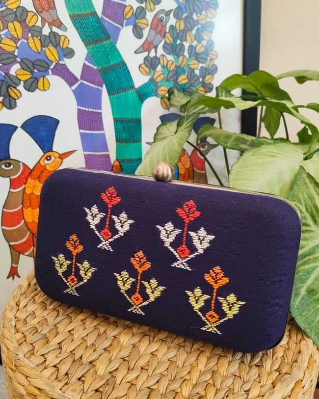 Kasuti Embroidered clutch purse from Dharwad in Karnataka