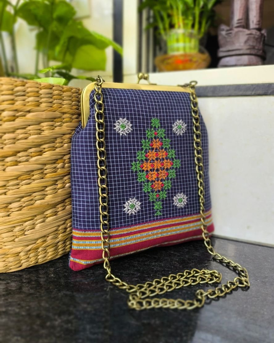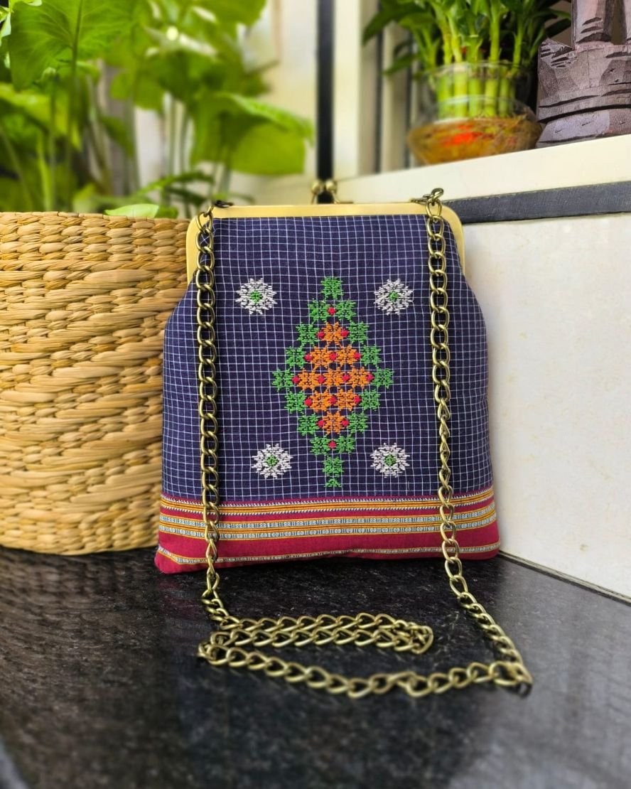 Kasuti Embroidered purse in cotton with hand embroidery done by women of Dharwad.