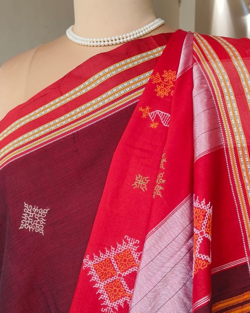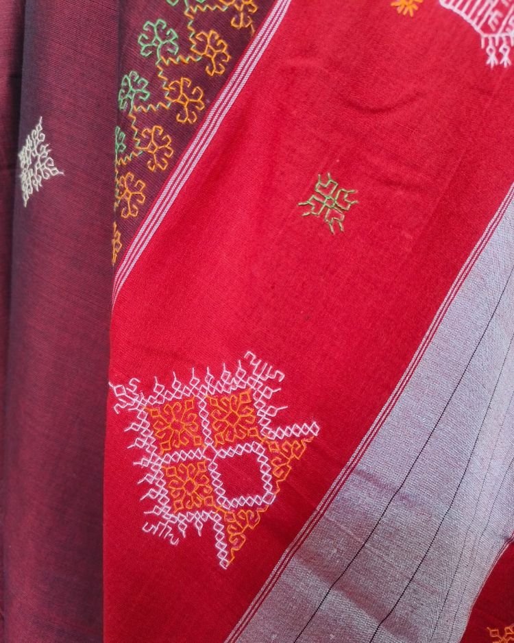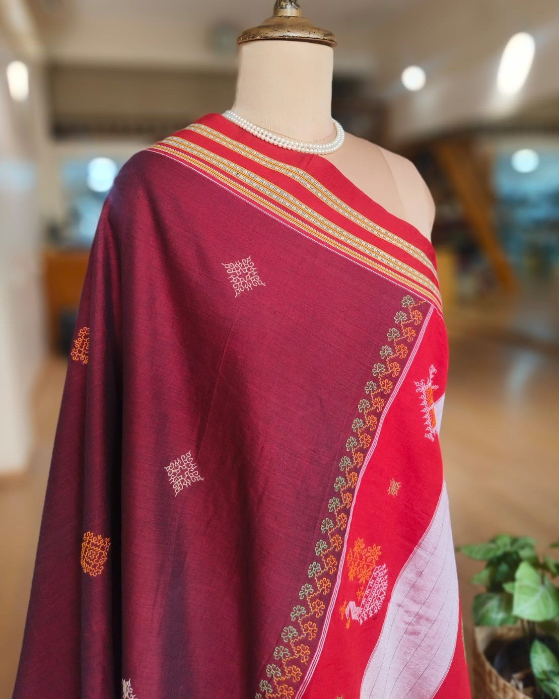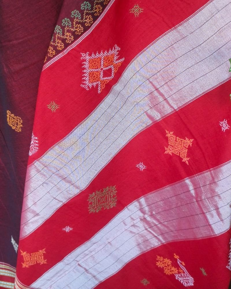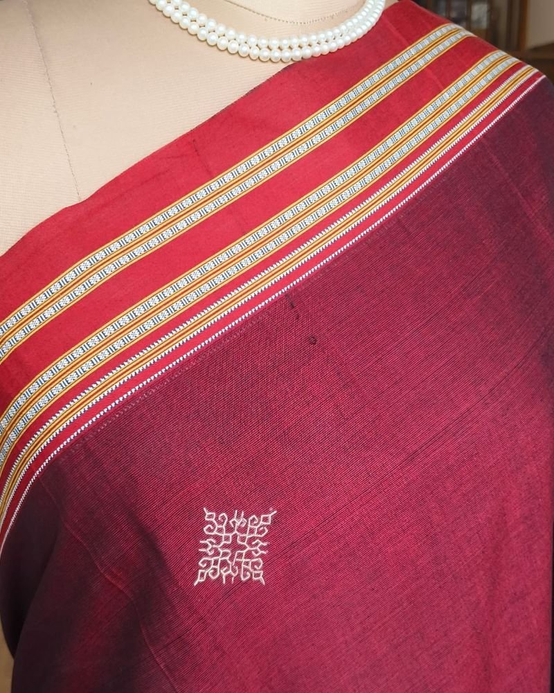 From Betagiri, the saree went to Dharwad to be hand embroidered by talented women.