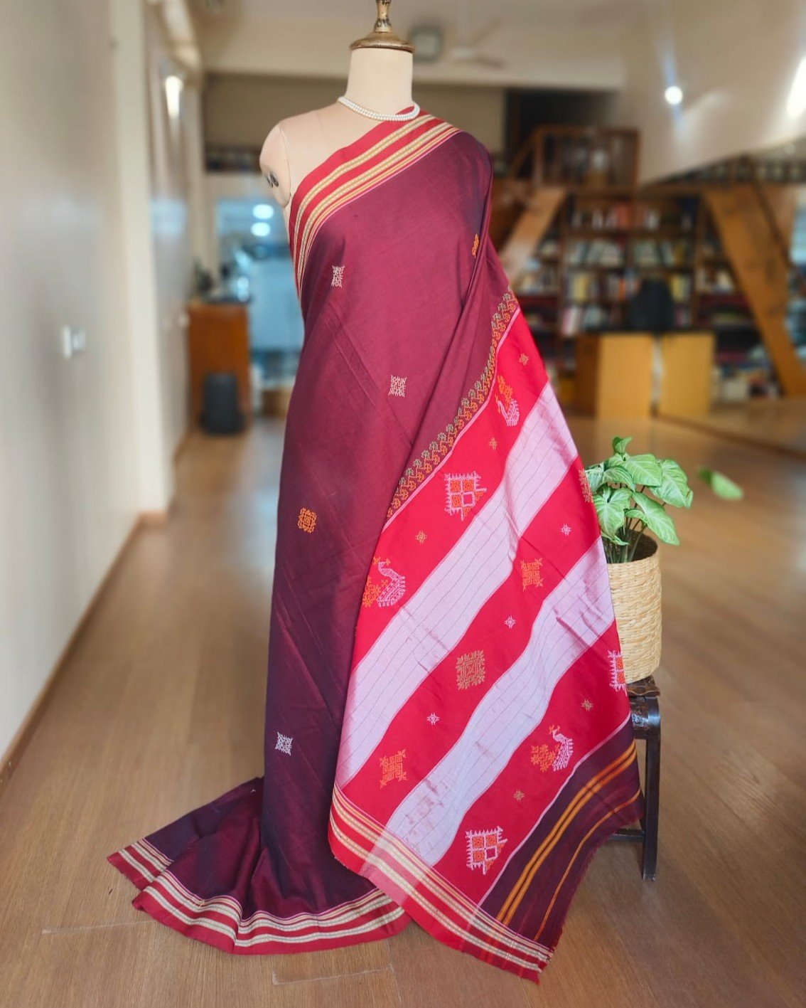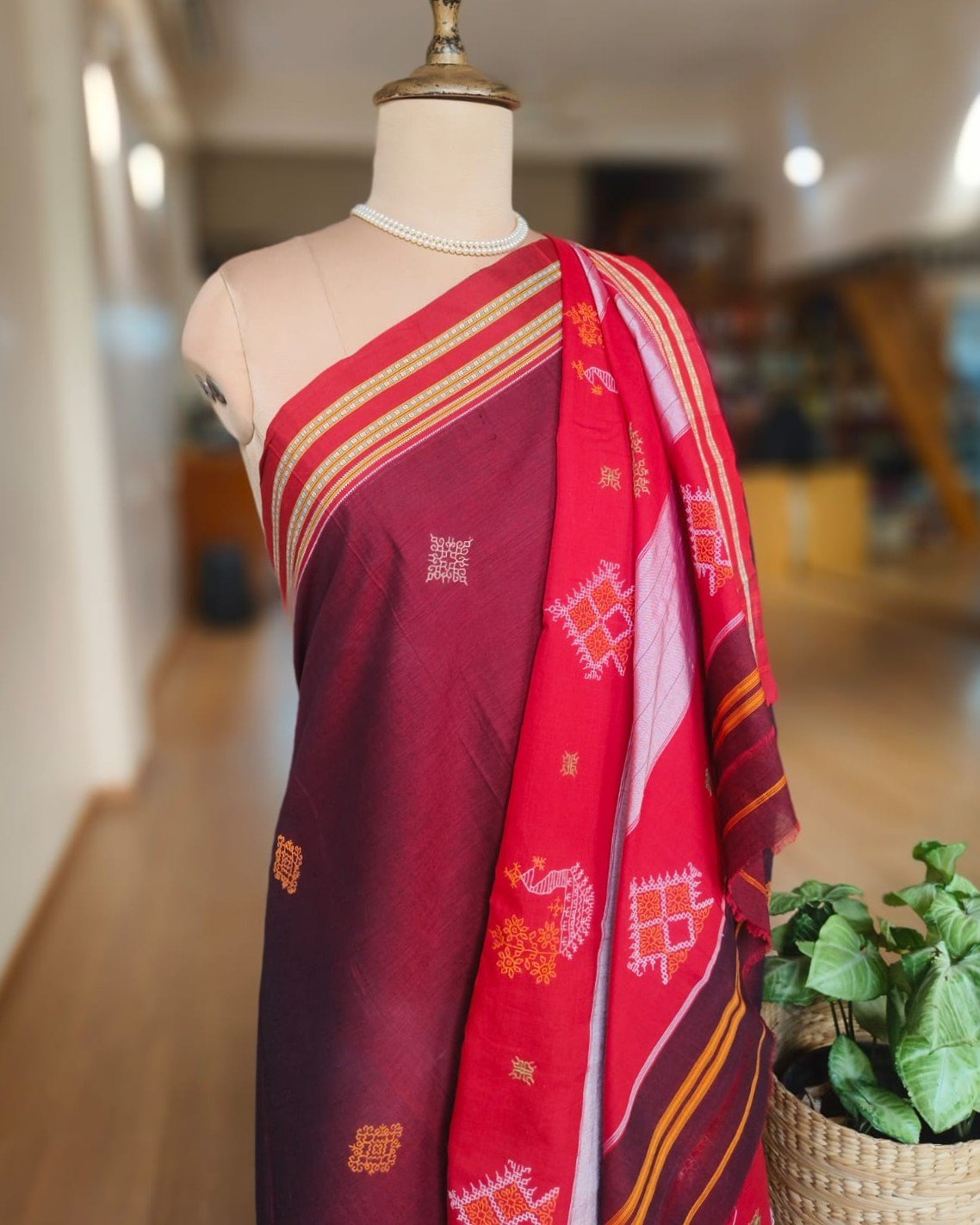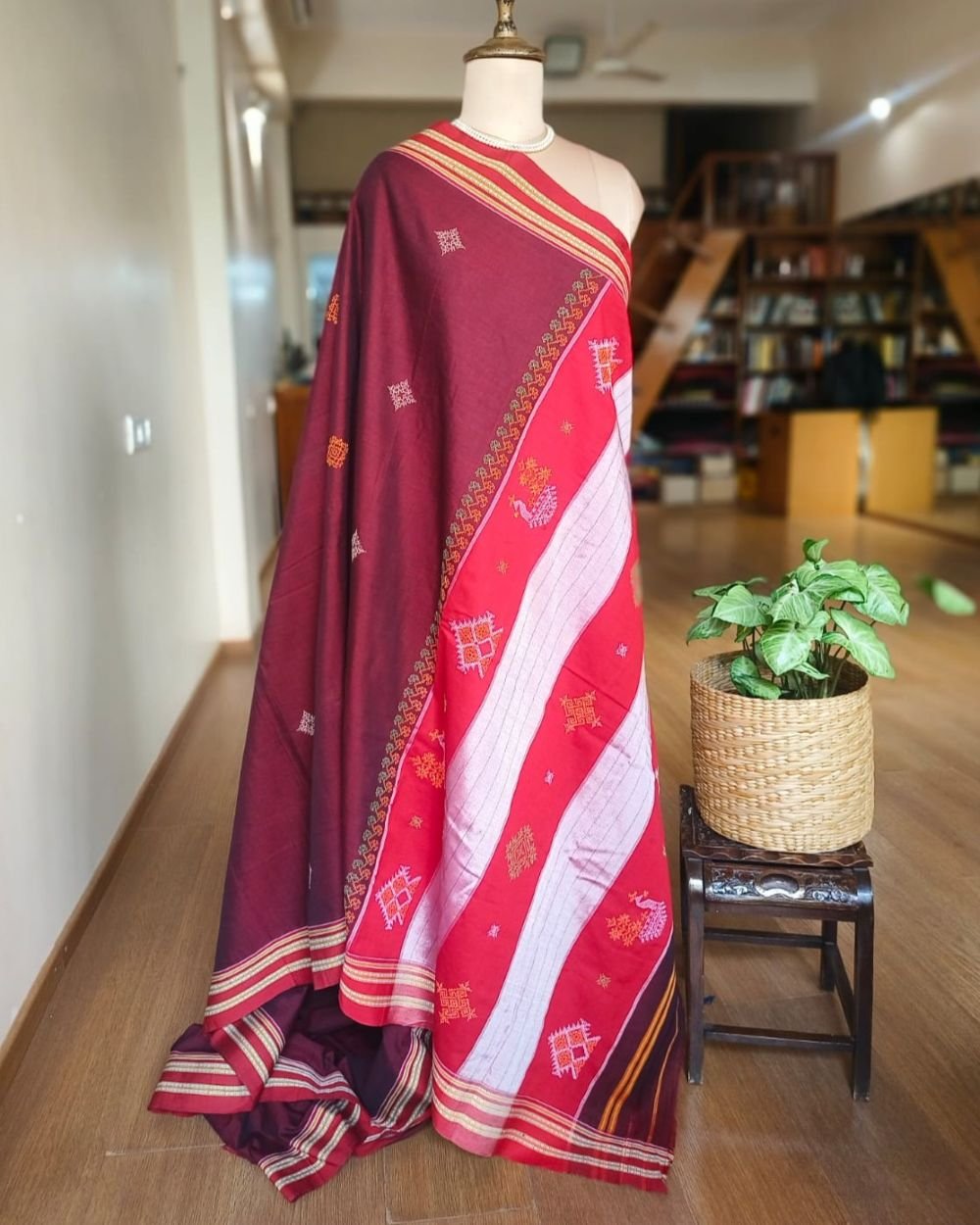 From Betagiri, the saree went to Dharwad to be hand embroidered by talented women.