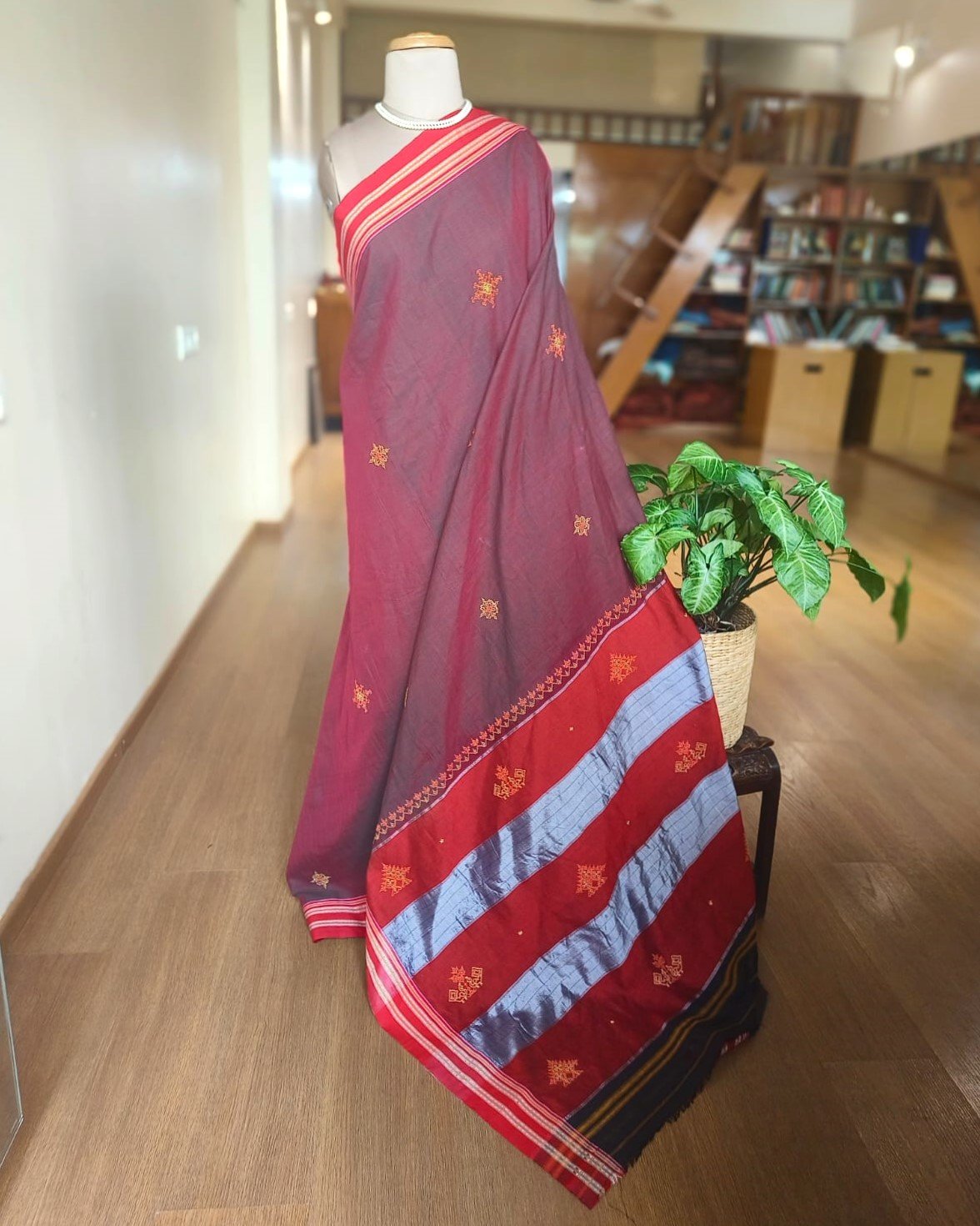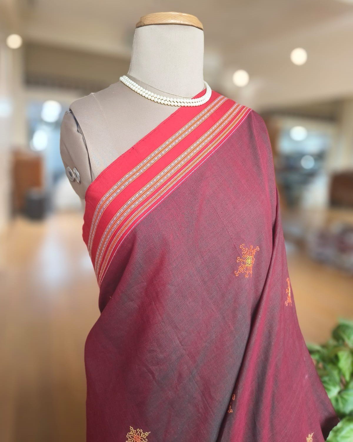 Kasuti embroidered saree in a beautiful two-tone colour.