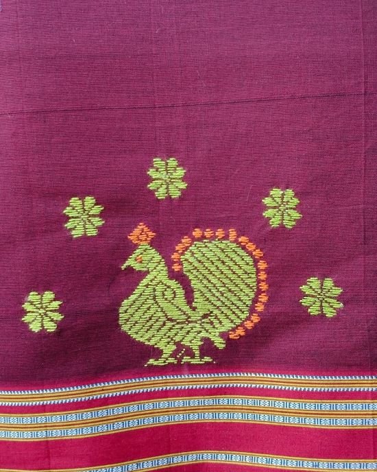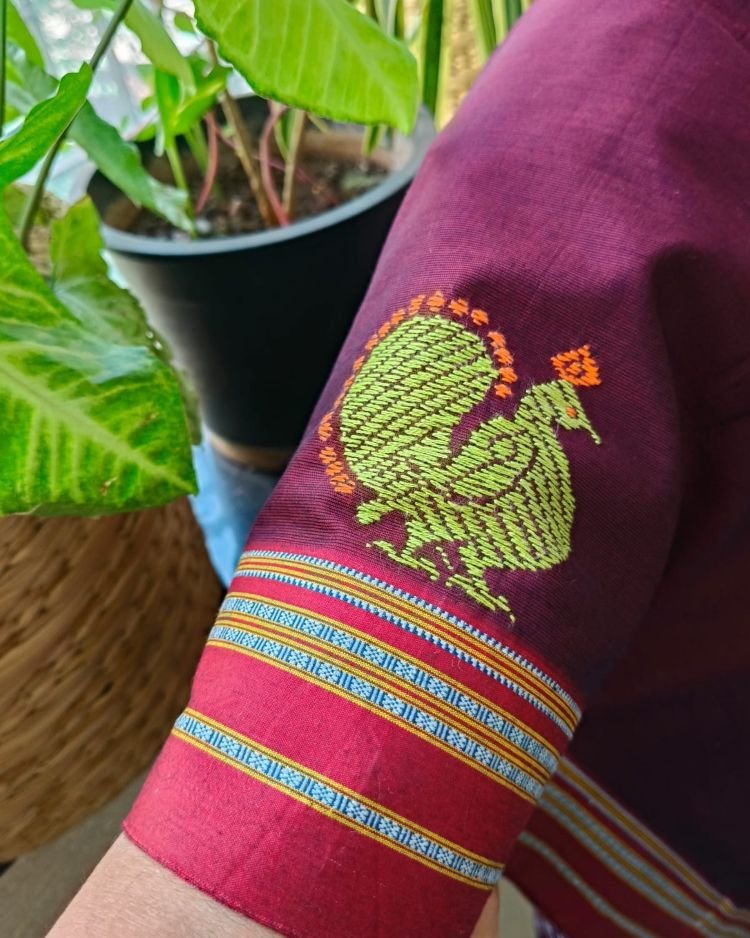 Beautiful blouse piece in Betagiri cotton with intricate Kasuti hand-embroidery done by women in Dharwad.