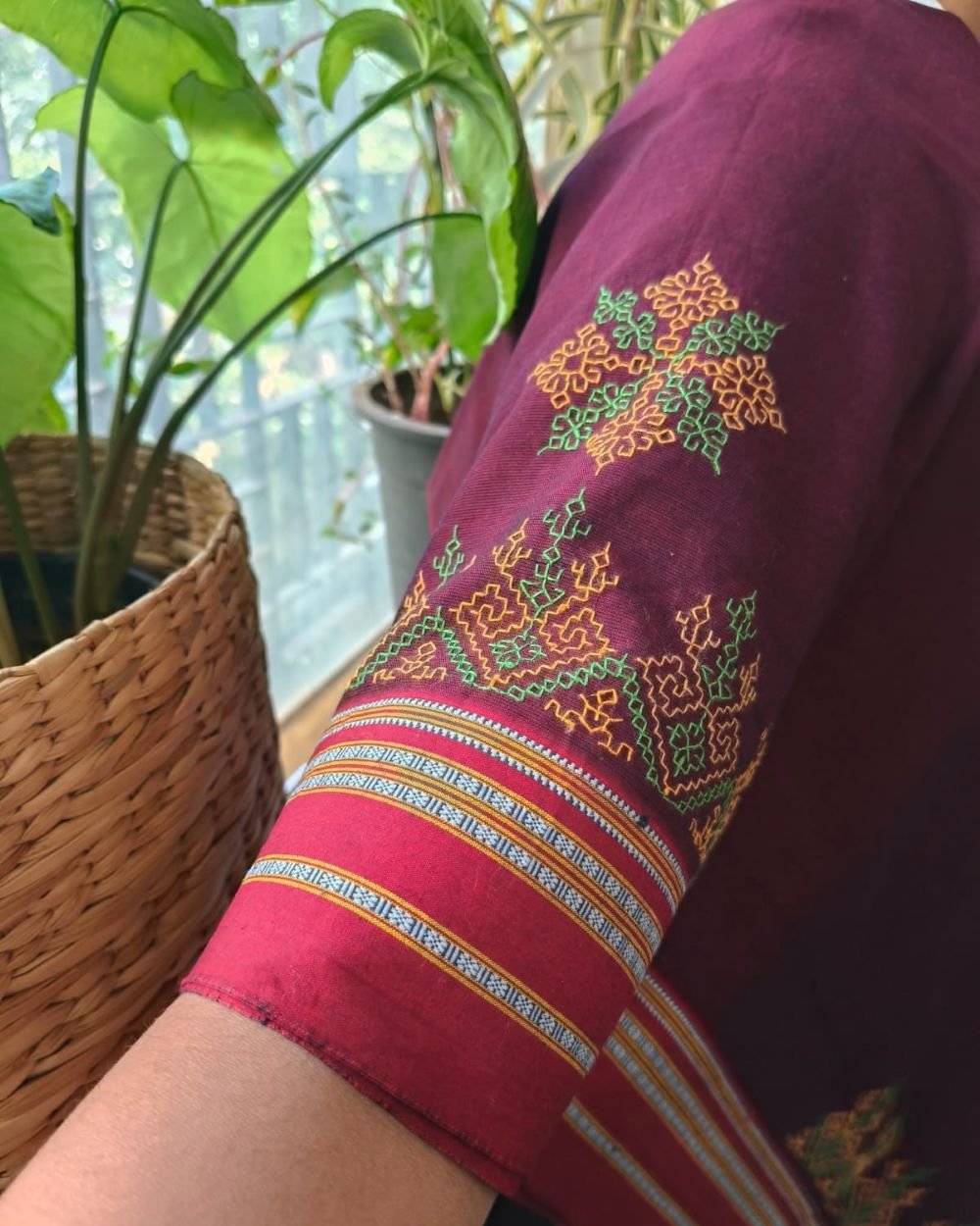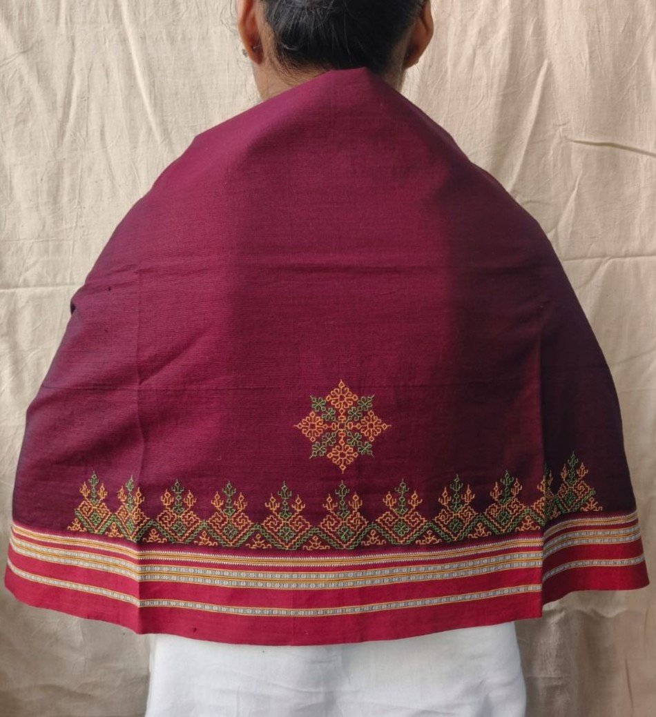Beautiful blouse piece in Betagiri cotton with intricate Kasuti hand-embroidery done by women in Dharwad.