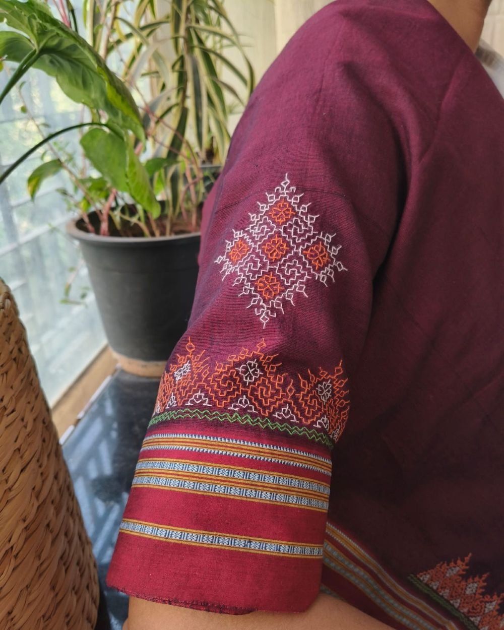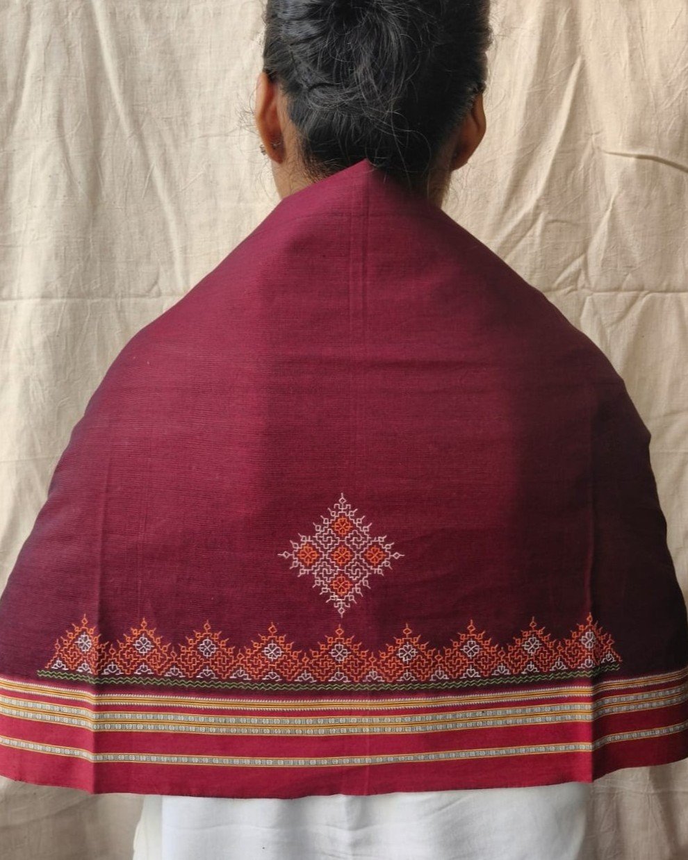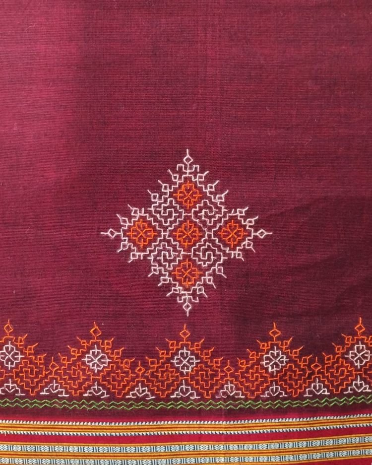 Beautiful blouse piece in Betagiri cotton with intricate Kasuti hand-embroidery done by women in Dharwad.