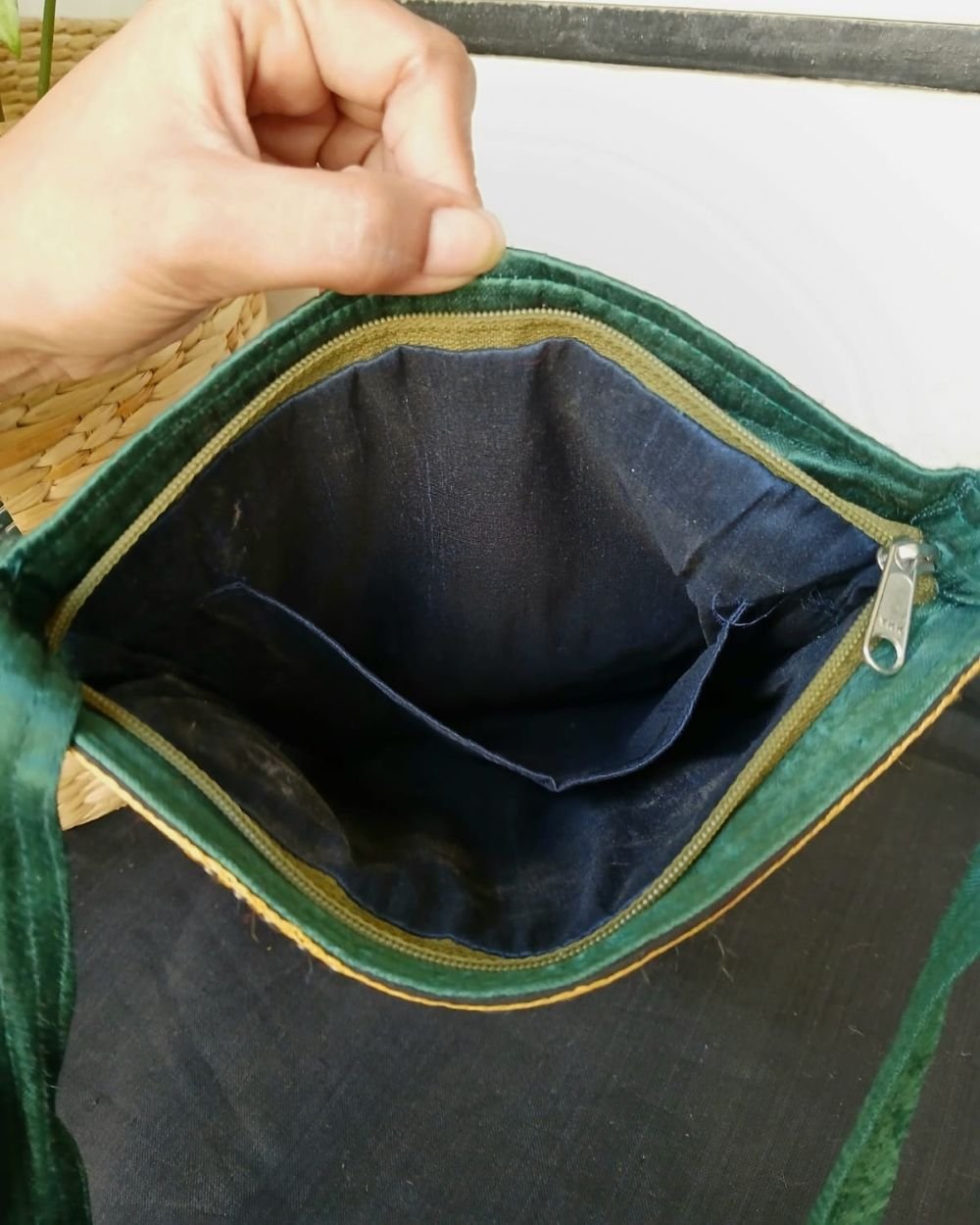Katri Mashru Sling Bag Sling Bag with Katri embroidery and zip closure on top. See more details below