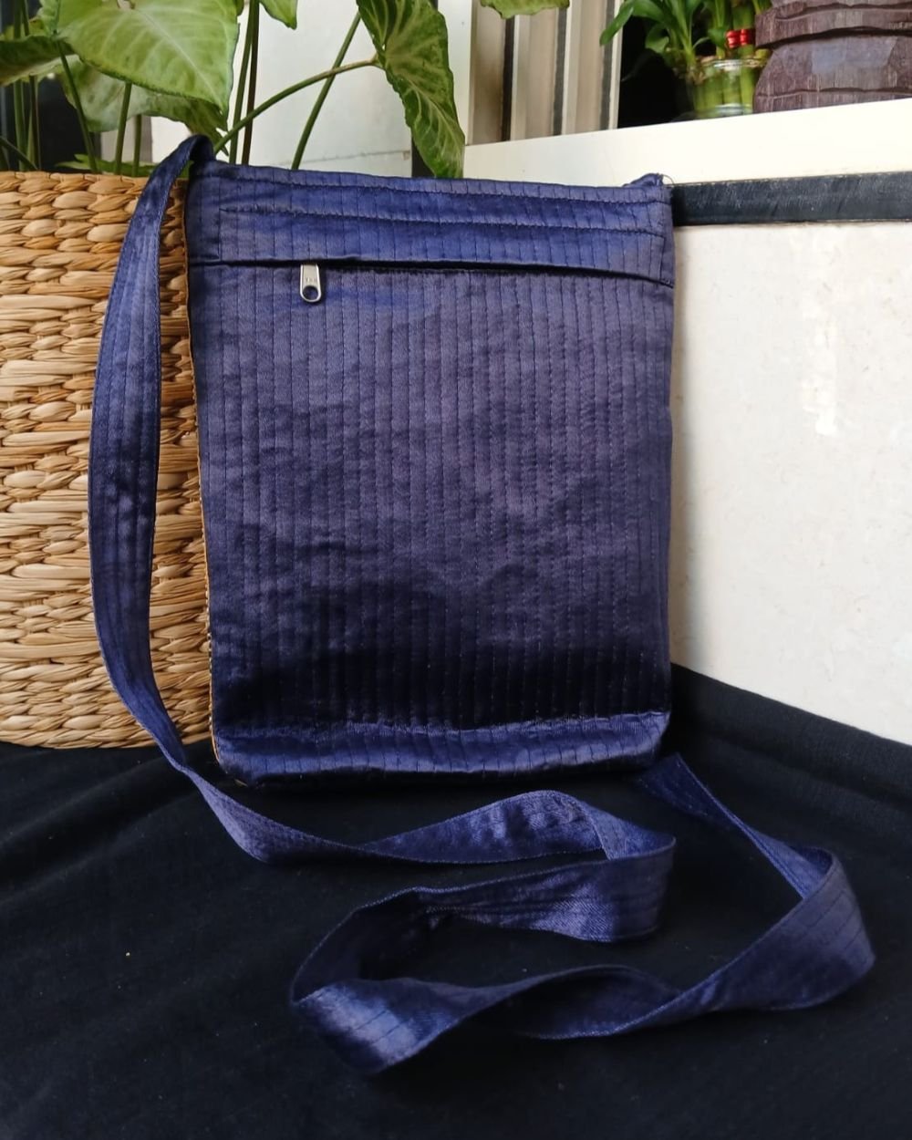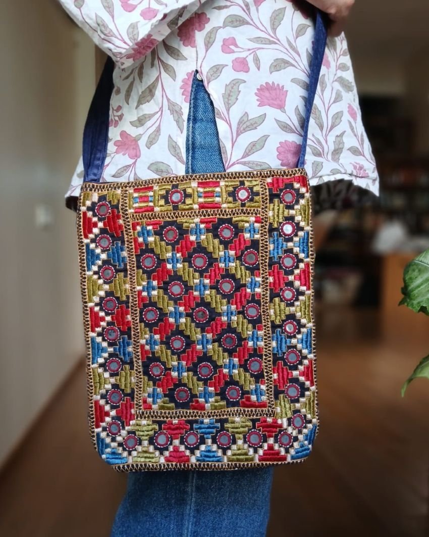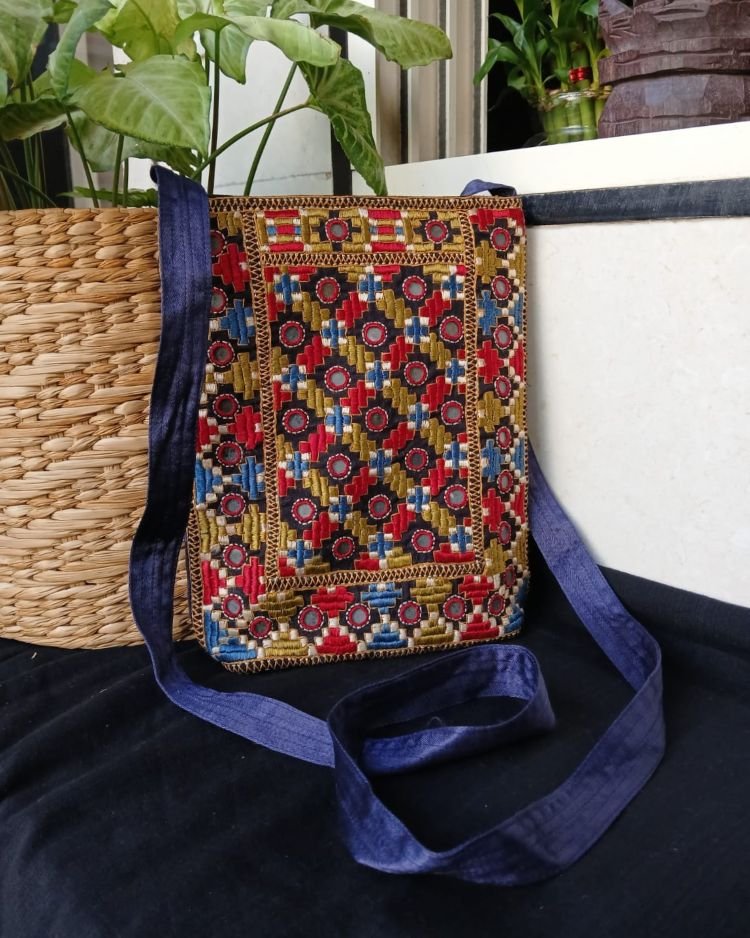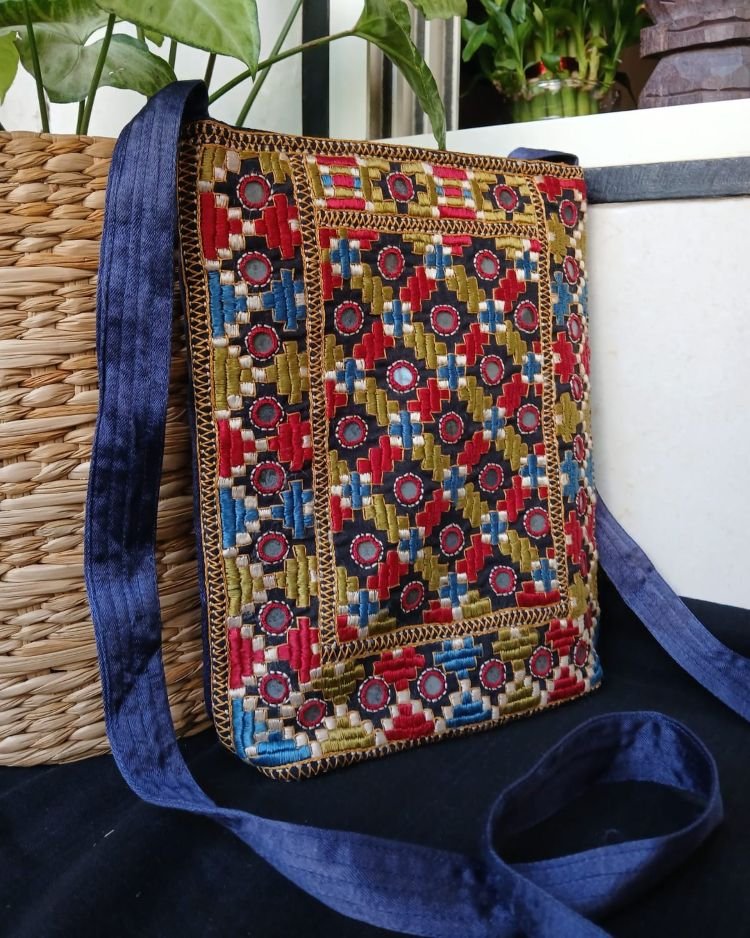 Katri Mashru Sling Bag Sling Bag with Katri embroidery and zip closure on top.