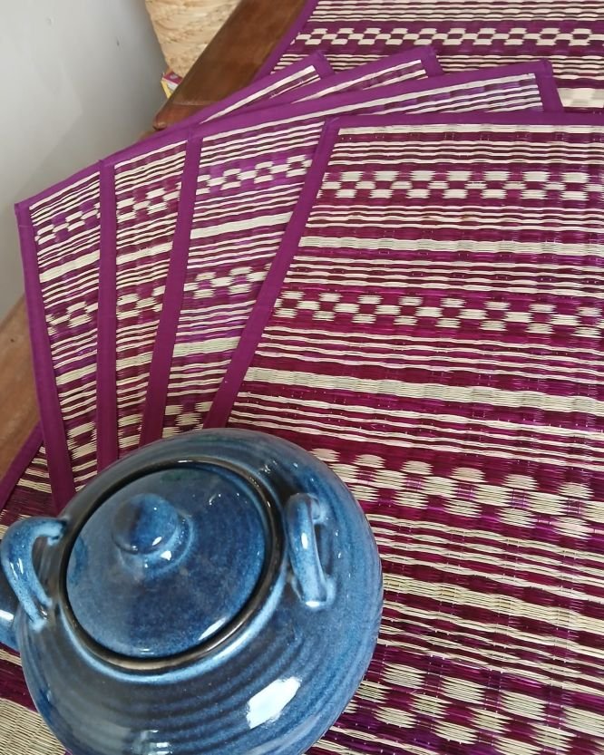 Awarded the UNESCO Seal of Excellence in 2006, Killimangalam Pulpaaya Mats represent a long tradition of floor mat weaving. These floor mats have now been redesigned for modern dining rooms in the form of table runners and table mats. They are stylish and earthy, made of sedge grass that has gone through a long process of soaking, drying and processing. They are handwoven by a women’s unit in Kerala, by the Bharathapuzha river.